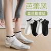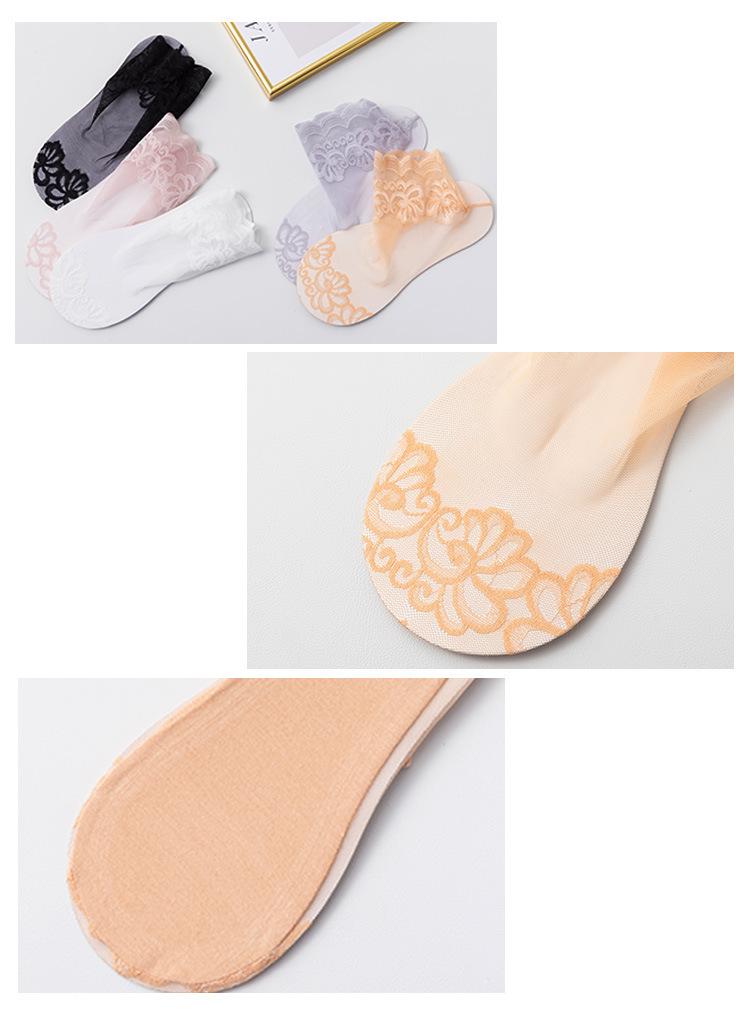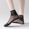 Calcetines Cortos de Encaje Nuevos para Mujer Fondo de Algodón Color Sólido Calcetines Cortos de Encaje Malla Delgada Negros de Media Caña Primavera y Verano