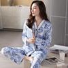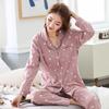 Pijama de Algodón Nuevo para Mujer Primavera Otoño e Invierno Manga Larga Cárdigan Solapa Talla Grande Algodón Traje de Mediana Edad