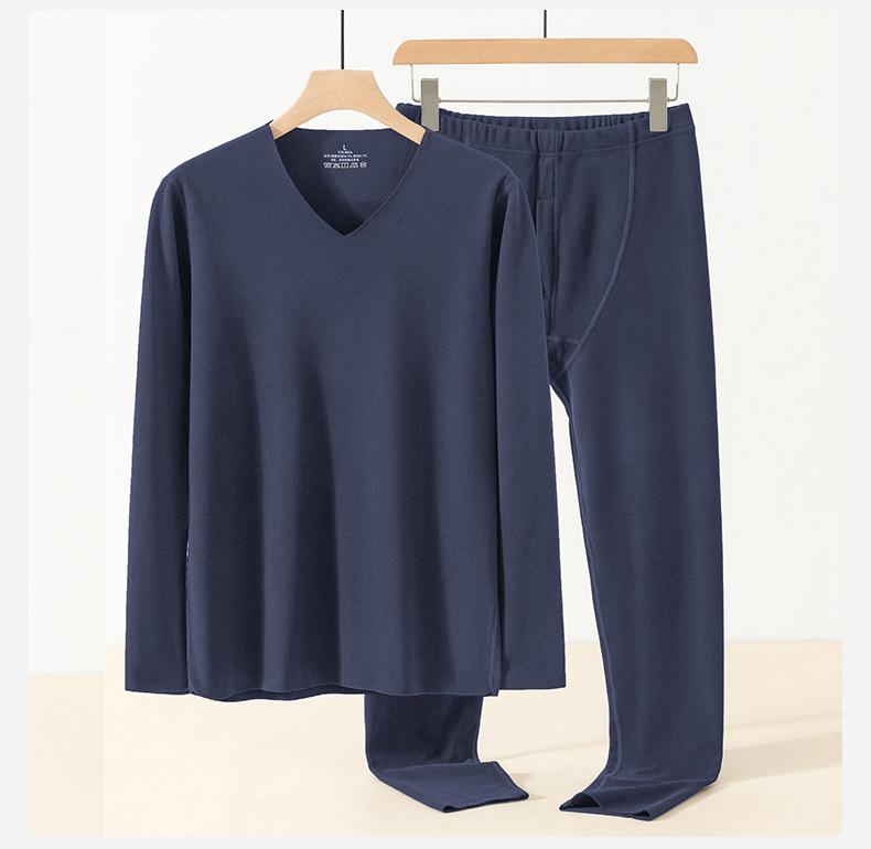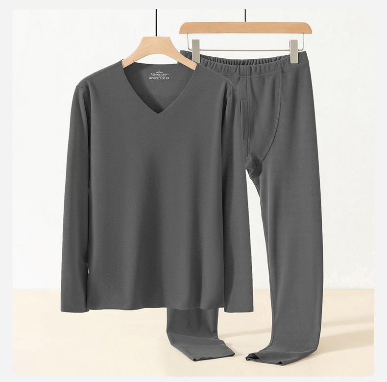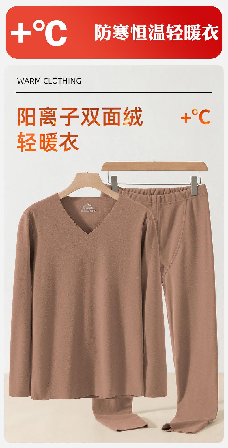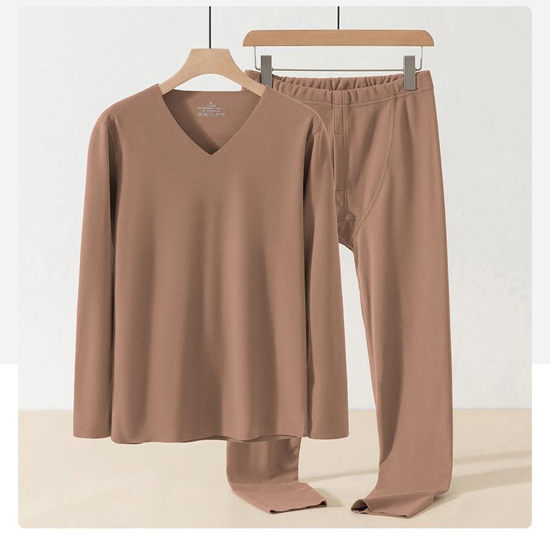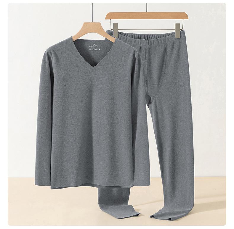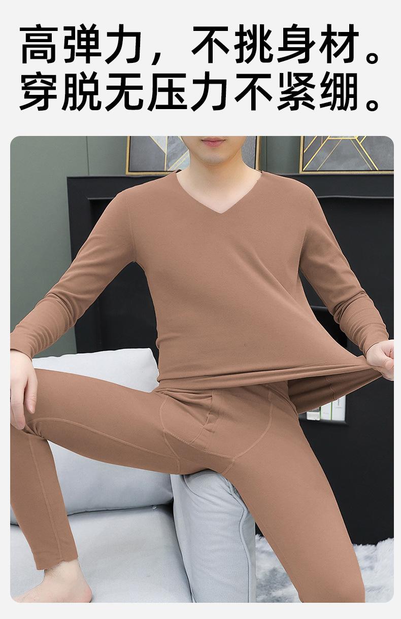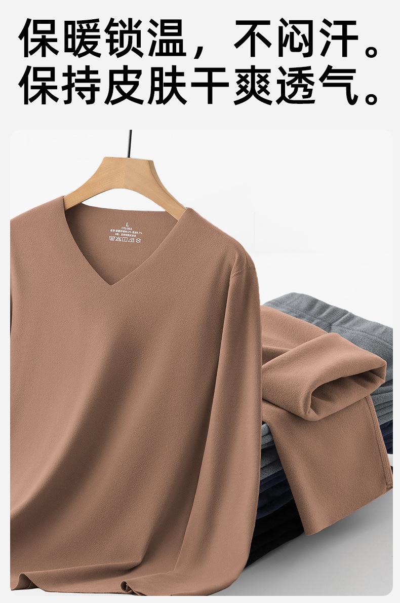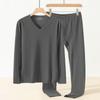 Traje térmico de terciopelo alemán para hombre, invierno, terciopelo de doble cara sin costuras, cuello en V, camiseta de manga larga, ropa de otoño caliente a prueba de frío, pantalones largos