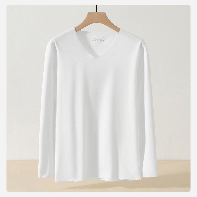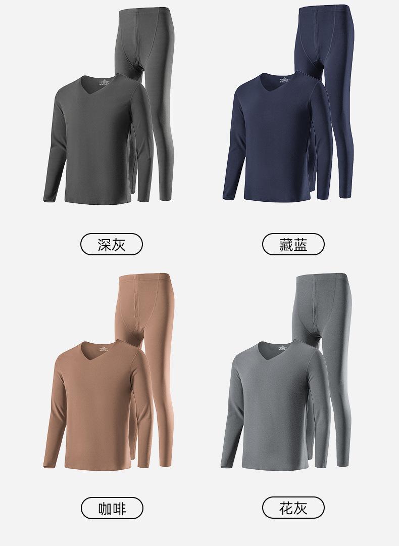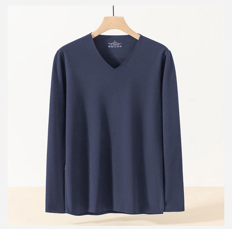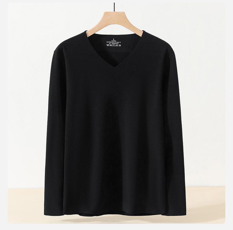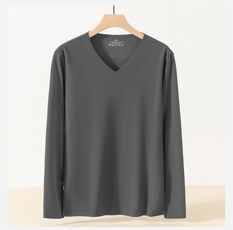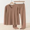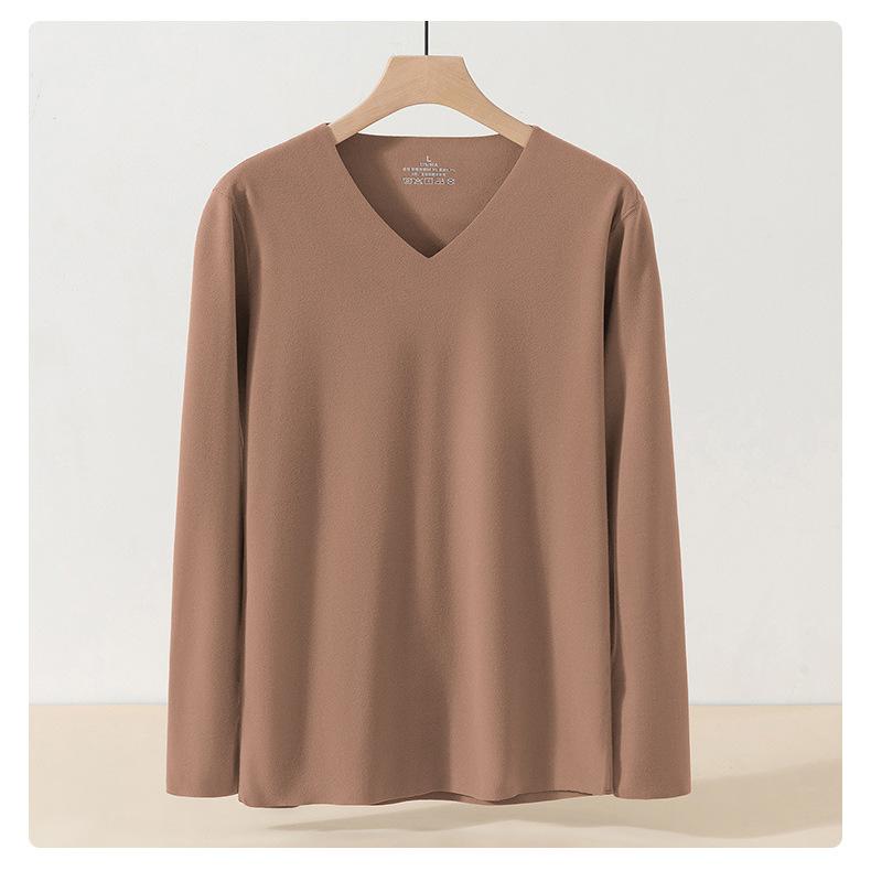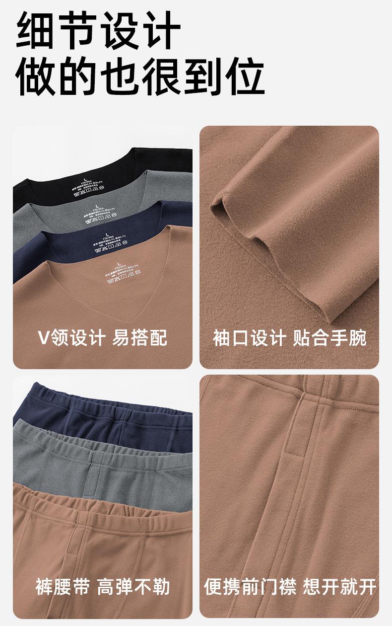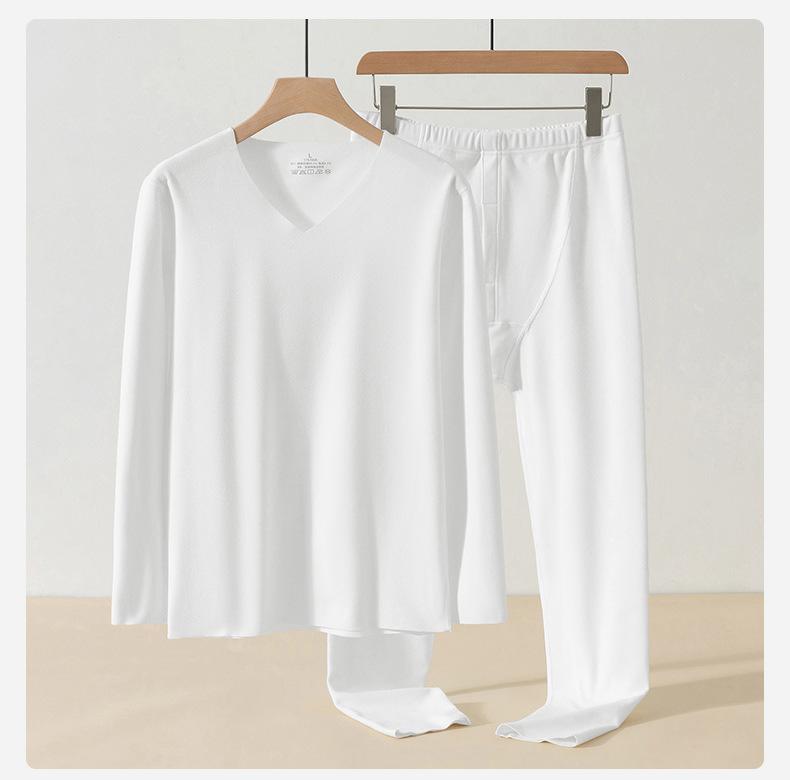 Traje térmico de terciopelo alemán para hombre, invierno, terciopelo de doble cara sin costuras, cuello en V, camiseta de manga larga, ropa de otoño caliente a prueba de frío, pantalones largos