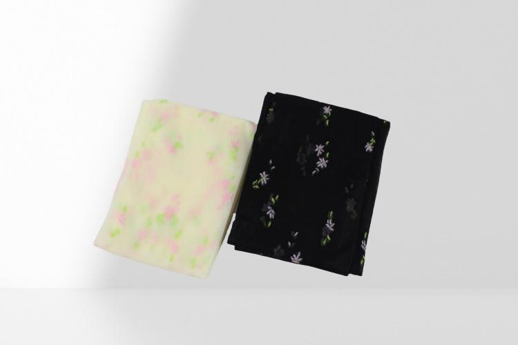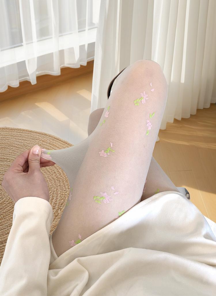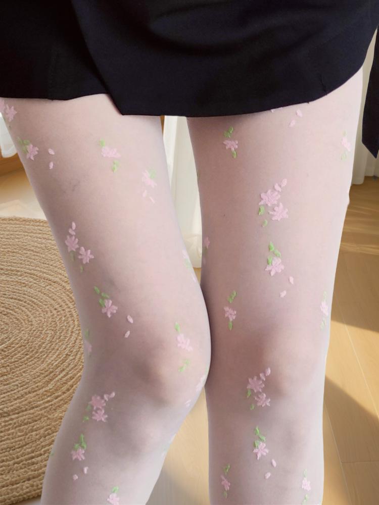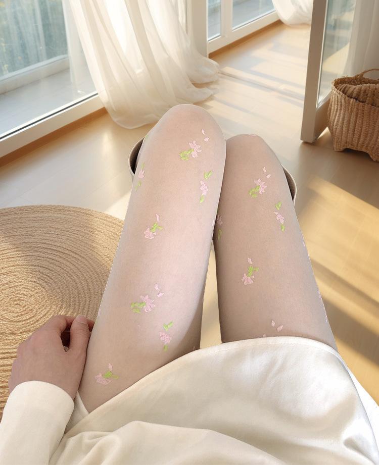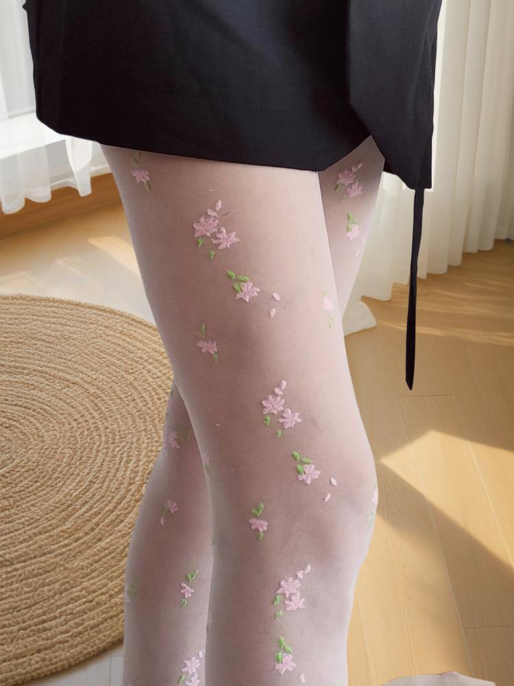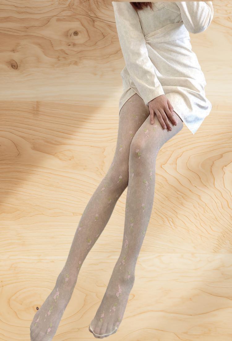 [15d core-spun silk jacquard pantyhose] [coral style small florals] [single side with crotch] [ 40-75kg ] [cardboard bag]