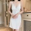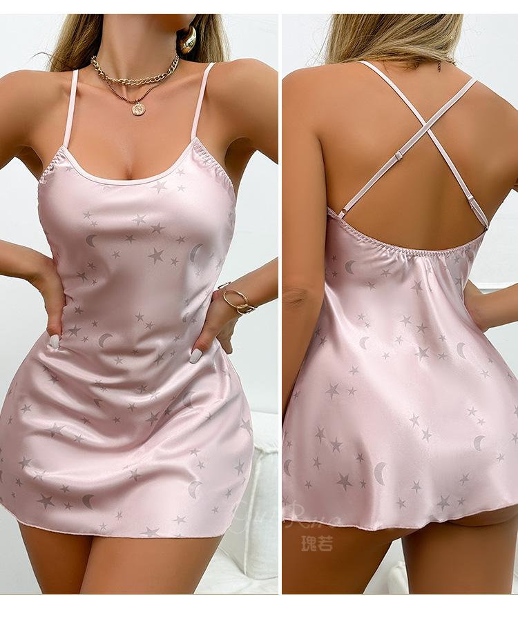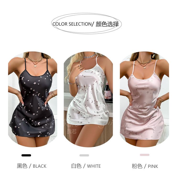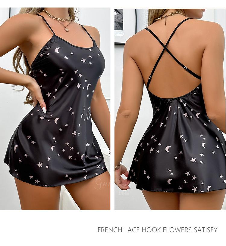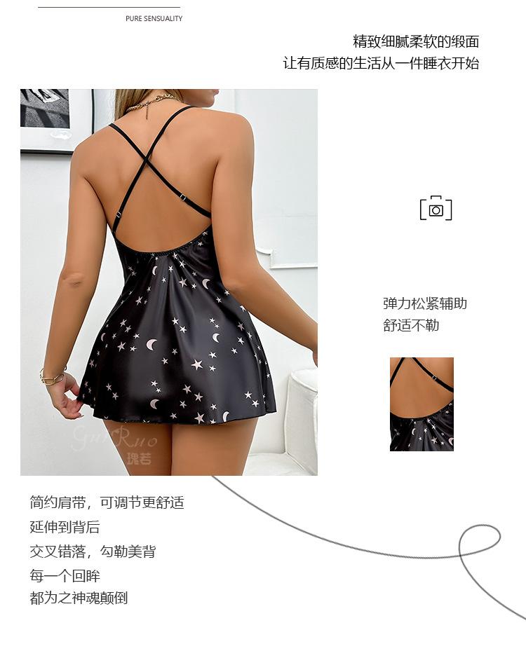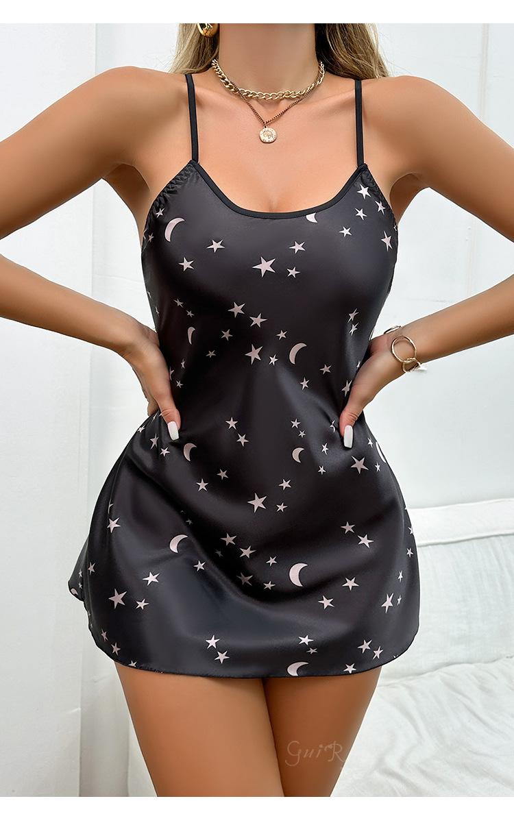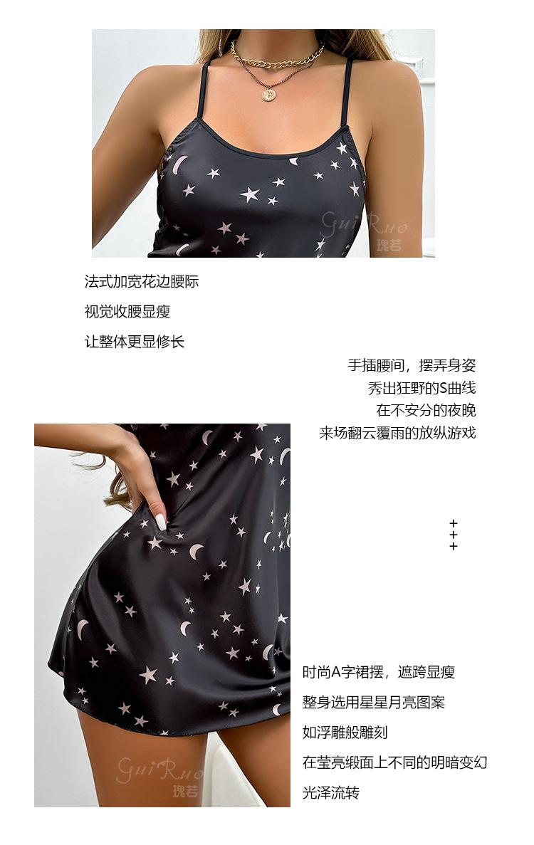 Guiruo Intimates Camisón Simple Estampado de Seda de Hielo con Tirantes Caliente Súper una Falda Traje de Casa para Mujer Exportación F4703