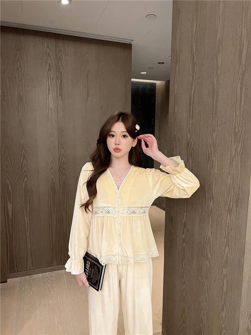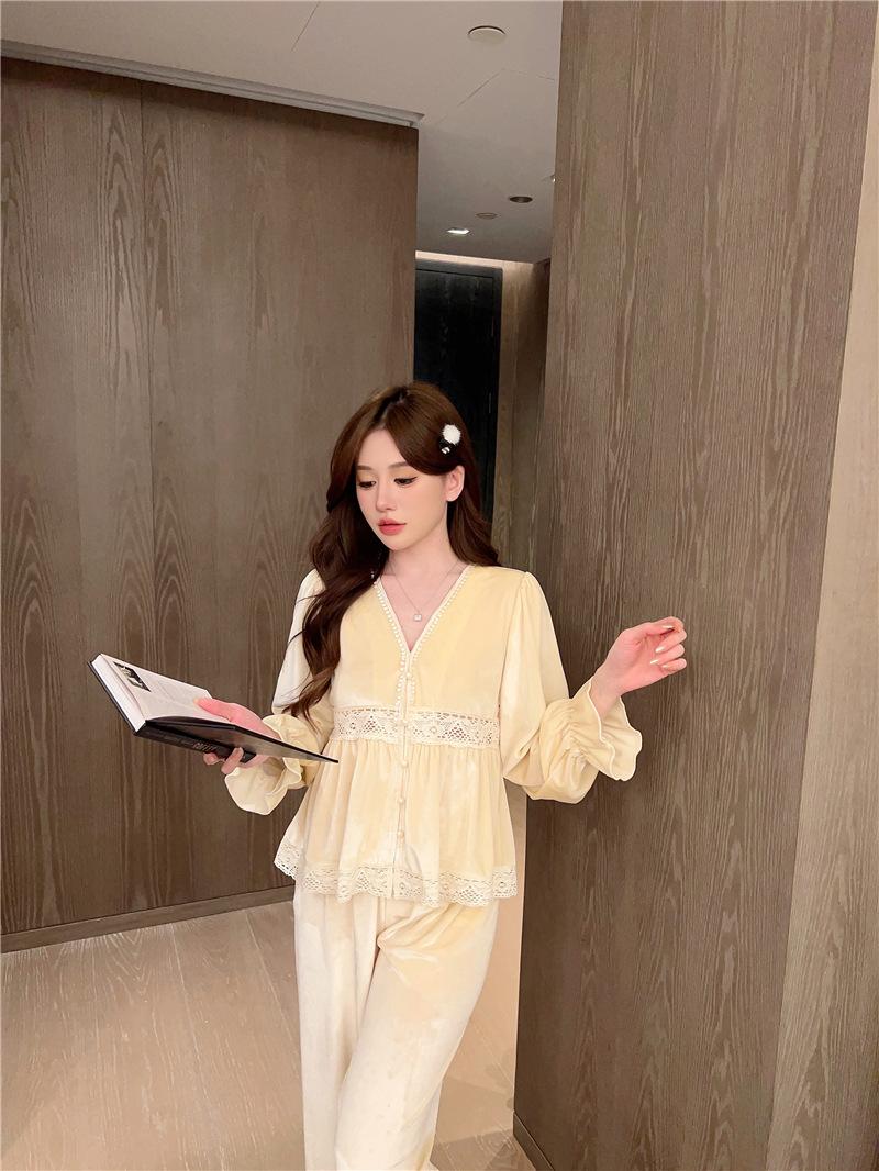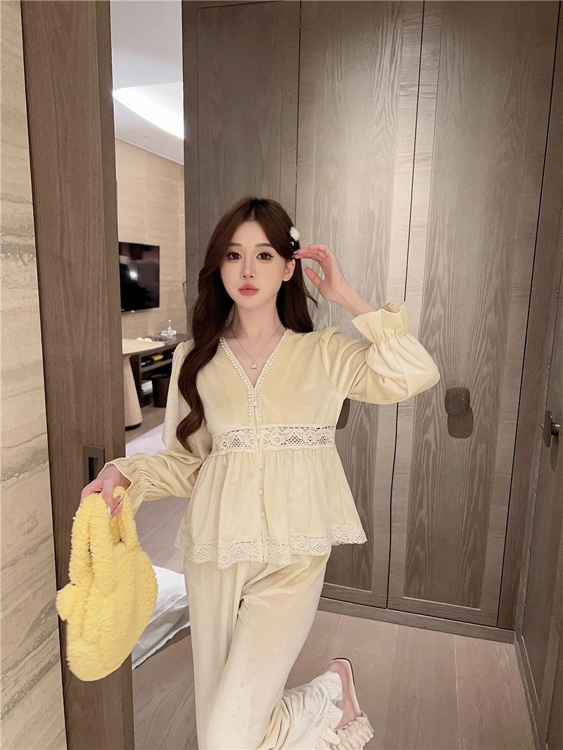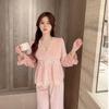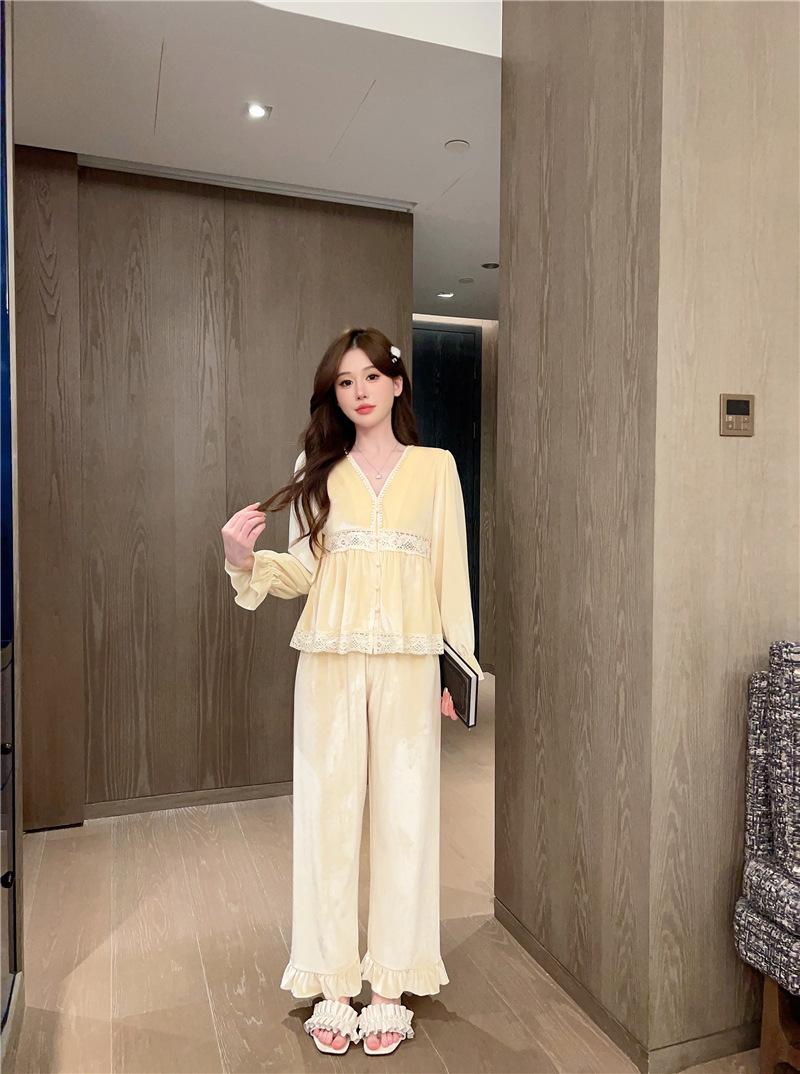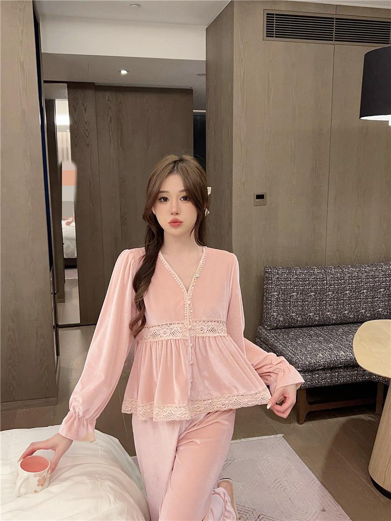 Pijama de Mujer Otoño e Invierno Nuevo Terciopelo Coreano Cálido Dulce Lindo Manga Larga Pantalones Traje Dulce Ropa para el Hogar