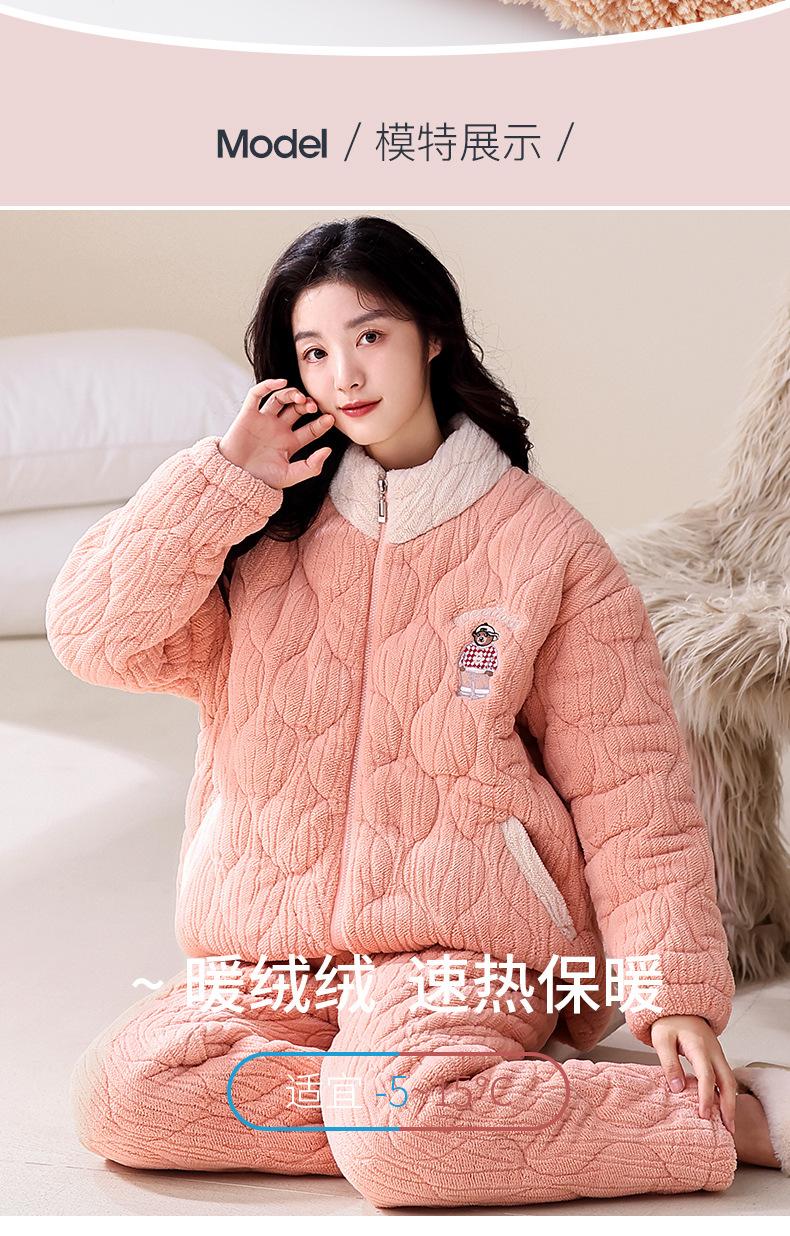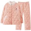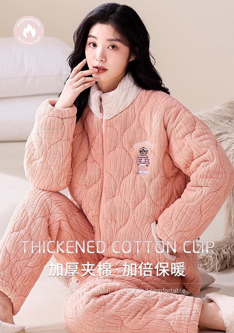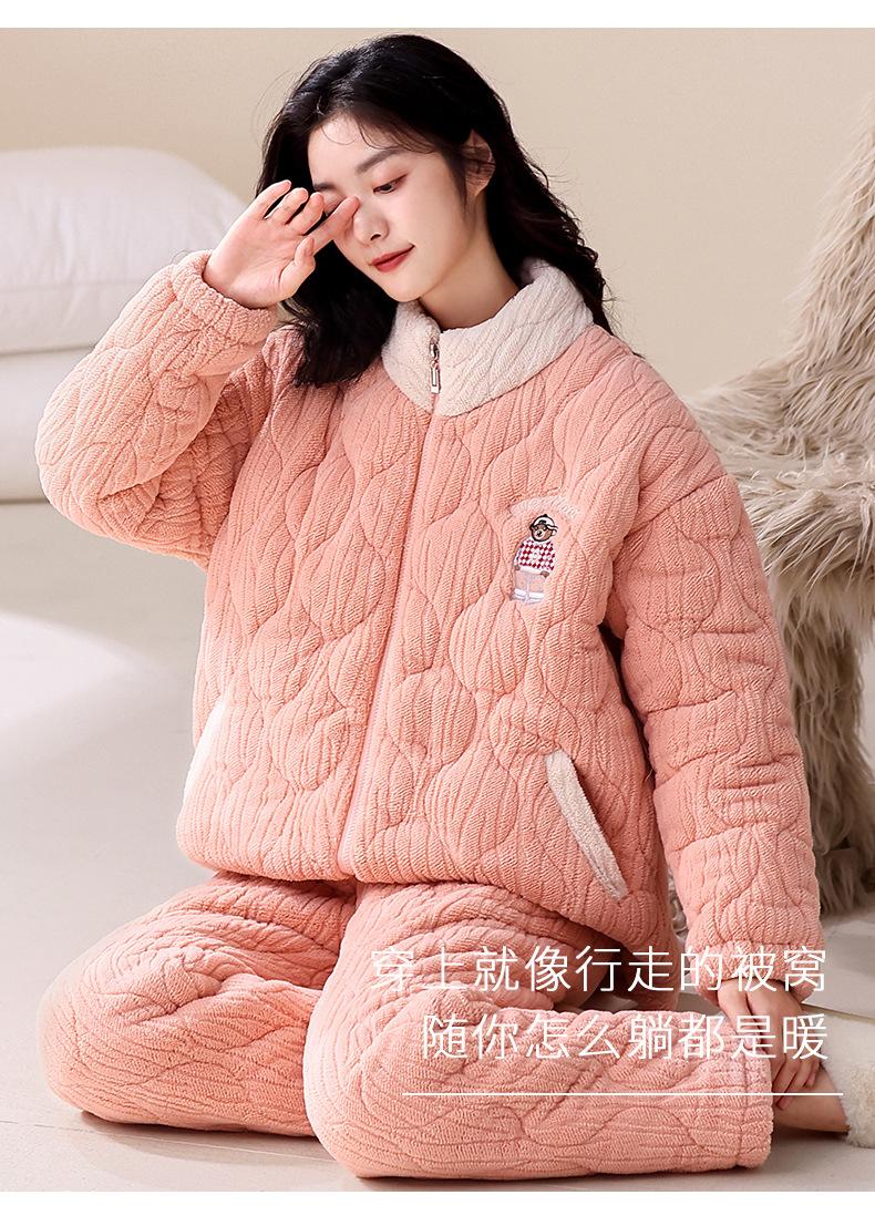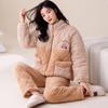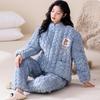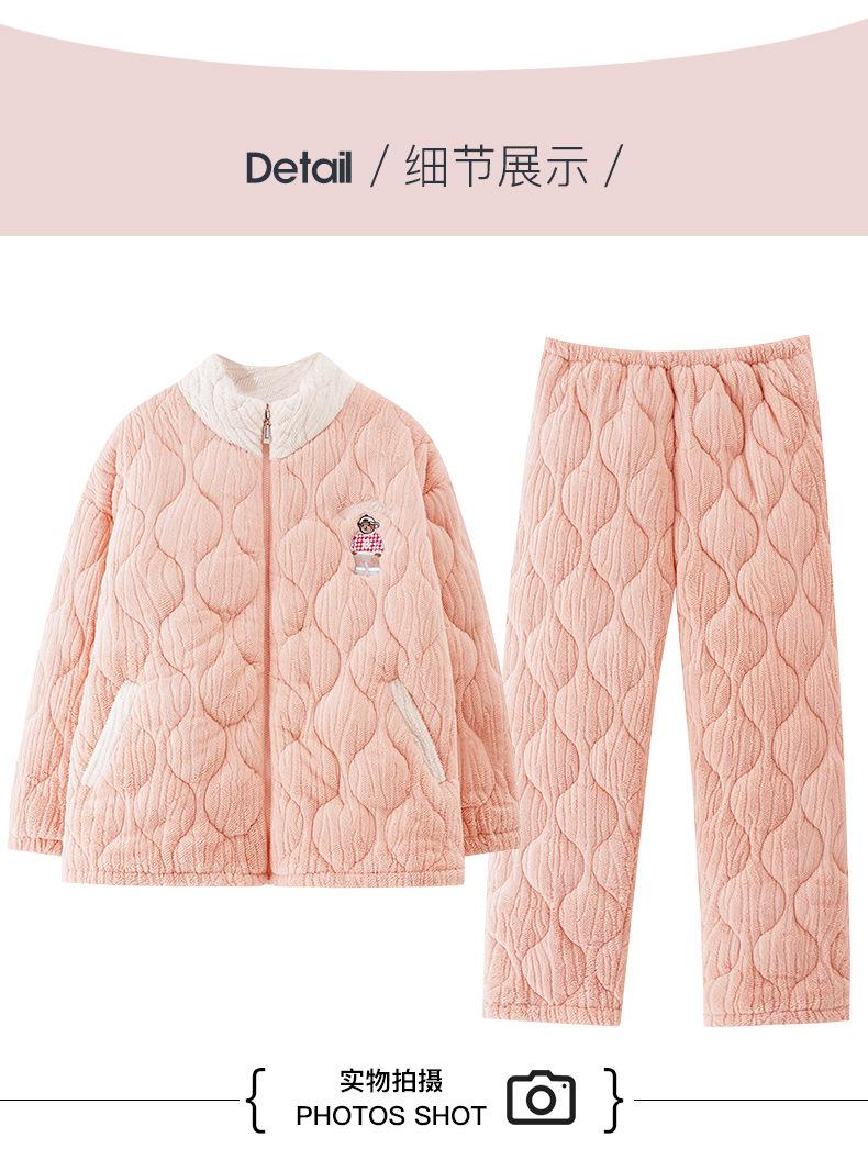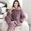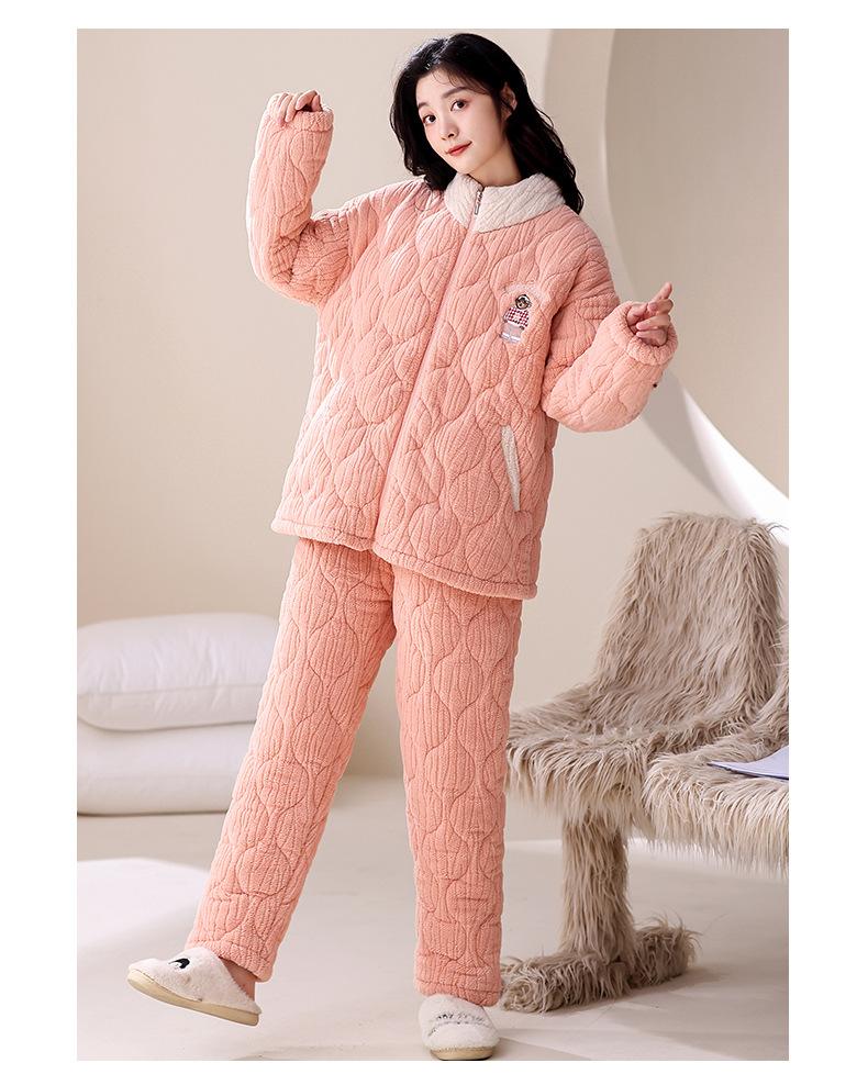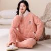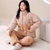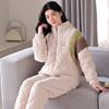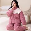 Pijamas de nuevo estilo para mujer, de terciopelo jacquard, acolchados, de tres capas, de invierno, gruesos, con forro polar, ropa cálida para el hogar para mujer, se pueden usar con traje.