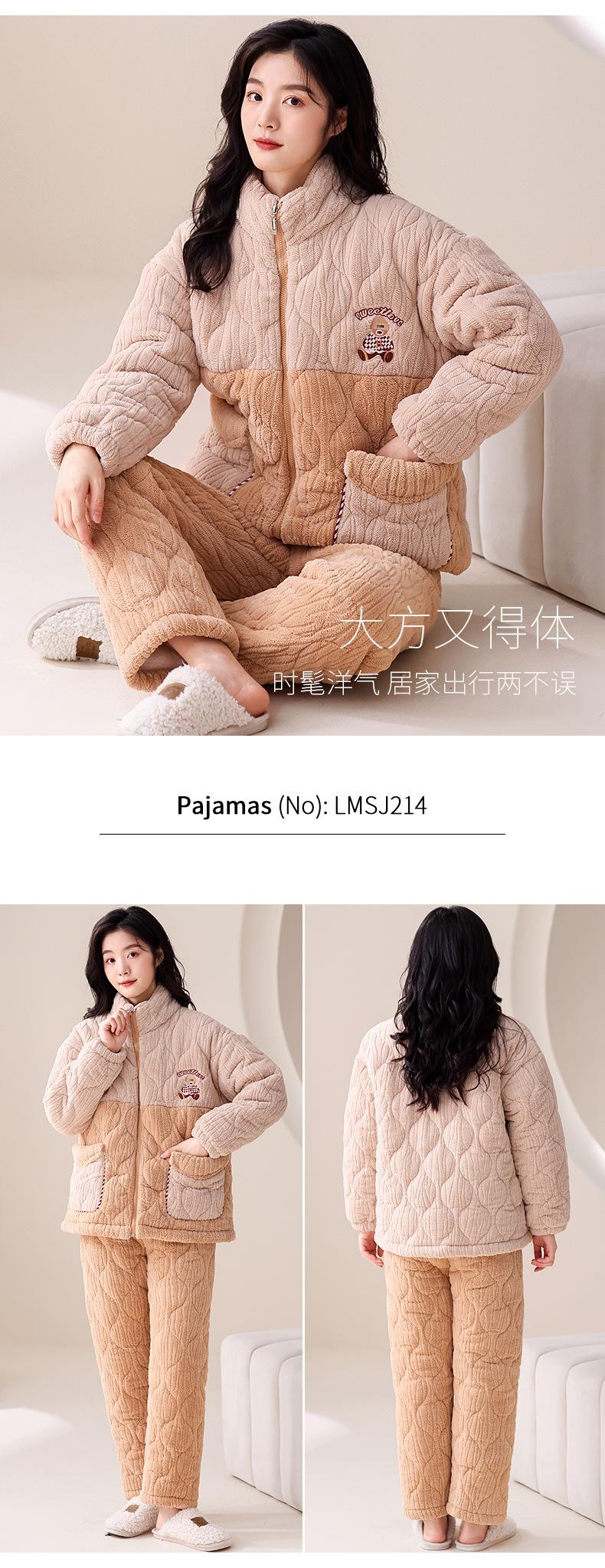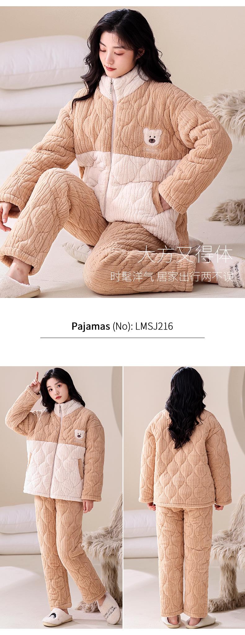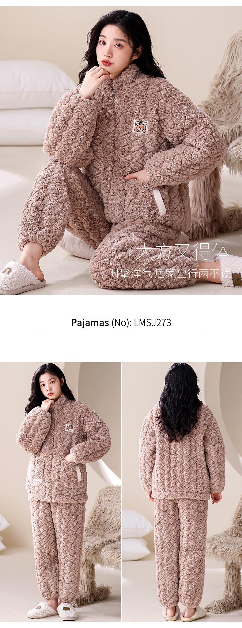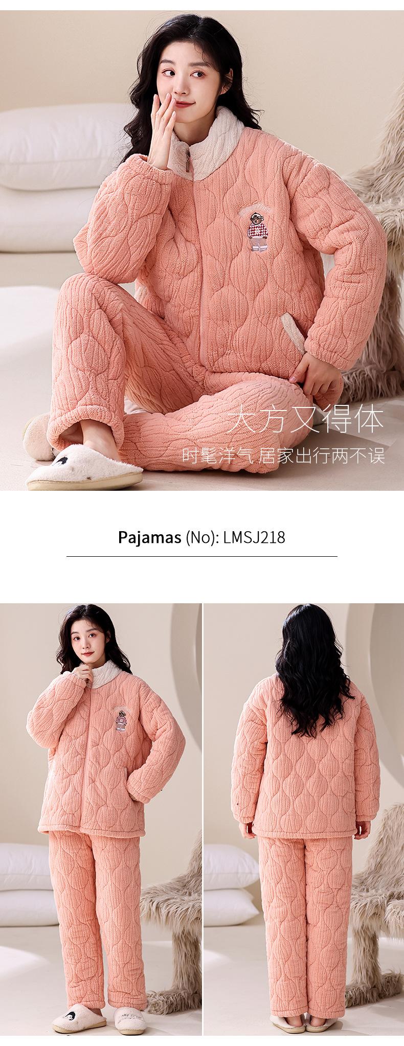 Pijamas de nuevo estilo para mujer, de terciopelo jacquard, acolchados, de tres capas, de invierno, gruesos, con forro polar, ropa cálida para el hogar para mujer, se pueden usar con traje.