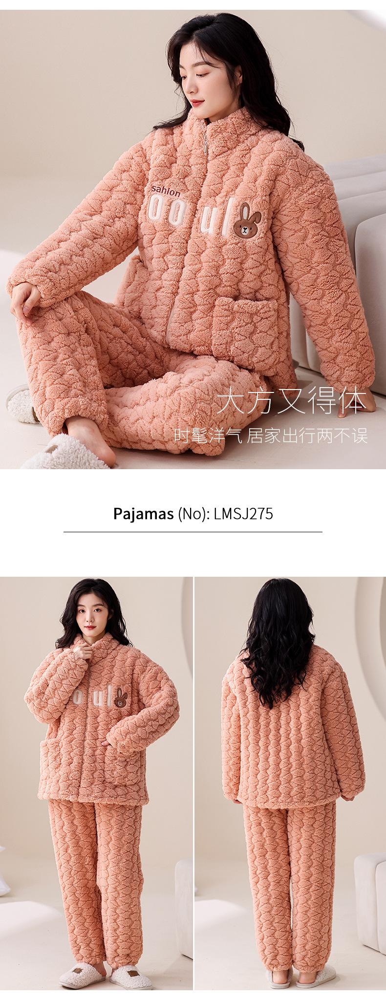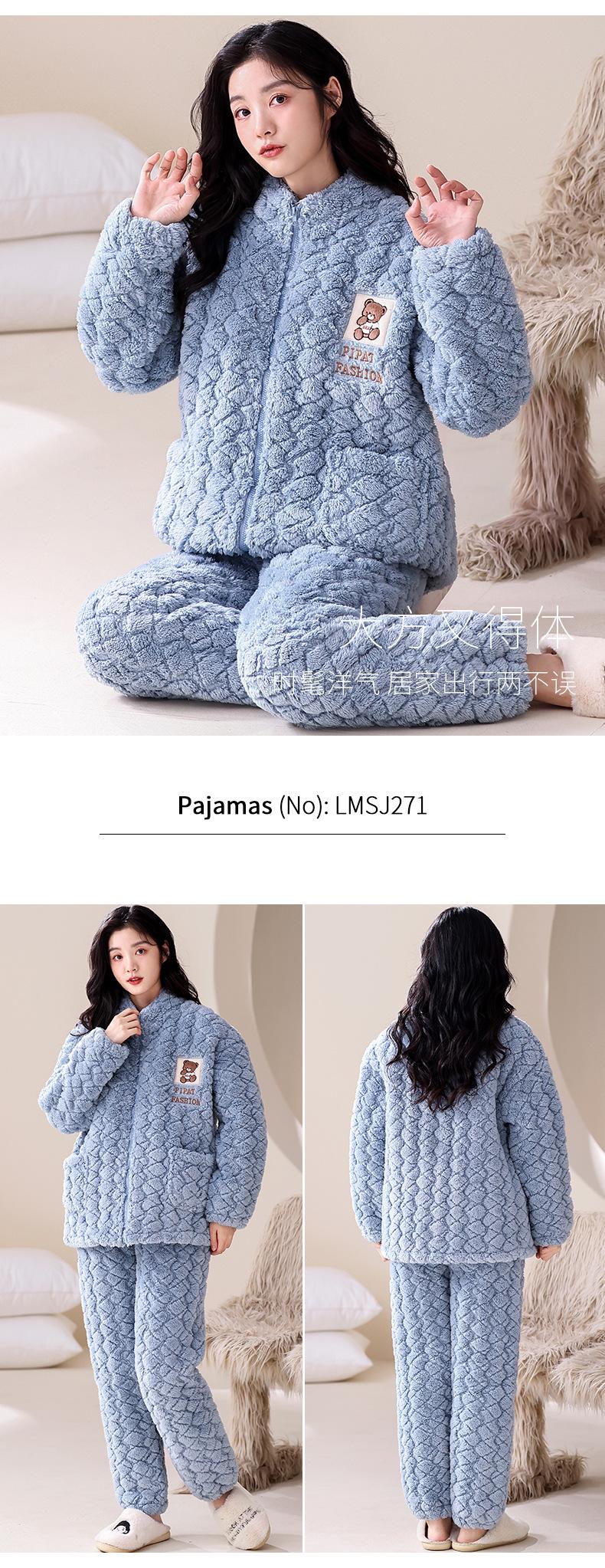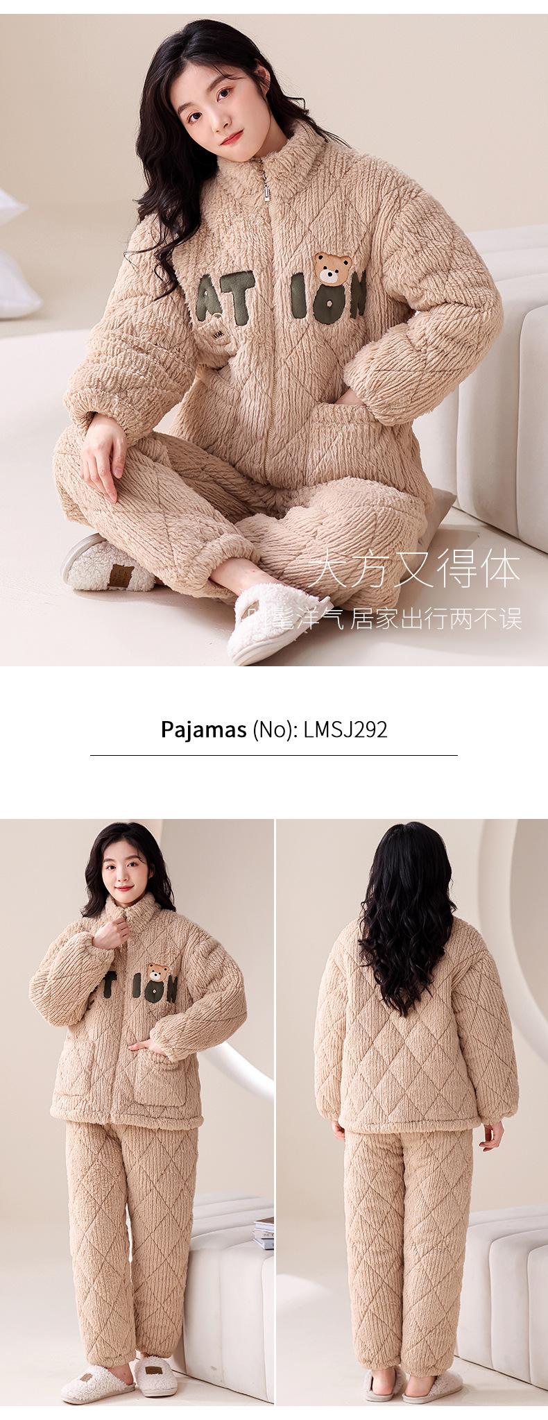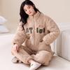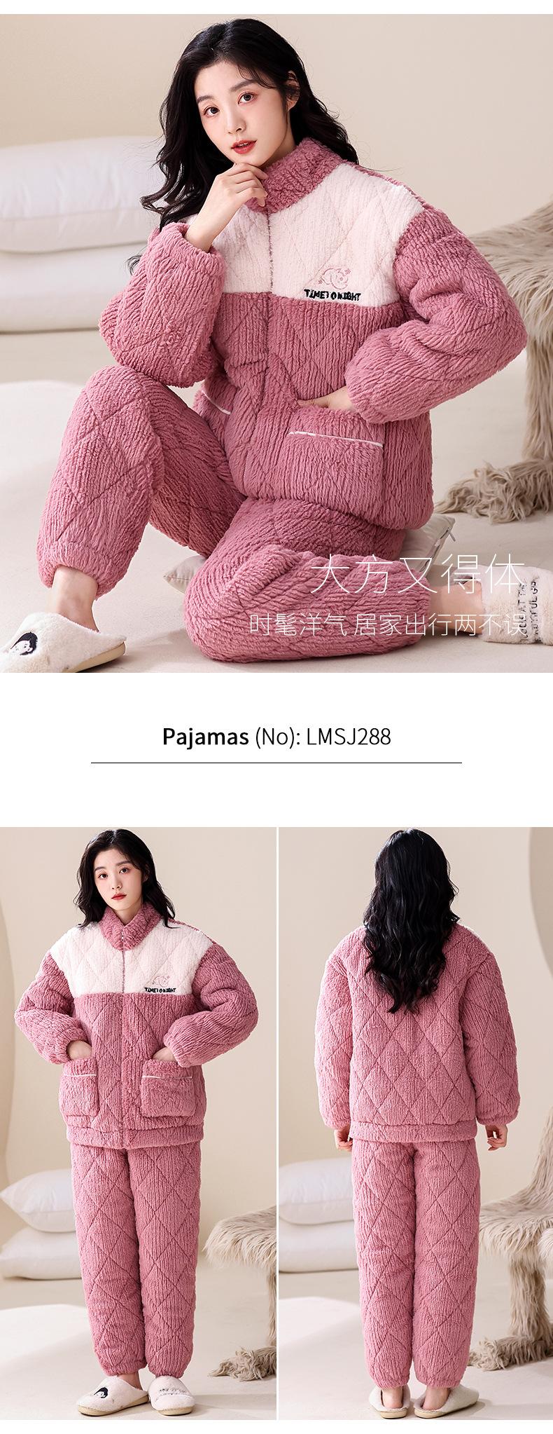 Pijamas de nuevo estilo para mujer, de terciopelo jacquard, acolchados, de tres capas, de invierno, gruesos, con forro polar, ropa cálida para el hogar para mujer, se pueden usar con traje.
