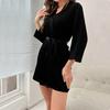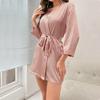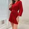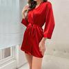Pijama Bata Sexy Casual Ligera y Transpirable para Mujer de Color Sólido Satén Cruzado Europeo y Americano