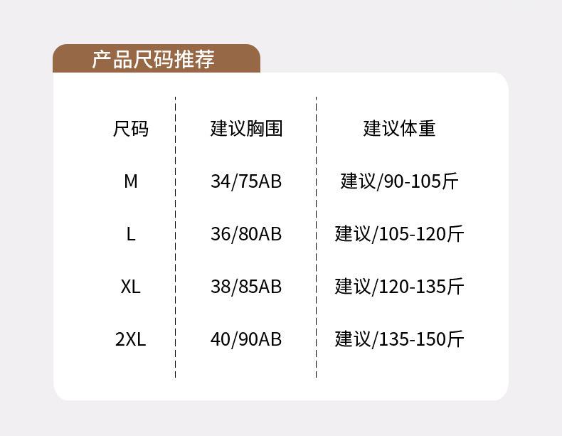 M【34/75AB】, L【36/80AB】, XL【38/85AB】, 2XL【40/90AB】
