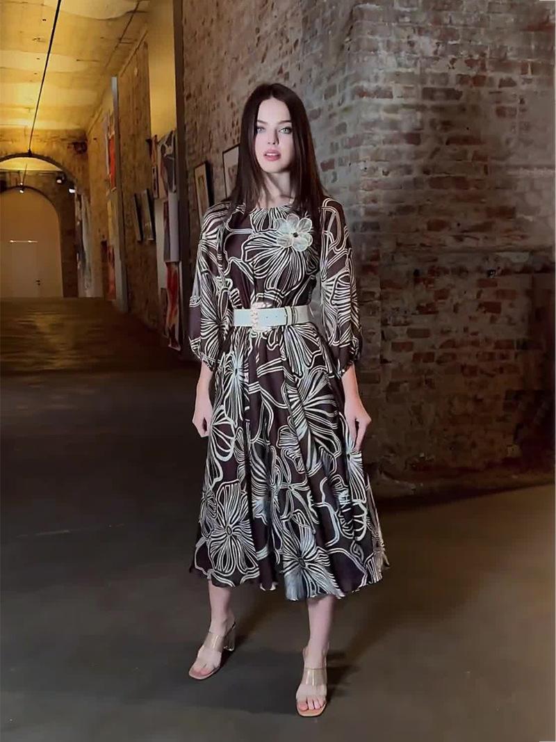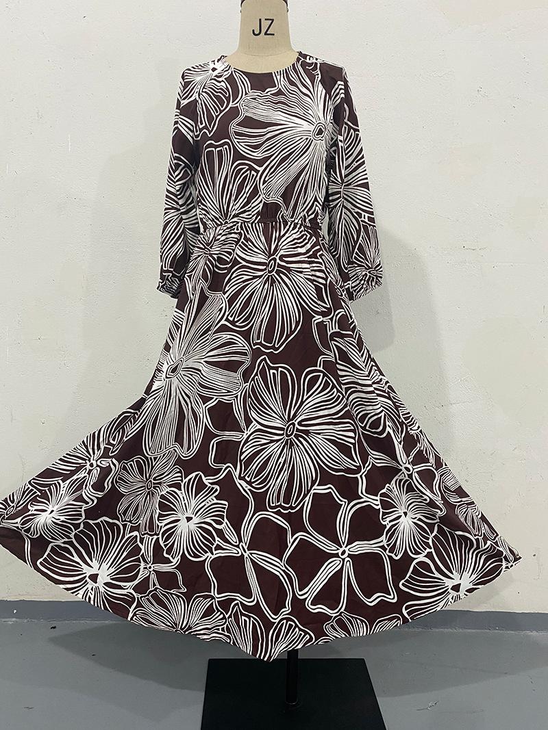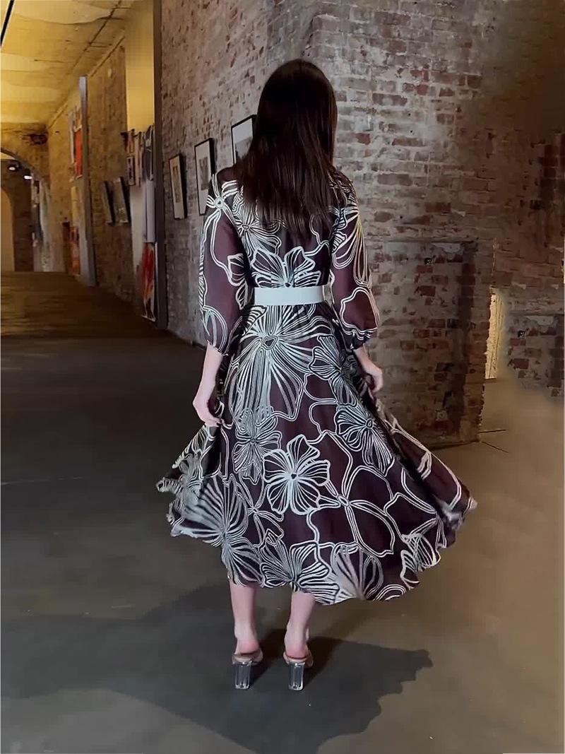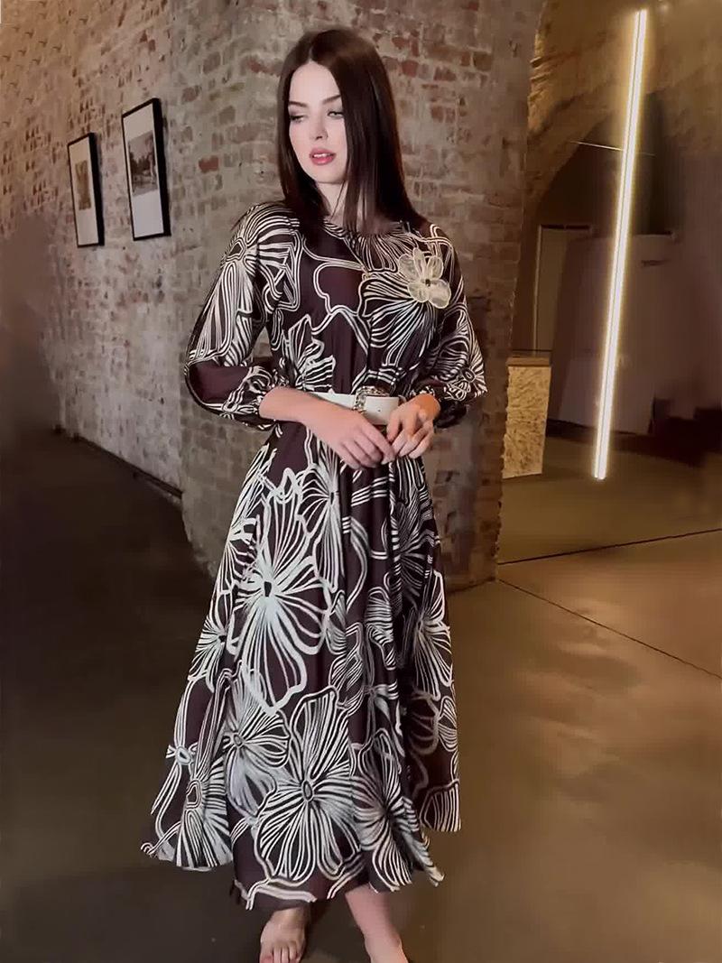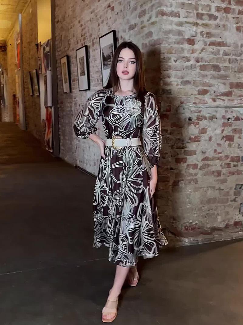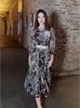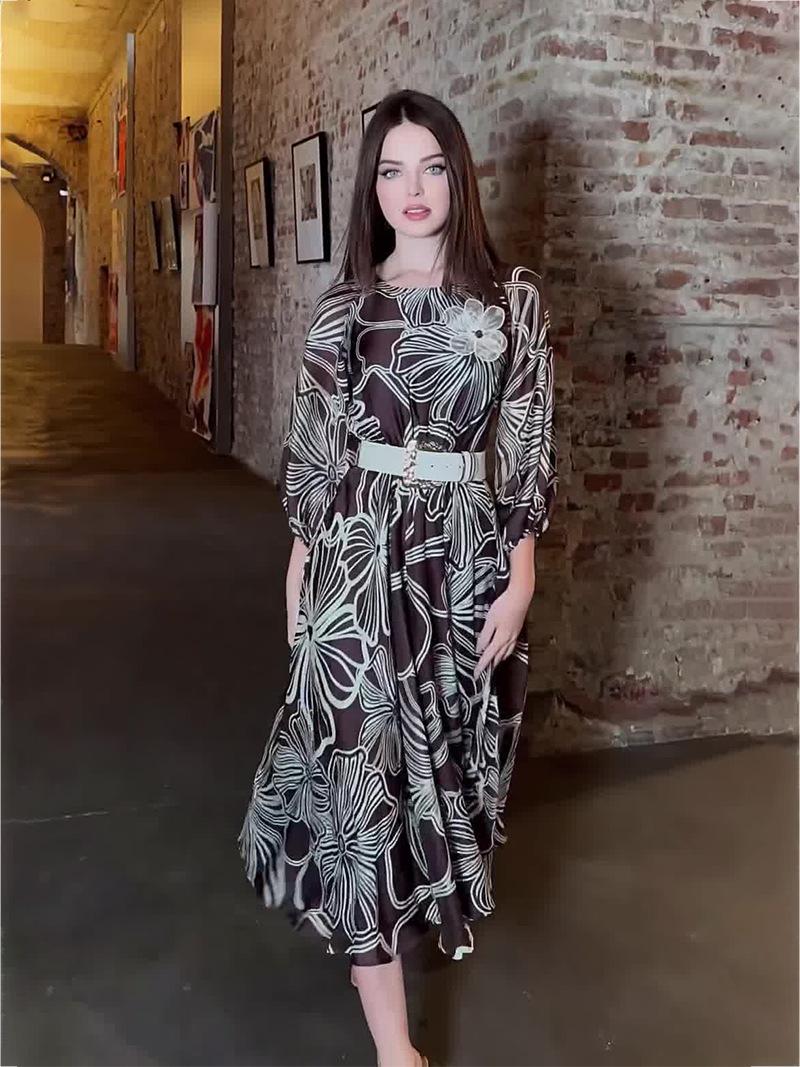 Amazon 2024 Verano Europeo y Americano Nueva Moda Manga Tres Cuartos Estampado Vestidos Múltiples