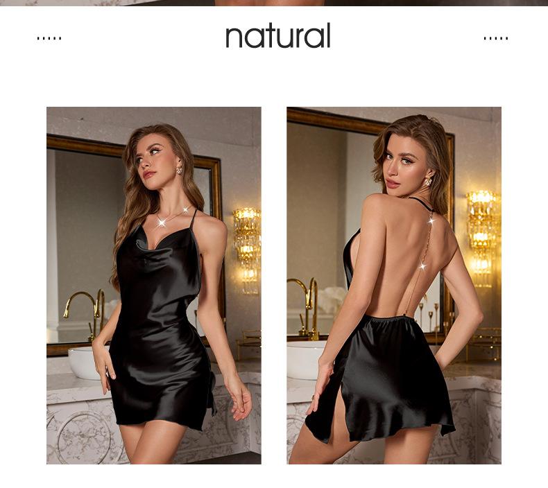 Yaoting Pijama Sexy Europeo y Americano Escote en V Profundo Espalda Descubierta Halter Color Puro Camisón Serie Noche de Lujo Sq3411