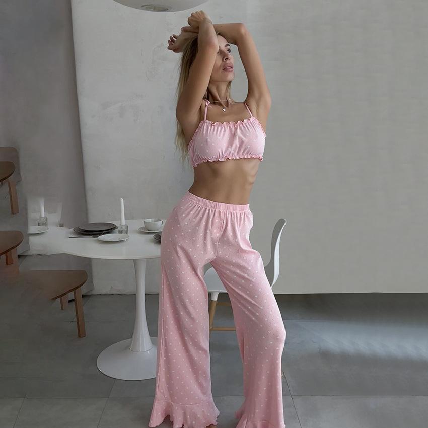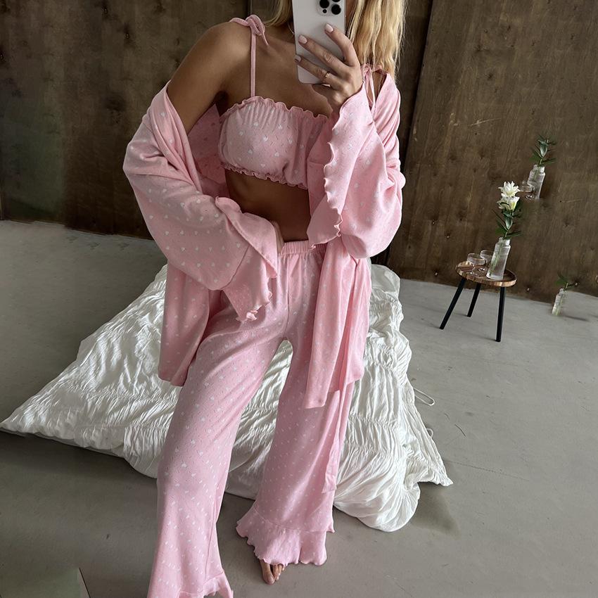 Pijama corto con tirantes y estampado de amor para mujer, ropa de hogar, color rosa, 2025, Europa y Estados Unidos