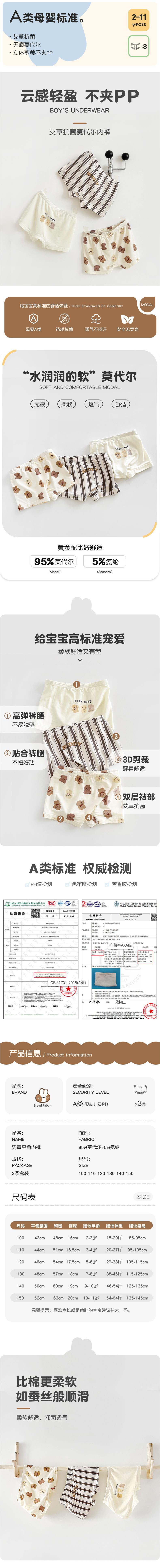 Ropa interior infantil de modal en caja, de clase A 3, con diseño de conejo de pan, nuevos calzoncillos tipo bóxer con dibujos de cachorros para niños y niñas.