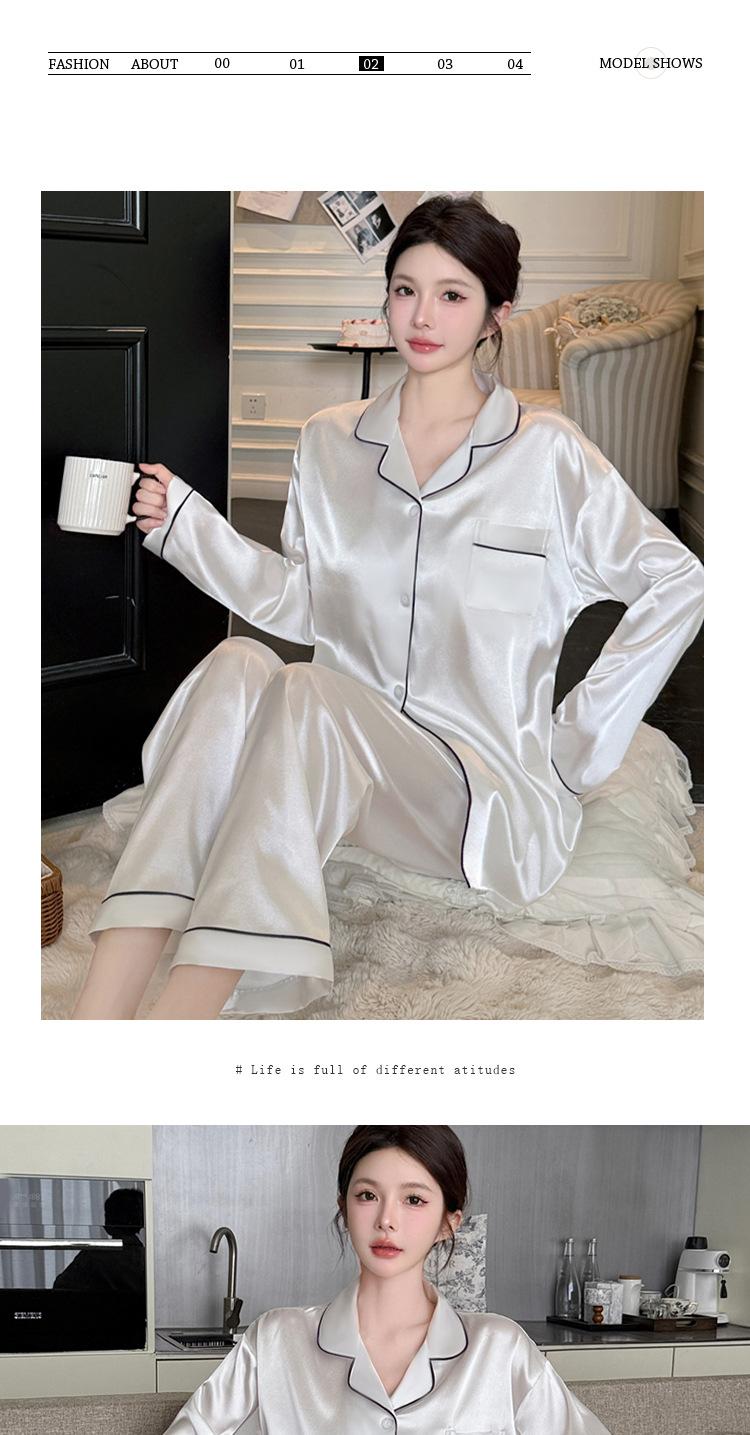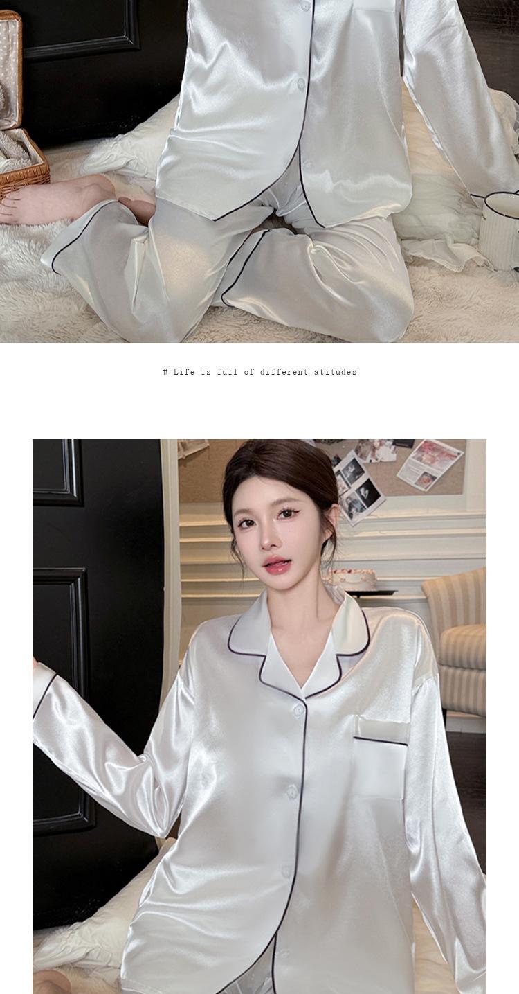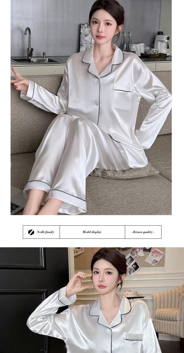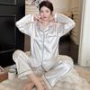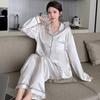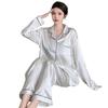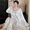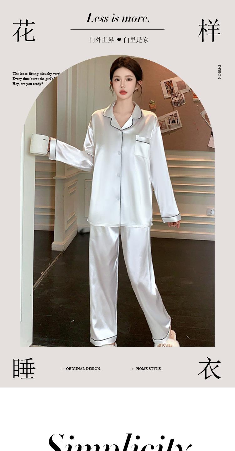 Pijama de seda de hielo de color sólido estilo nórdico para mujer, manga larga, de alta gama, nuevo de primavera y otoño, cómodo traje de ropa para el hogar, venta al por mayor