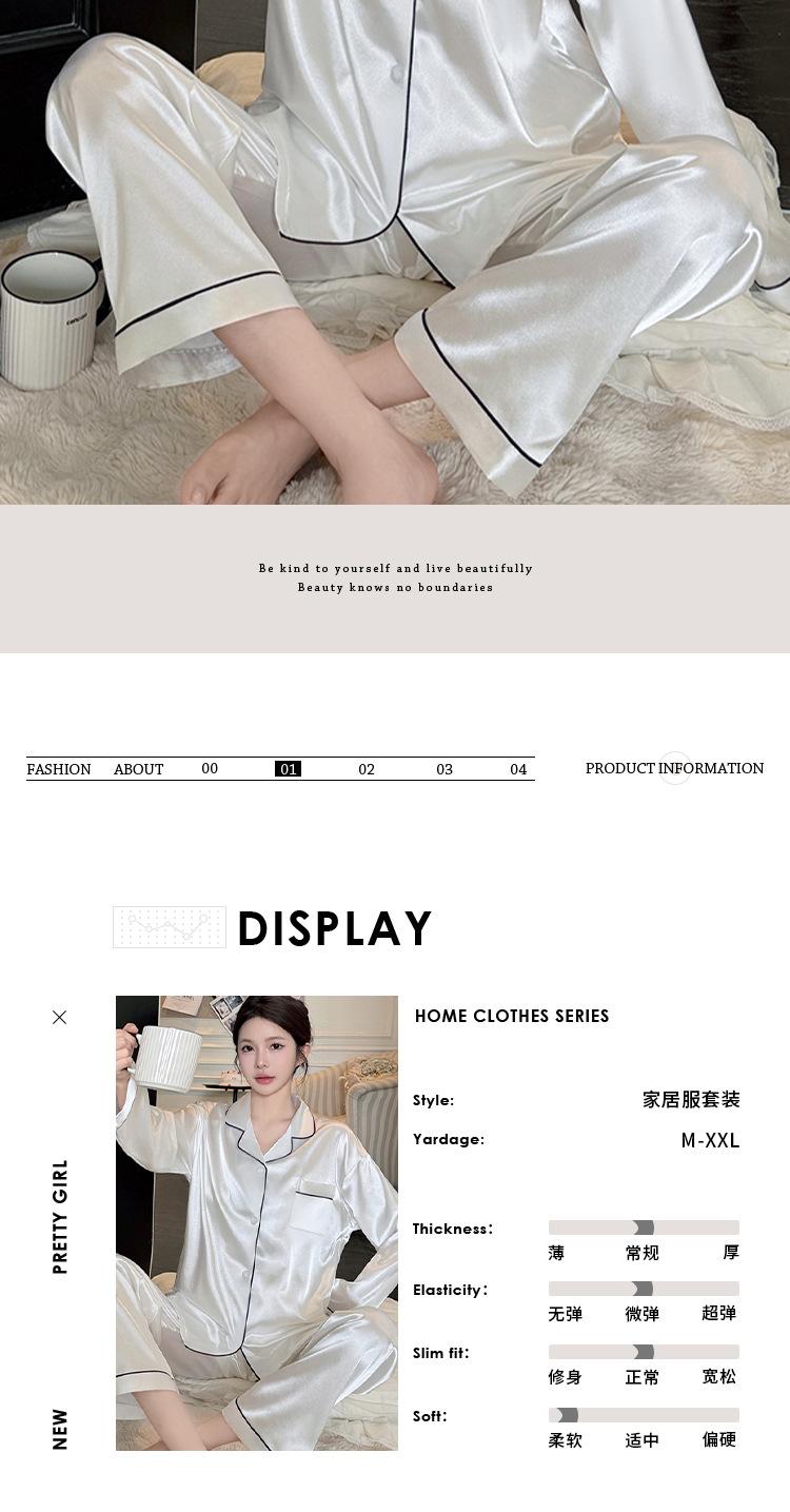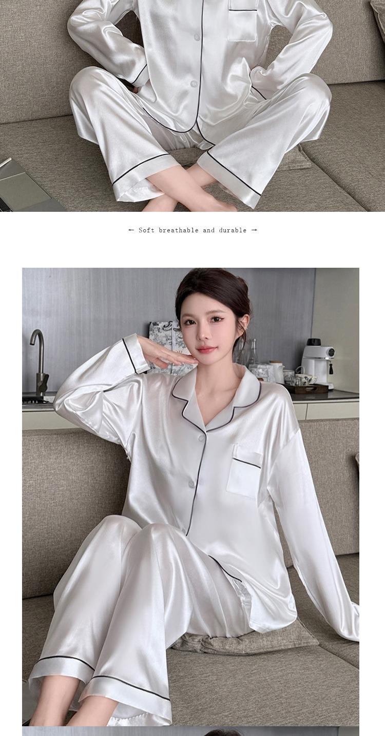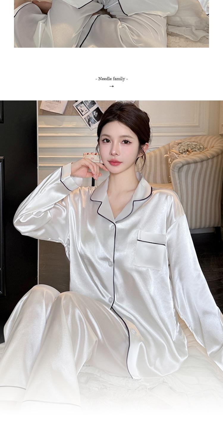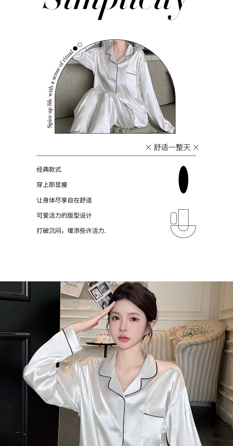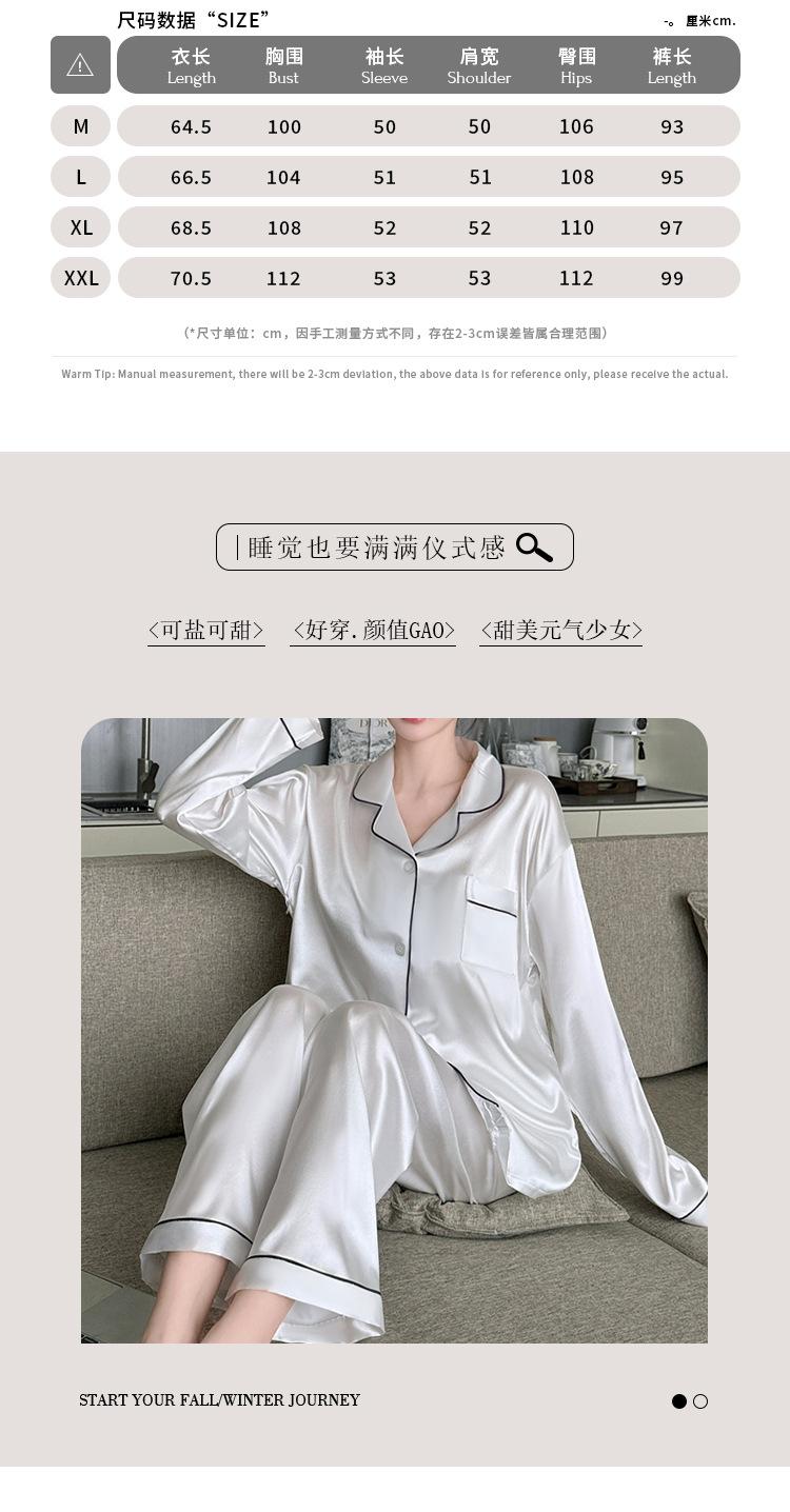 Pijama de seda de hielo de color sólido estilo nórdico para mujer, manga larga, de alta gama, nuevo de primavera y otoño, cómodo traje de ropa para el hogar, venta al por mayor