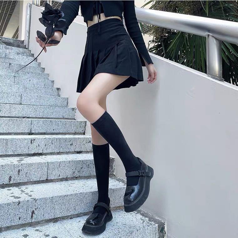 Calcetines blancos por encima de la rodilla, calcetines finos de terciopelo para primavera y verano, medias japonesas de seda blanca para mujer, medias negras JK hasta el muslo