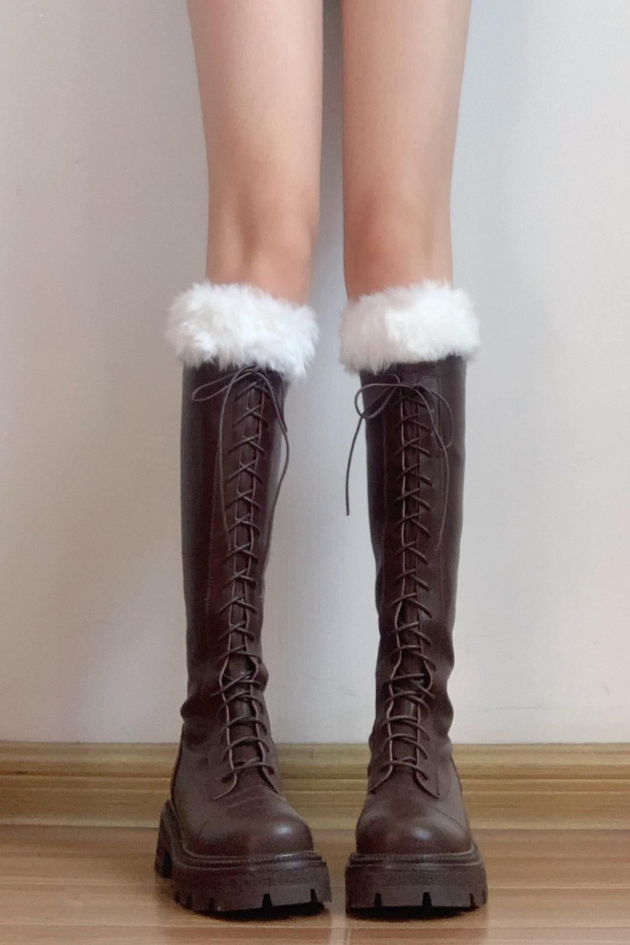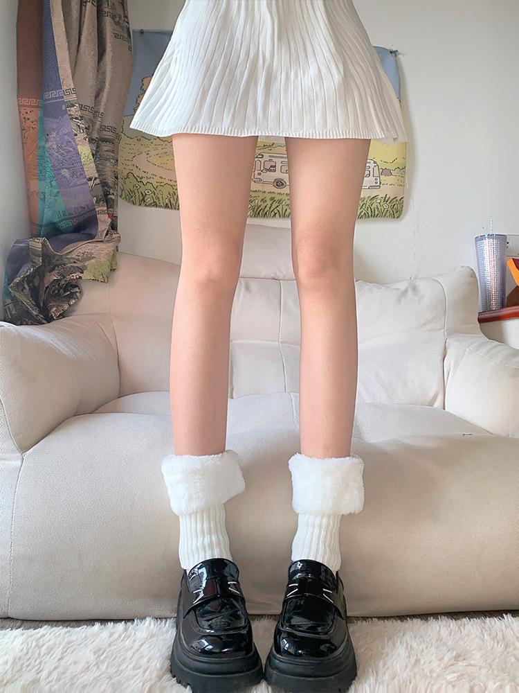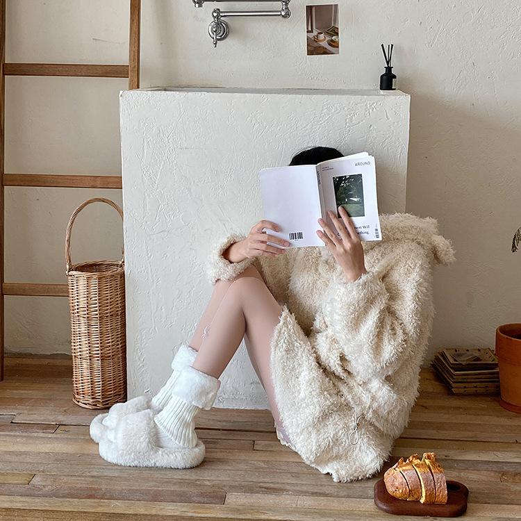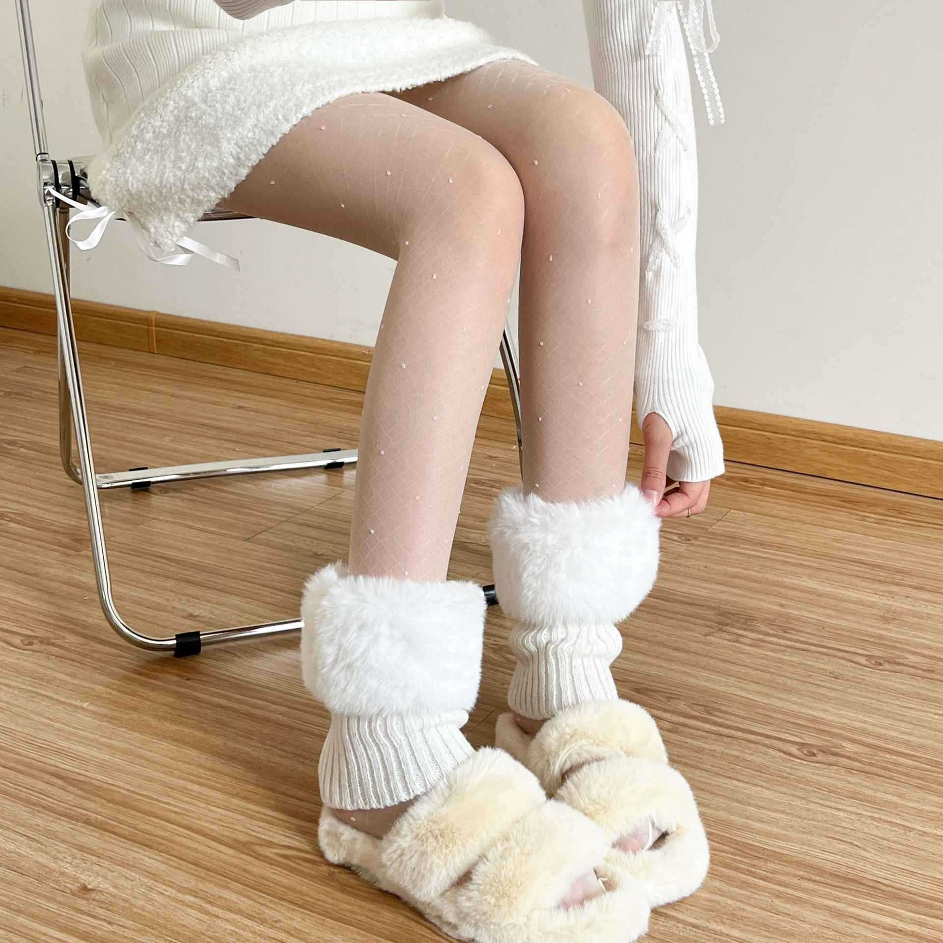 Otoño e invierno nuevos calcetines de punto de felpa jk chicas hot cubierta de bota peluda combinable cálida linda cubierta de pantorrilla