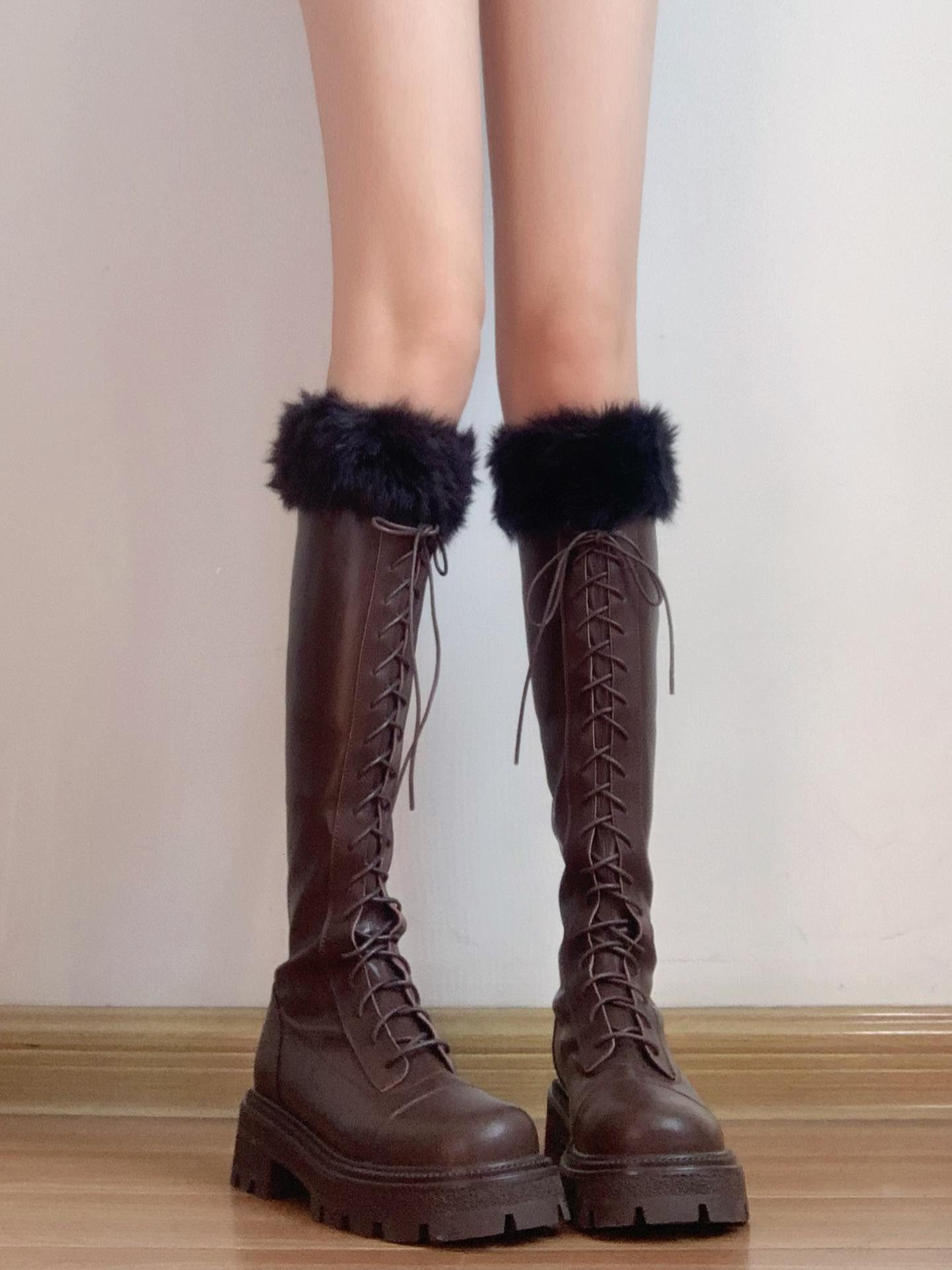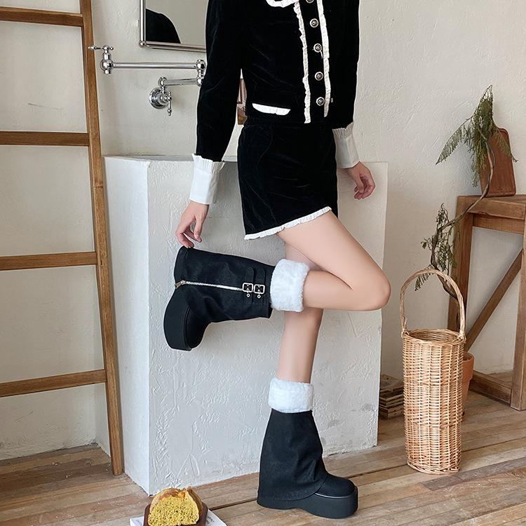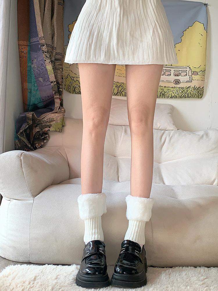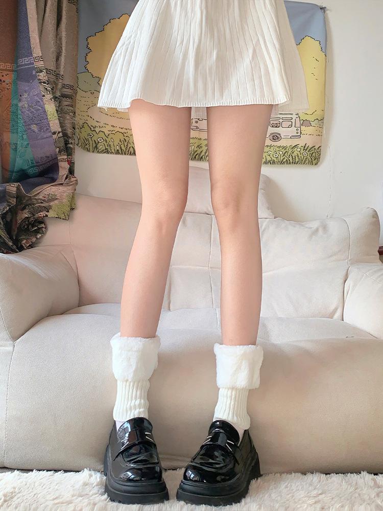 Otoño e invierno nuevos calcetines de punto de felpa jk chicas hot cubierta de bota peluda combinable cálida linda cubierta de pantorrilla