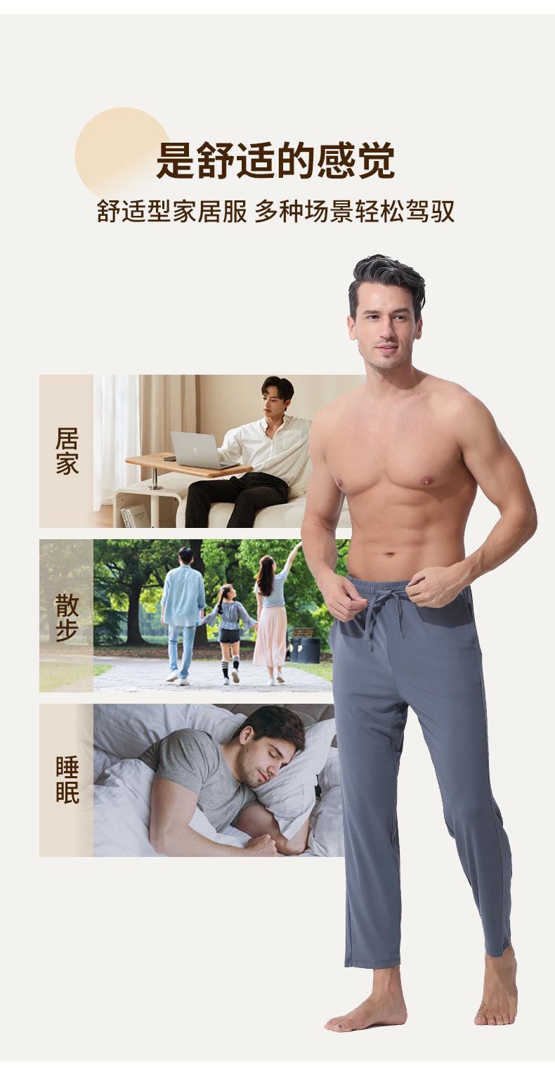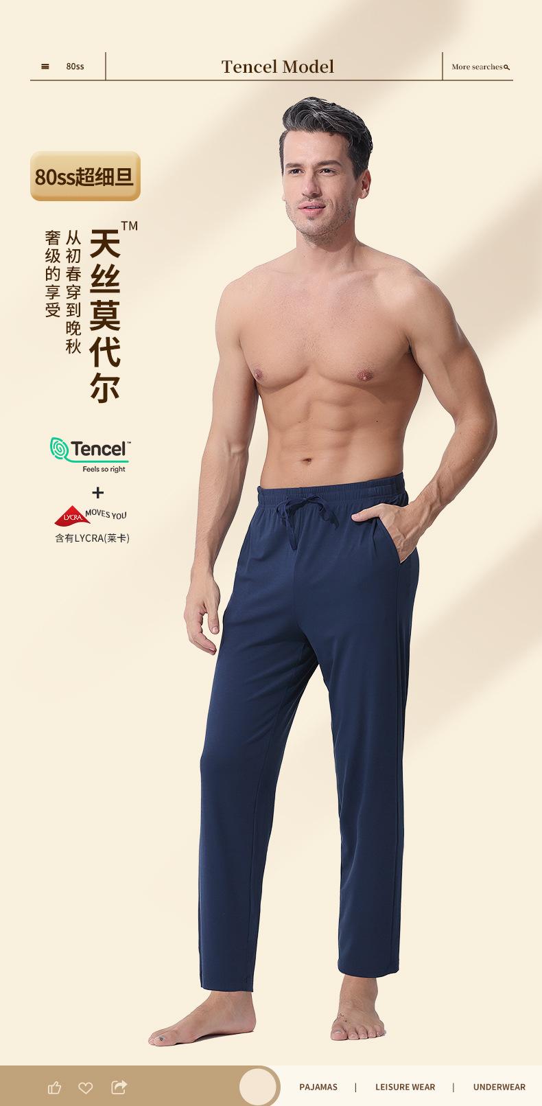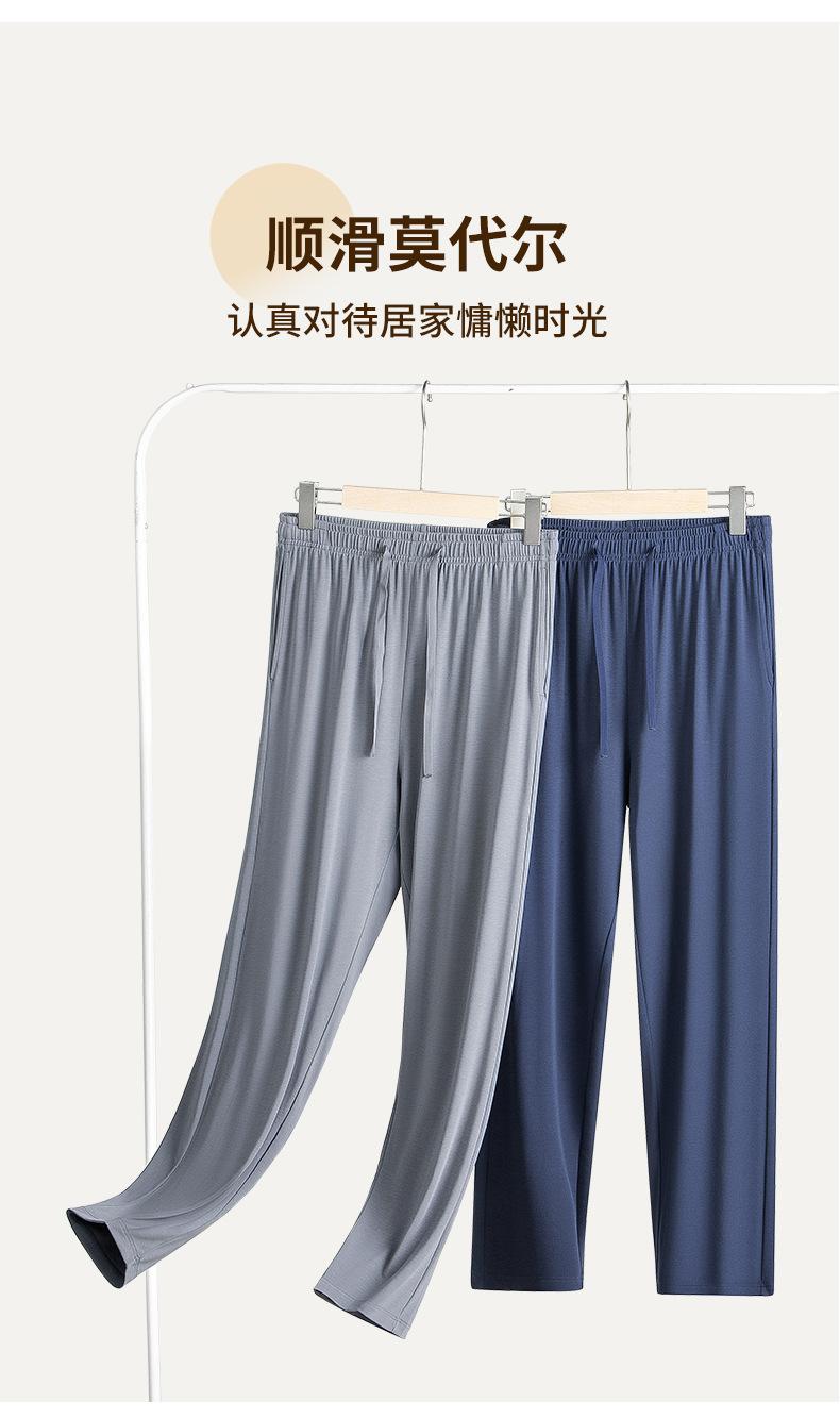 [Contador del mismo estilo] Pantalones de pijama finos de modal ligeros de lujo para hombre, de otoño e invierno, con cordón ajustable para uso diario.