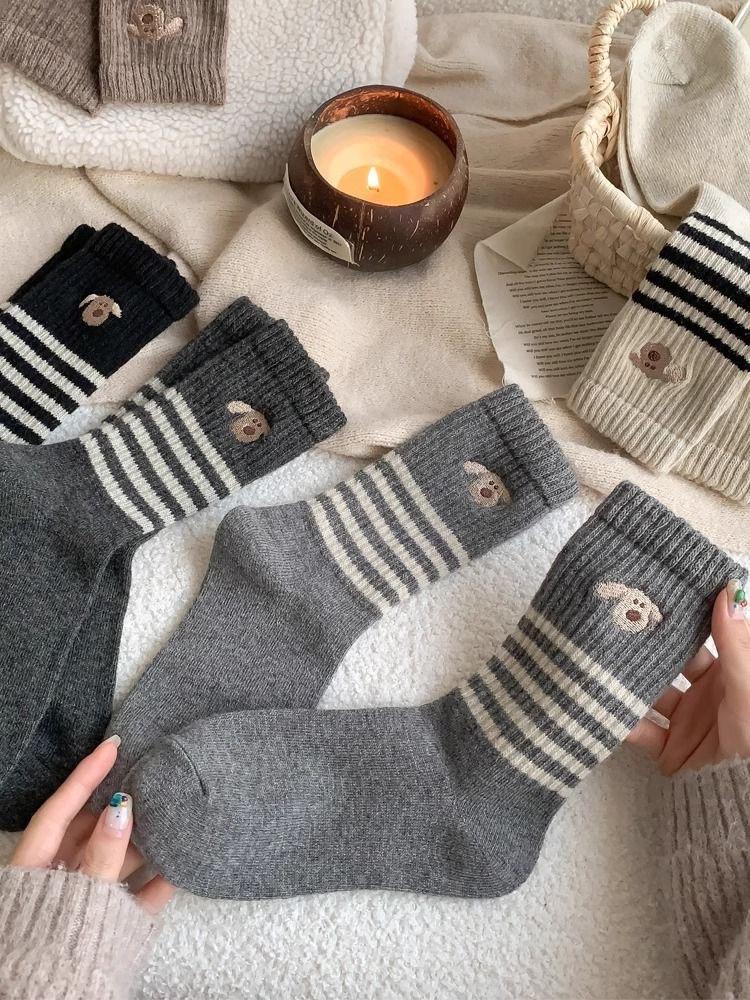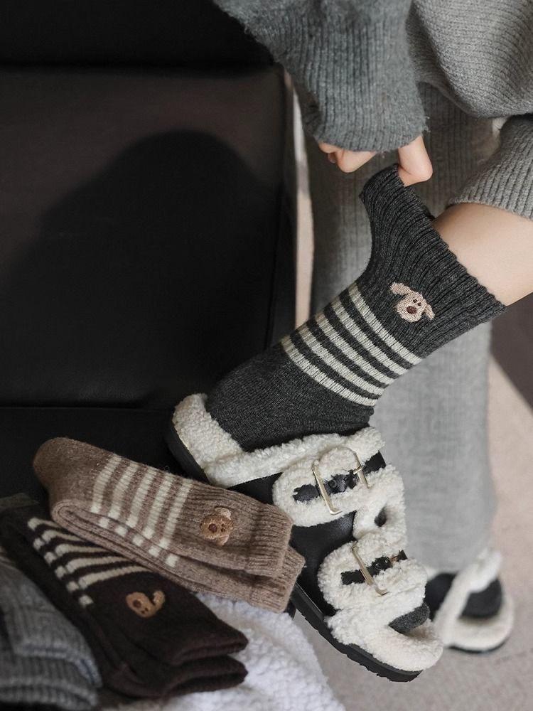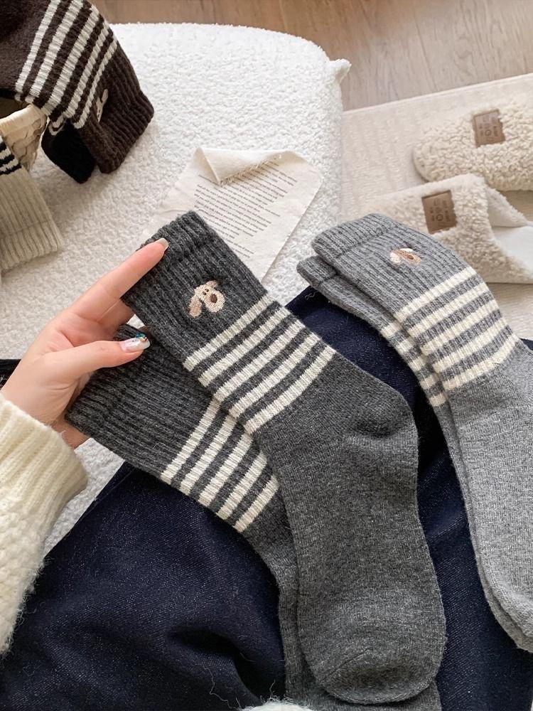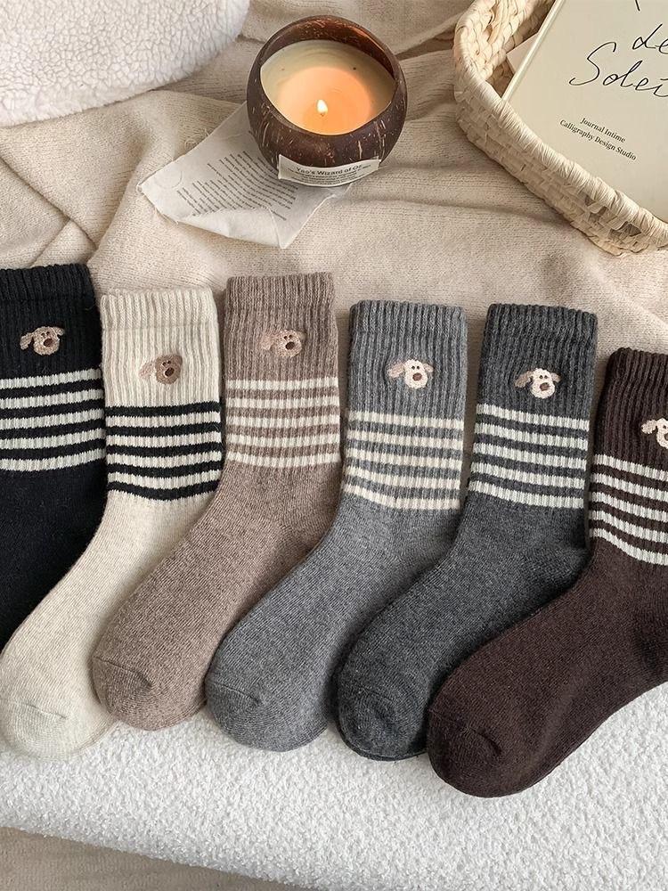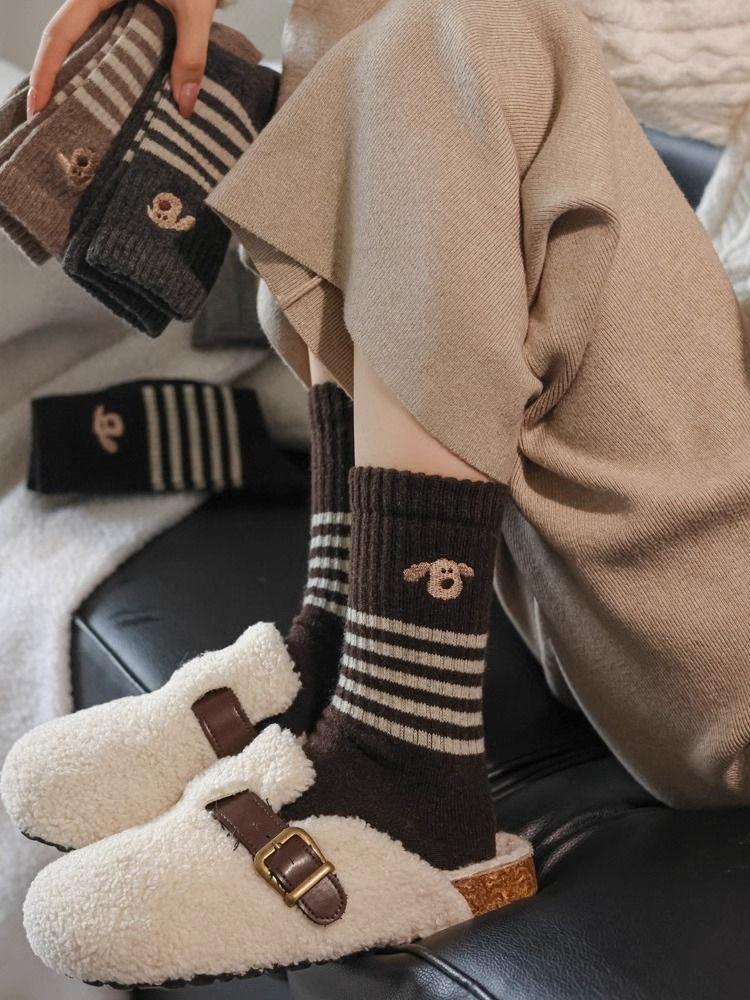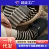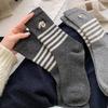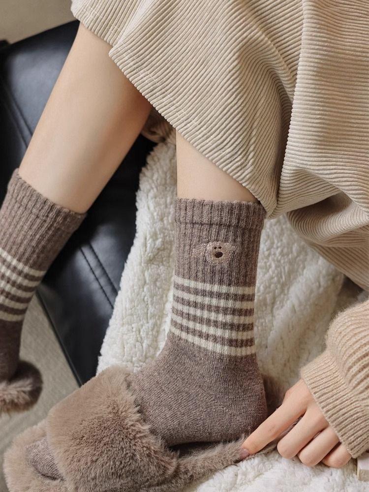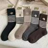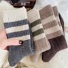 Calcetines gruesos y cálidos de rayas para otoño e invierno, para mujer, de longitud media, estilo japonés, estilo vintage Maillard, para invierno.