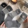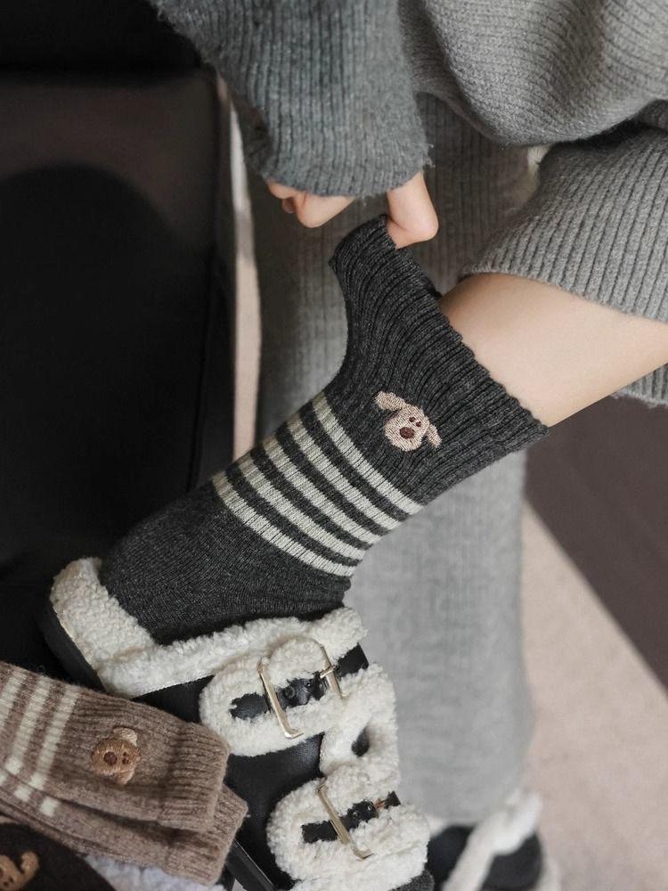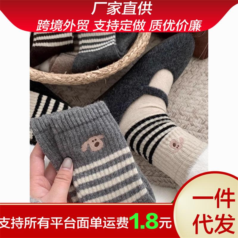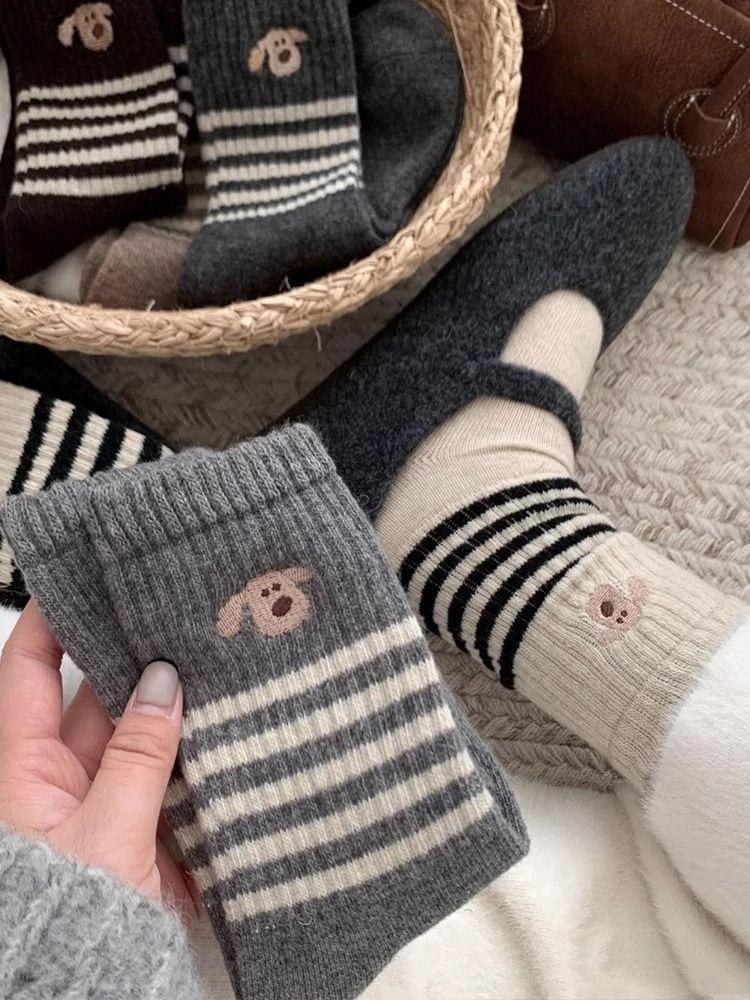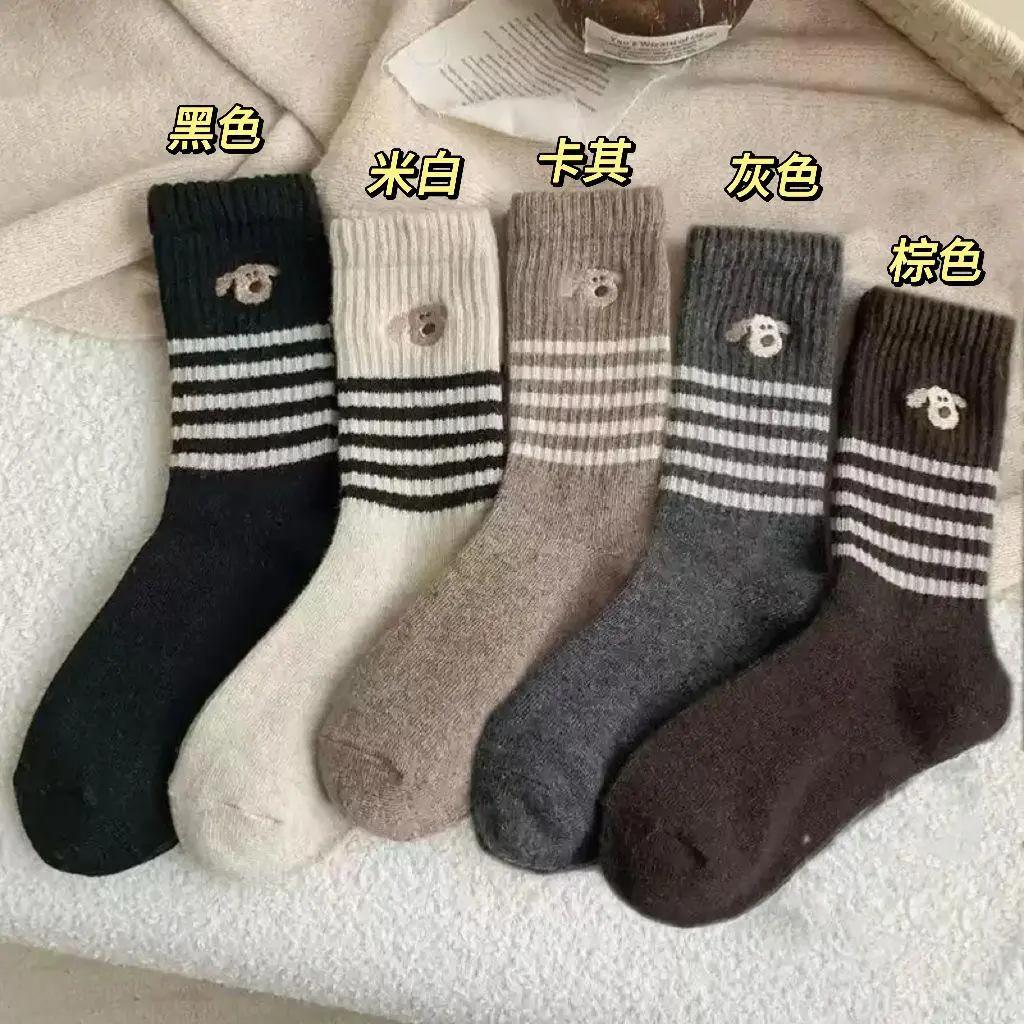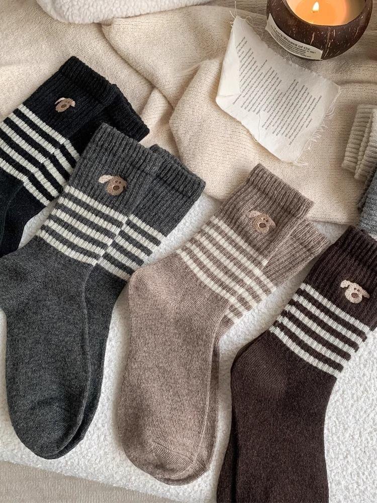Calcetines gruesos y cálidos de rayas para otoño e invierno, para mujer, de longitud media, estilo japonés, estilo vintage Maillard, para invierno.
