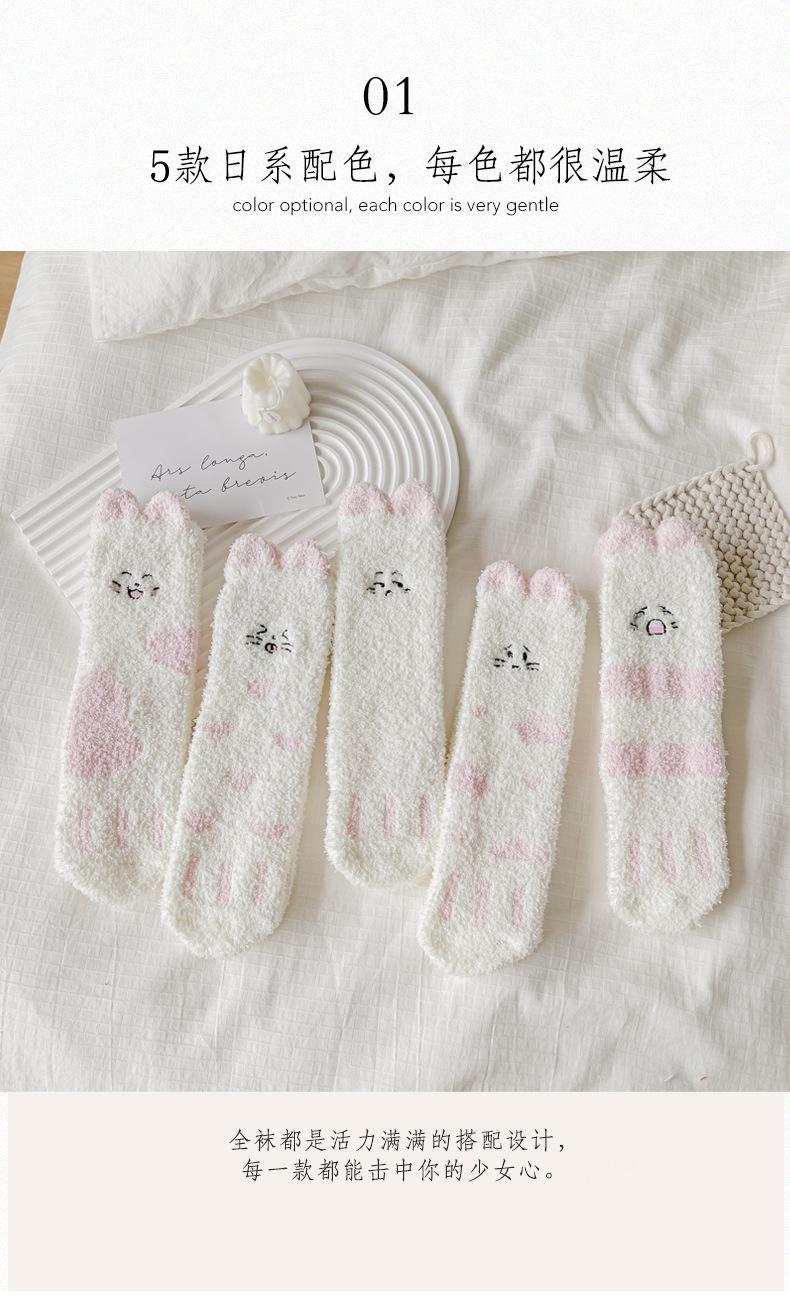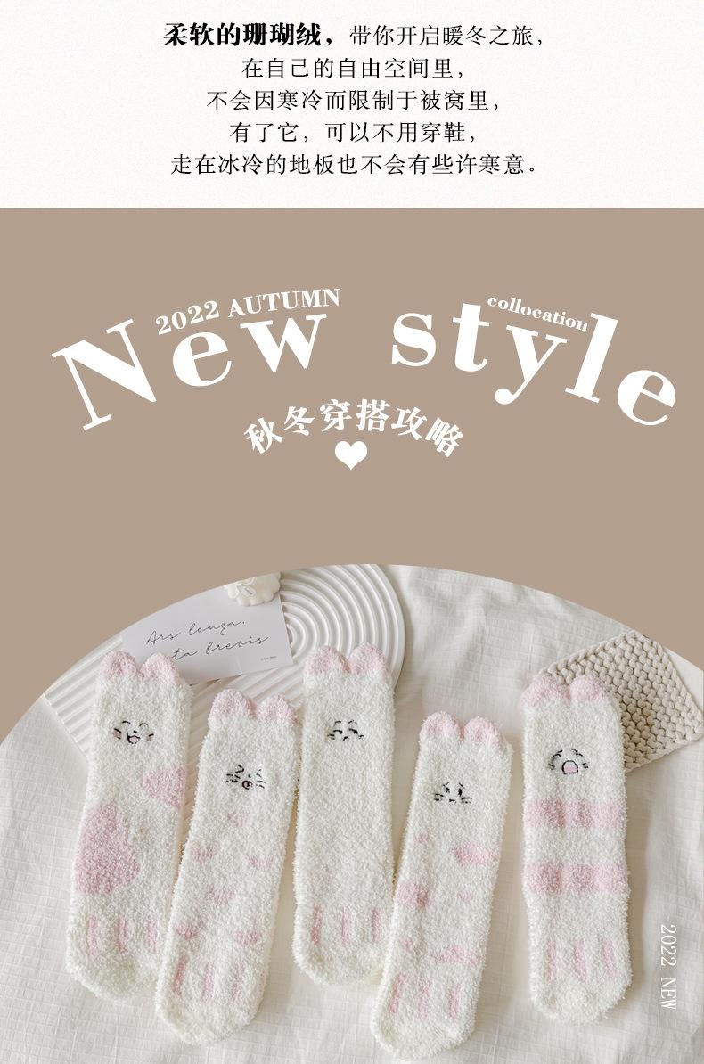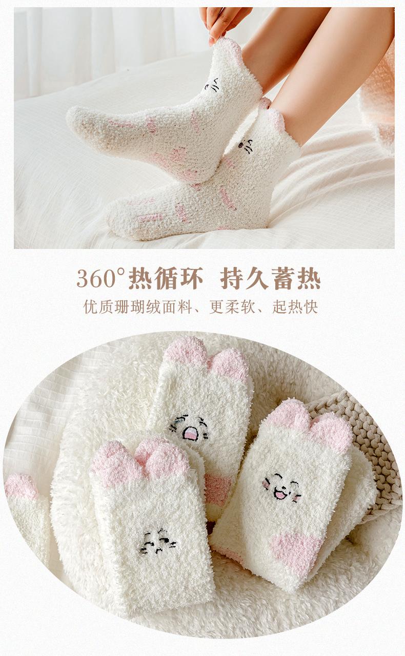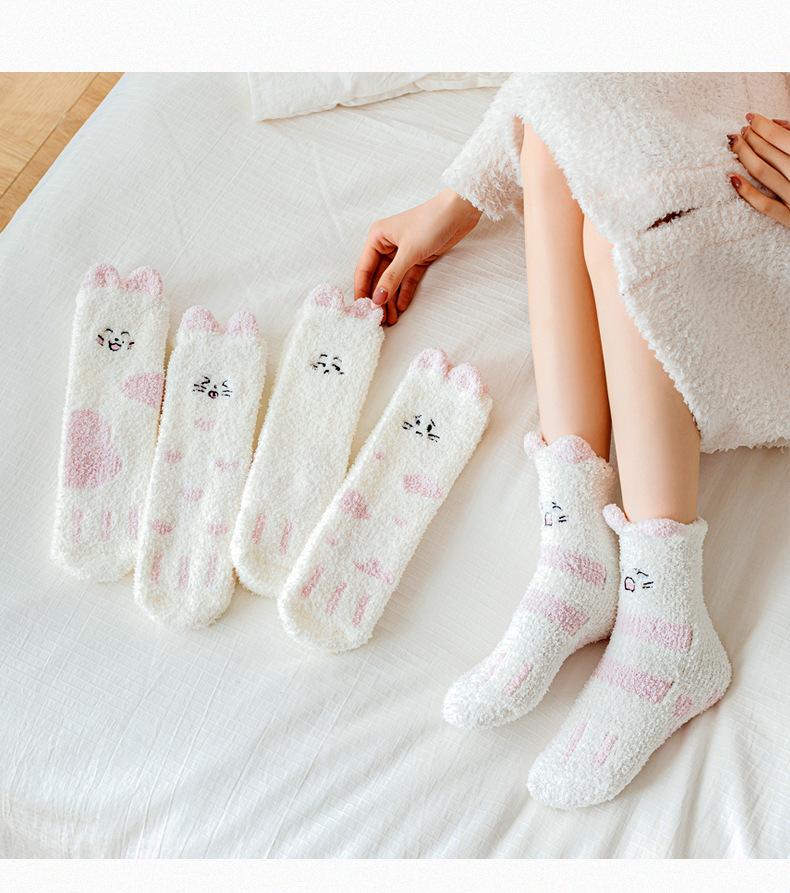 Calcetines de felpa de coral polar para mujer, calcetines de tubo medio, otoño e invierno, con garras de gato, bonitos, gruesos y cálidos, para dormir en el suelo.