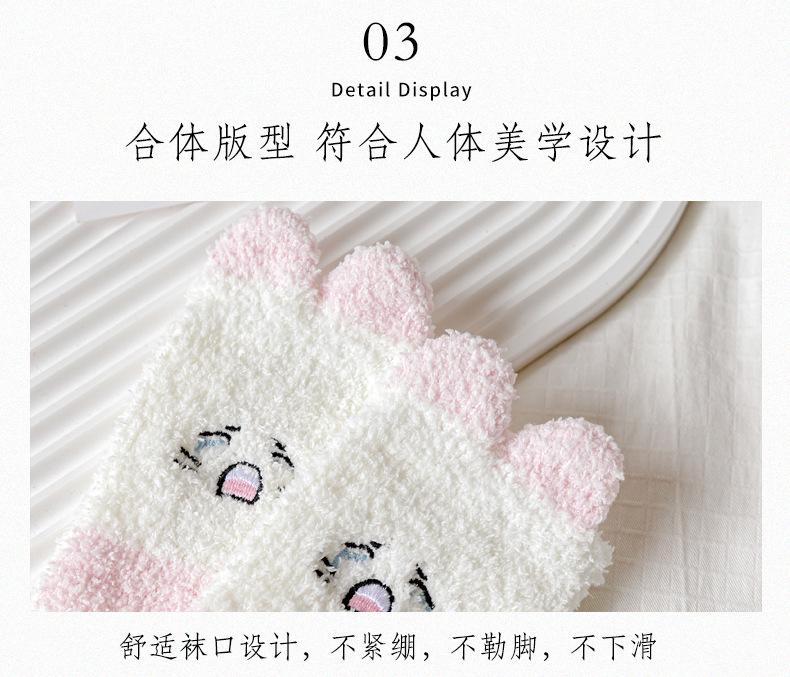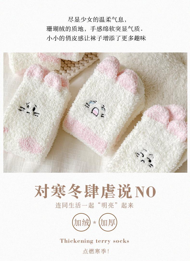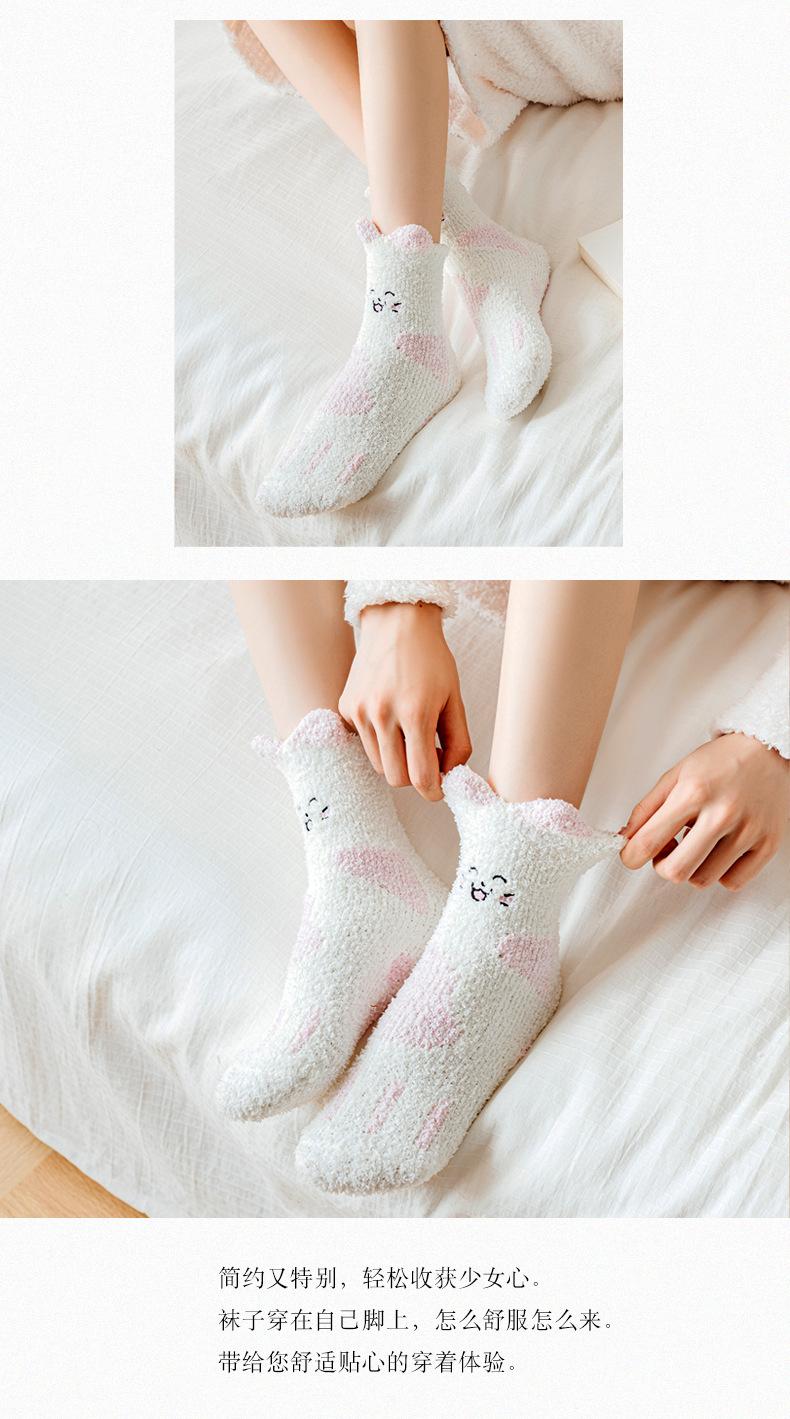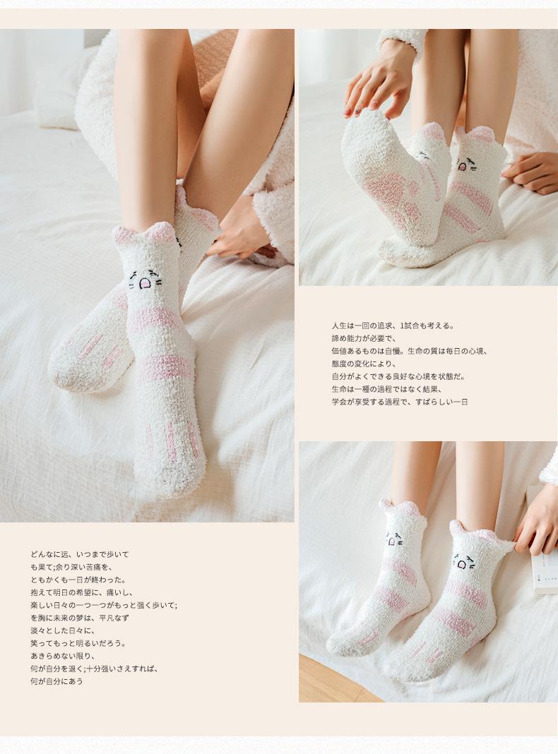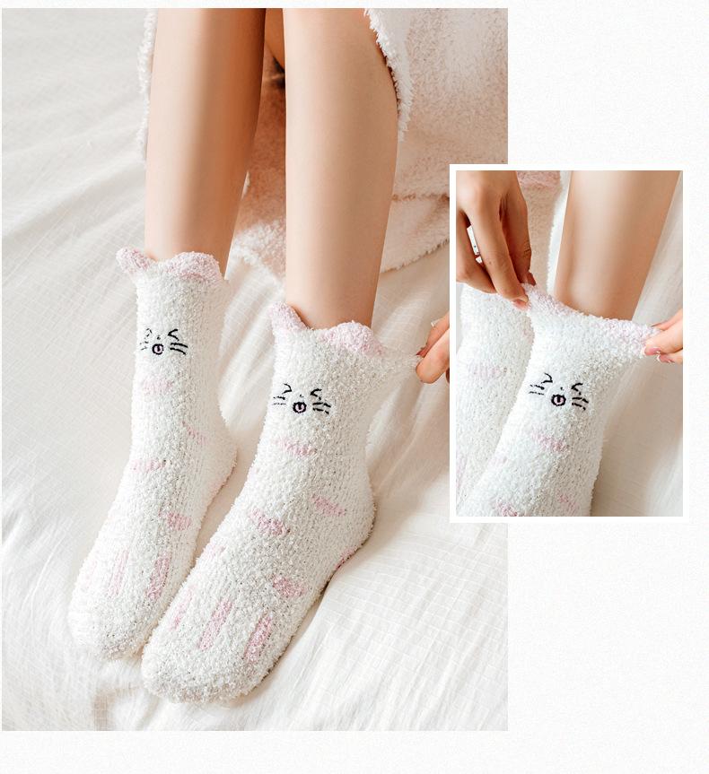 Calcetines de felpa de coral polar para mujer, calcetines de tubo medio, otoño e invierno, con garras de gato, bonitos, gruesos y cálidos, para dormir en el suelo.