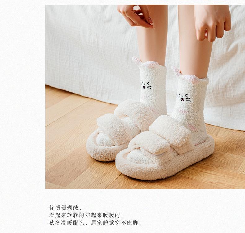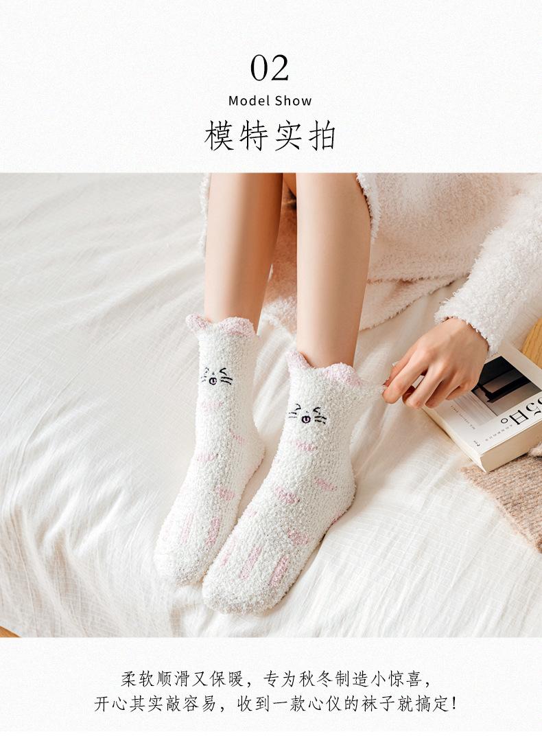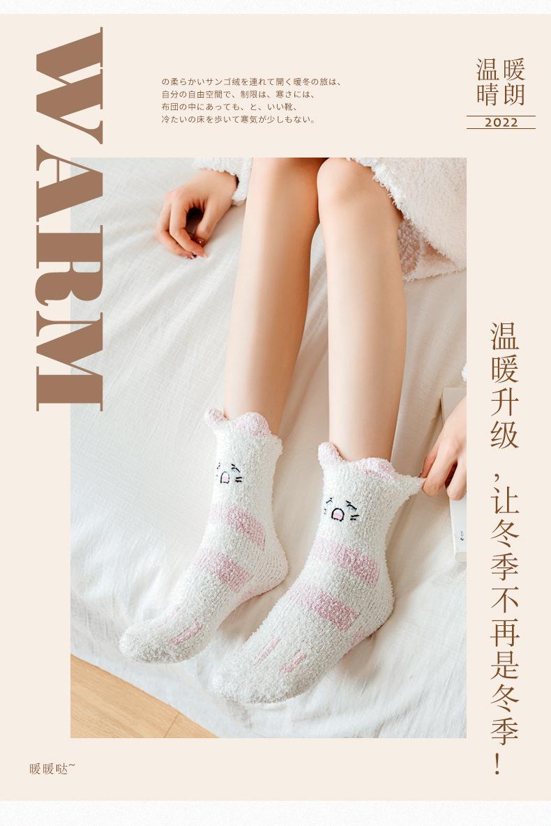 Calcetines de invierno de estilo nuevo para mujer, de terciopelo de media cara, bonitos calcetines de gato gruesos y cálidos para dormir, calcetines de luna.