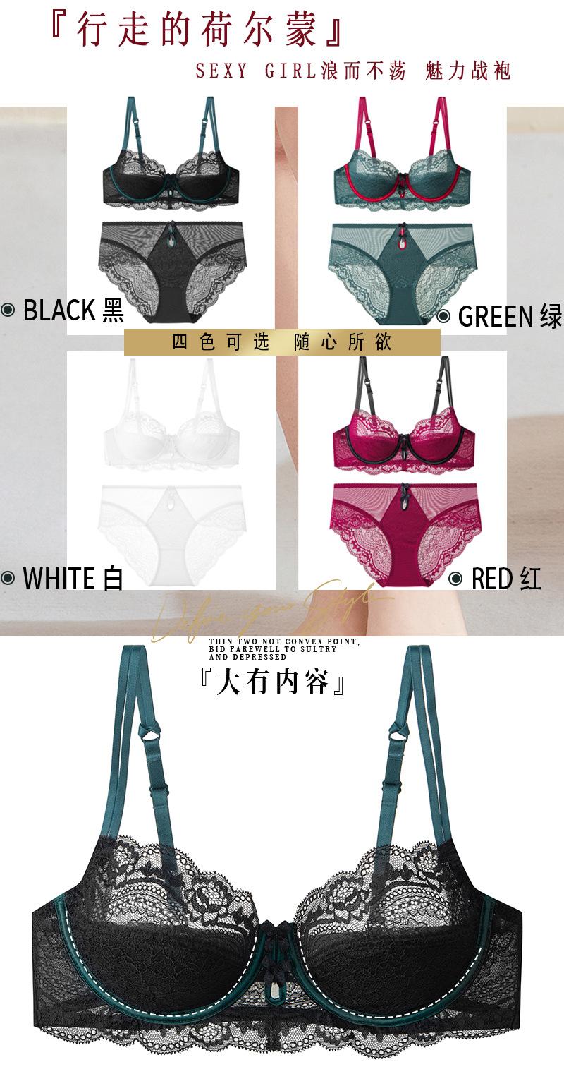 Conjunto de ropa interior de encaje sexy, ropa interior fina de pecho grande y pequeña para mujer, sujetador transpirable Pure Desire, conjunto de sujetador ultrafino