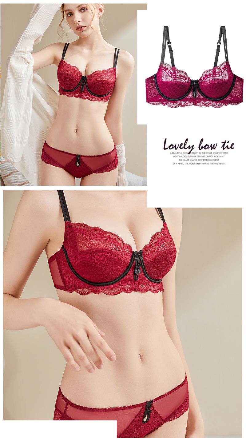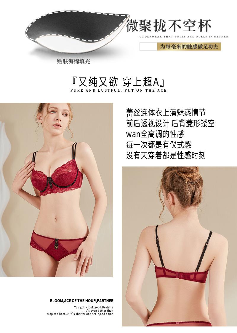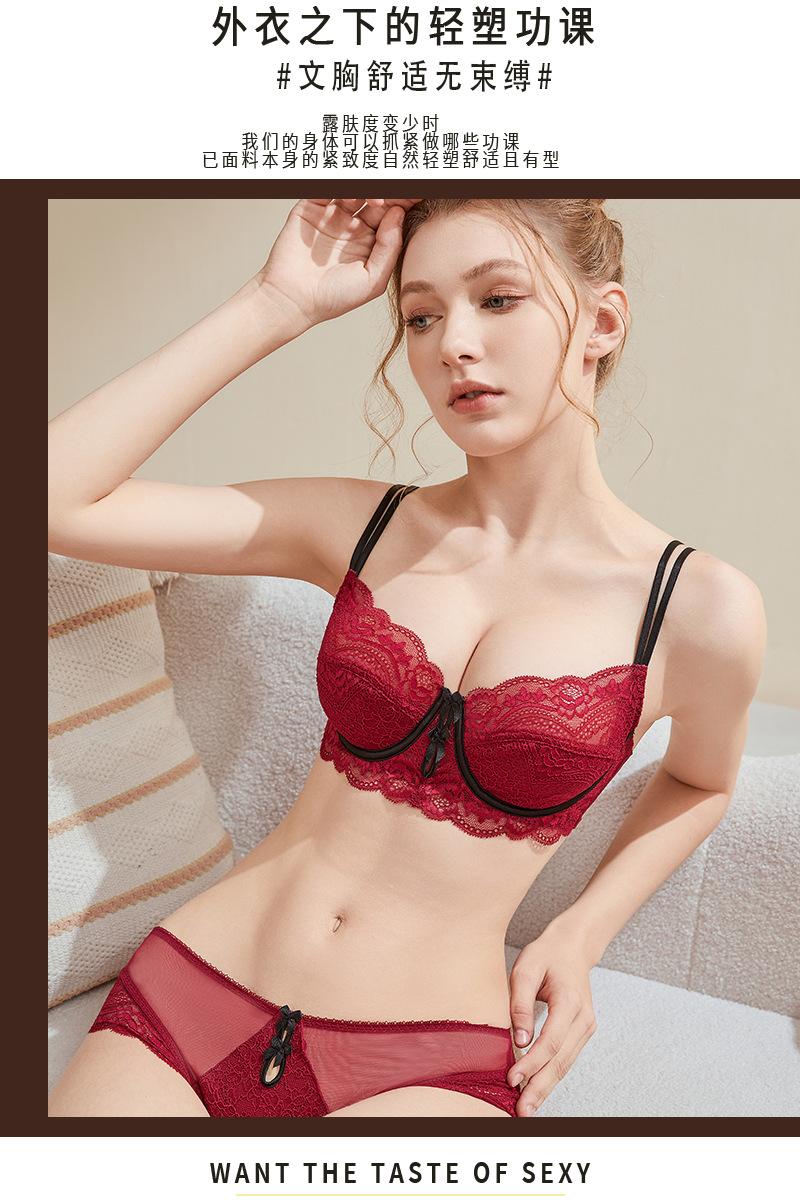 Europa y Estados Unidos vida caliente año sexy ropa interior pura quiere sujetador de encaje fino traje transpirable ropa interior roja al por mayor
