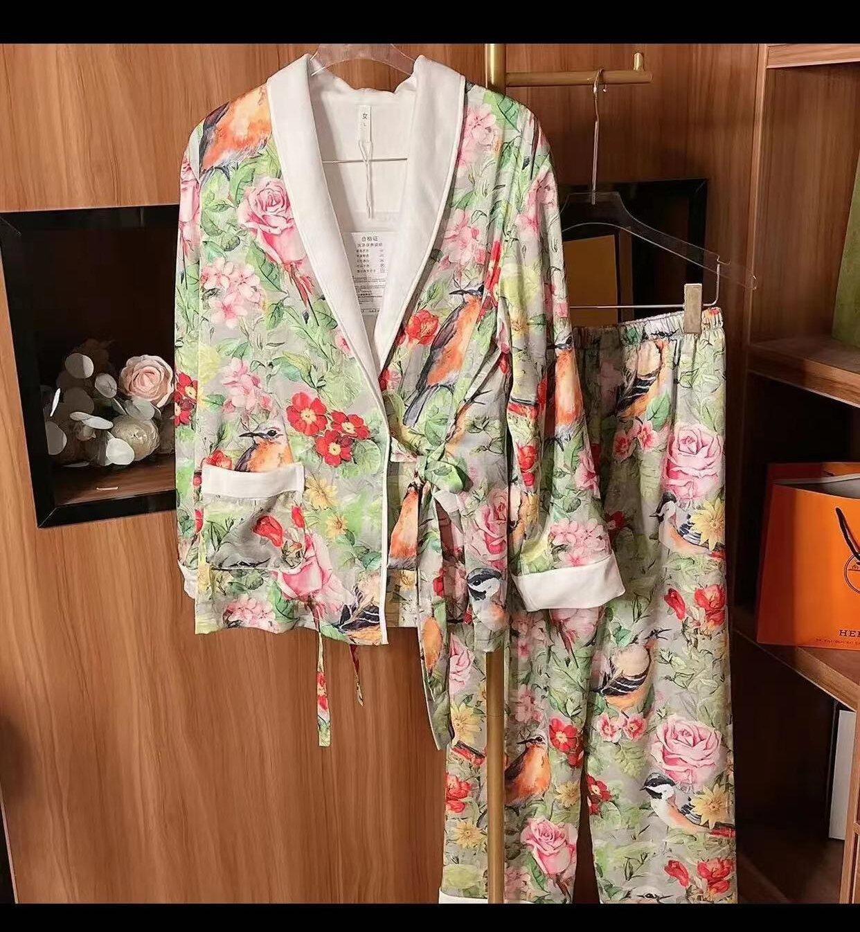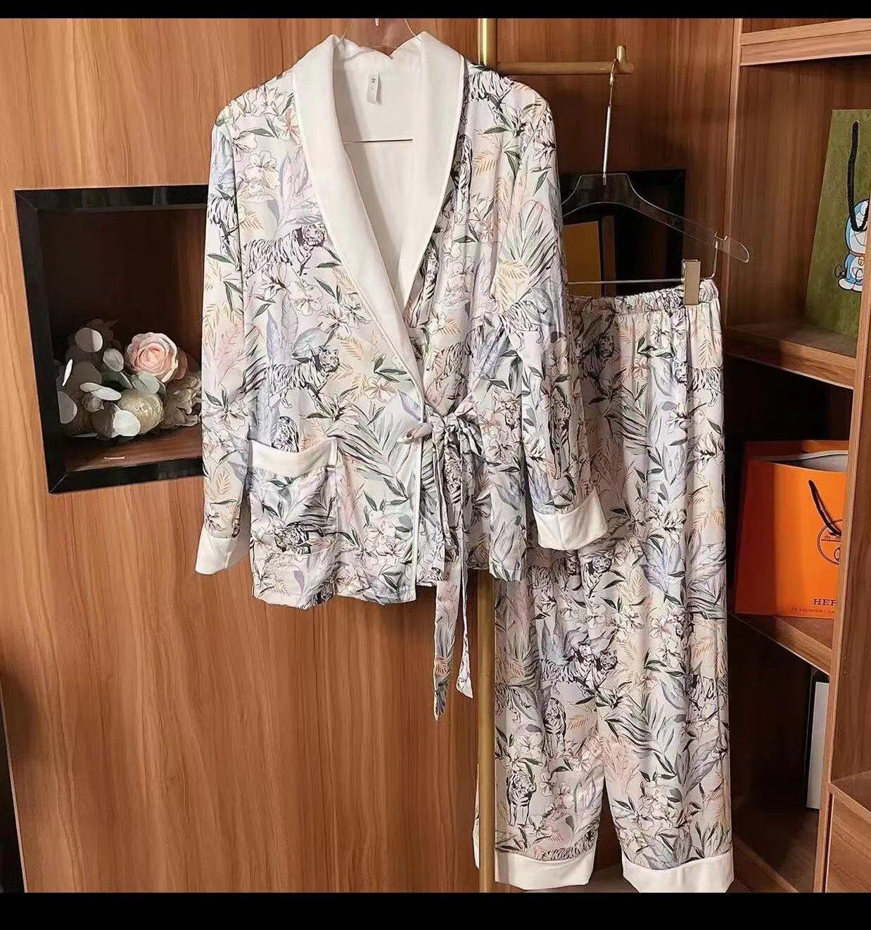Terciopelo de Seda Invierno Nuevo Alta Gama Celebridad de Internet Ropa para el Hogar para Mujer Forro de Satén Acolchado Grueso Pijama para Mujer Se Puede Usar Afuera