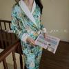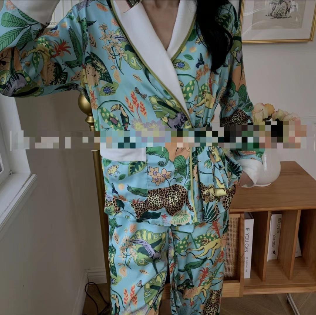 Seda más terciopelo nuevo invierno de alta gama ropa de casa de celebridad de Internet para mujer forro de satén más terciopelo pijama grueso para mujer se puede usar afuera