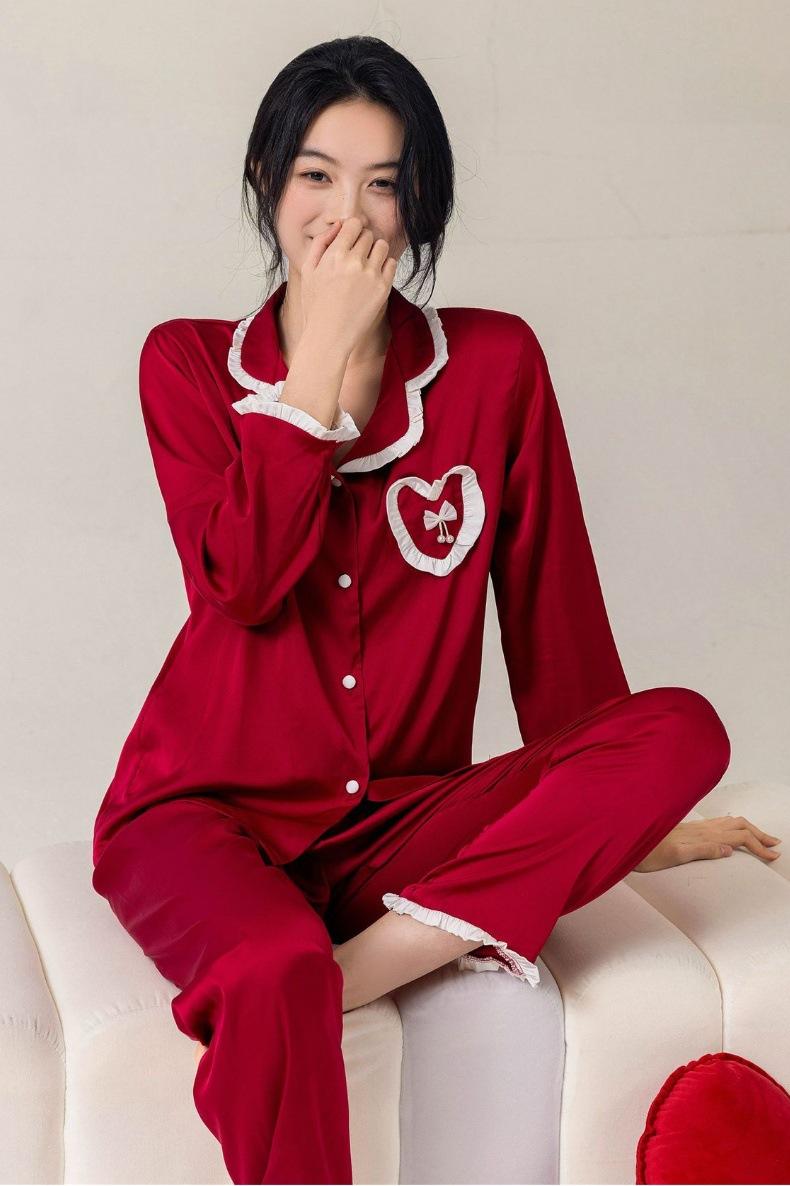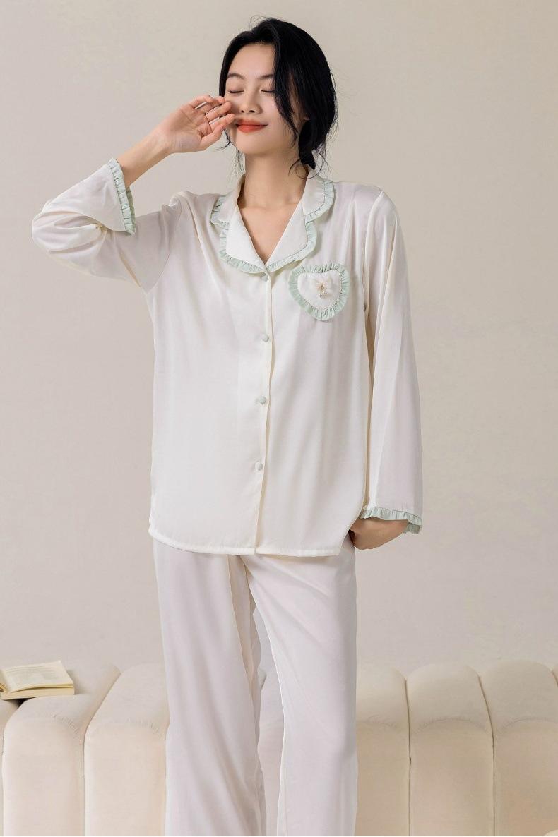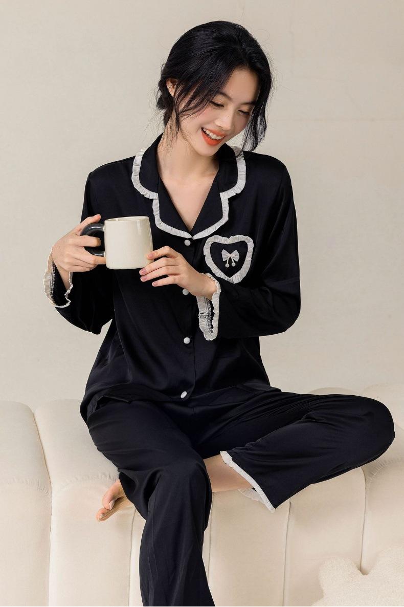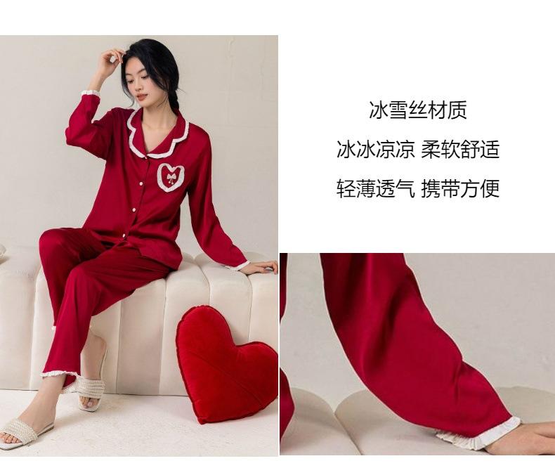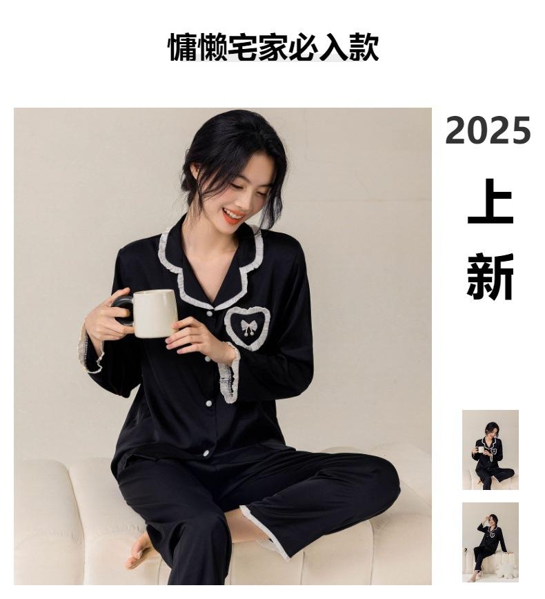 Pijamas Estilo Nuevo 2025 Primavera y Otoño Encaje Francés Femenino Manga Larga Pantalones Pijamas de Satén Suave Seda de Hielo para Mujer