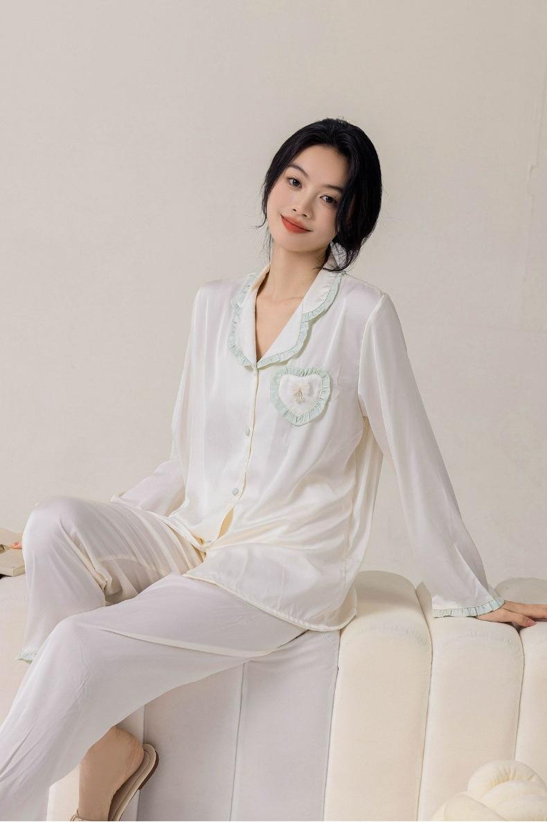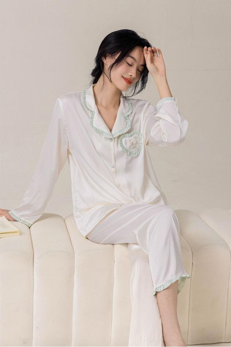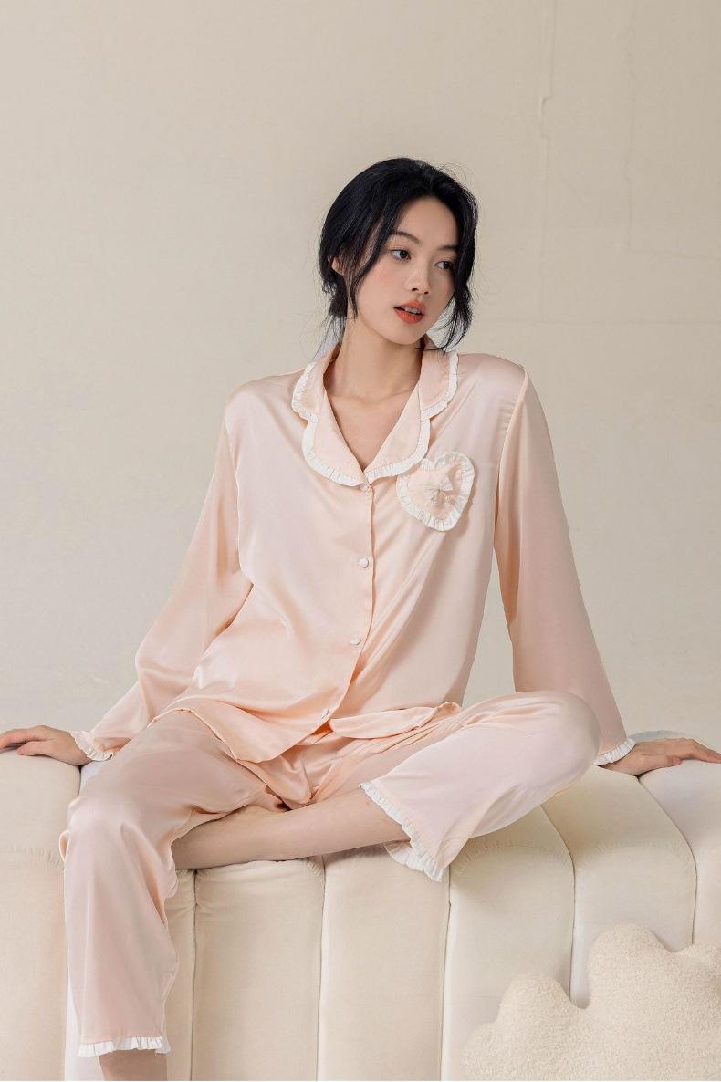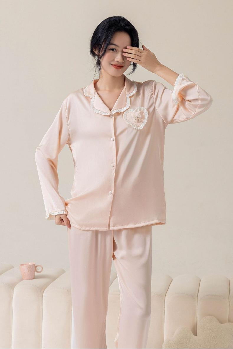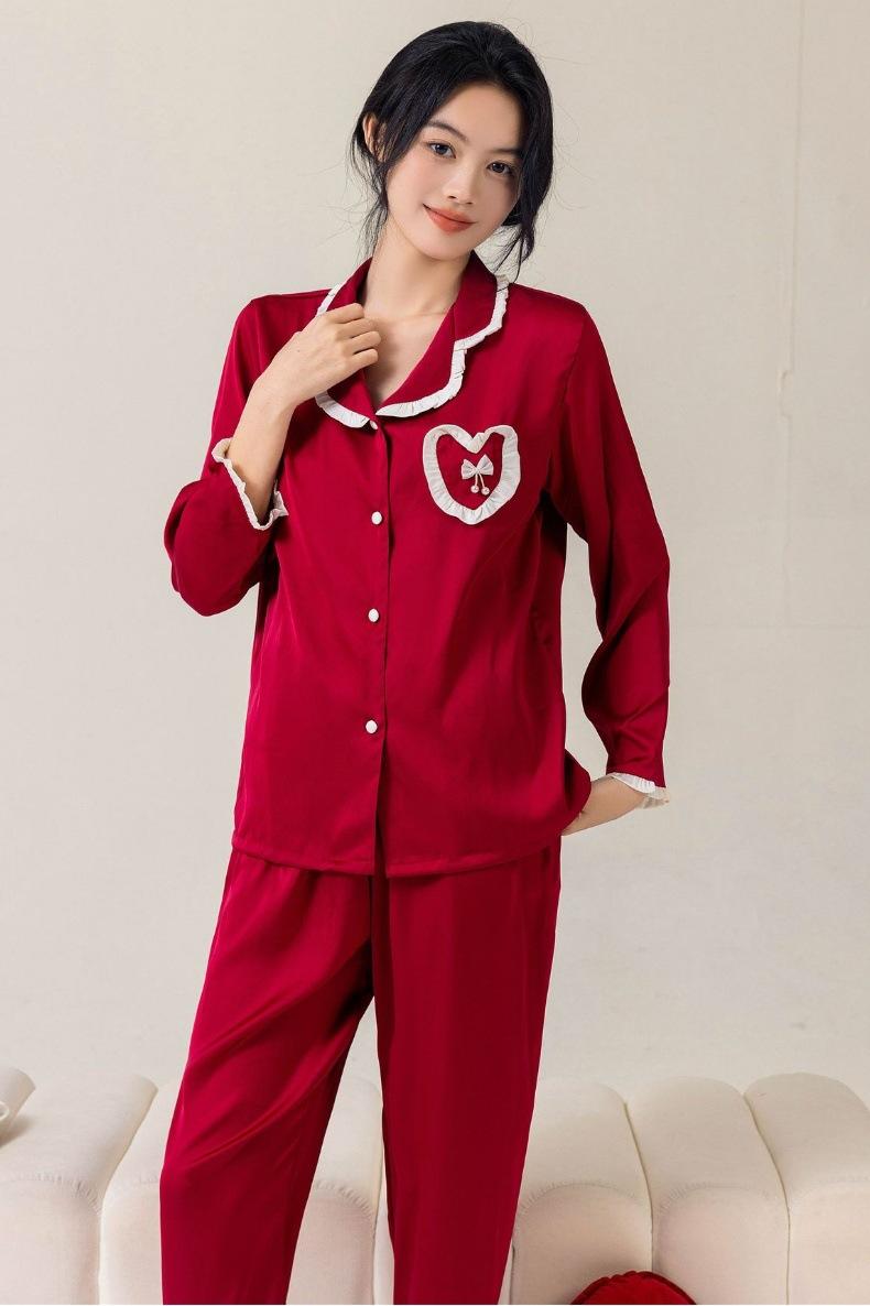 Pijamas Estilo Nuevo 2025 Primavera y Otoño Encaje Francés Femenino Manga Larga Pantalones Pijamas de Satén Suave Seda de Hielo para Mujer