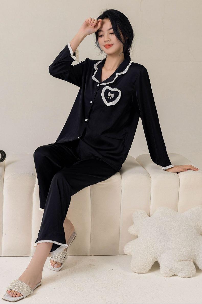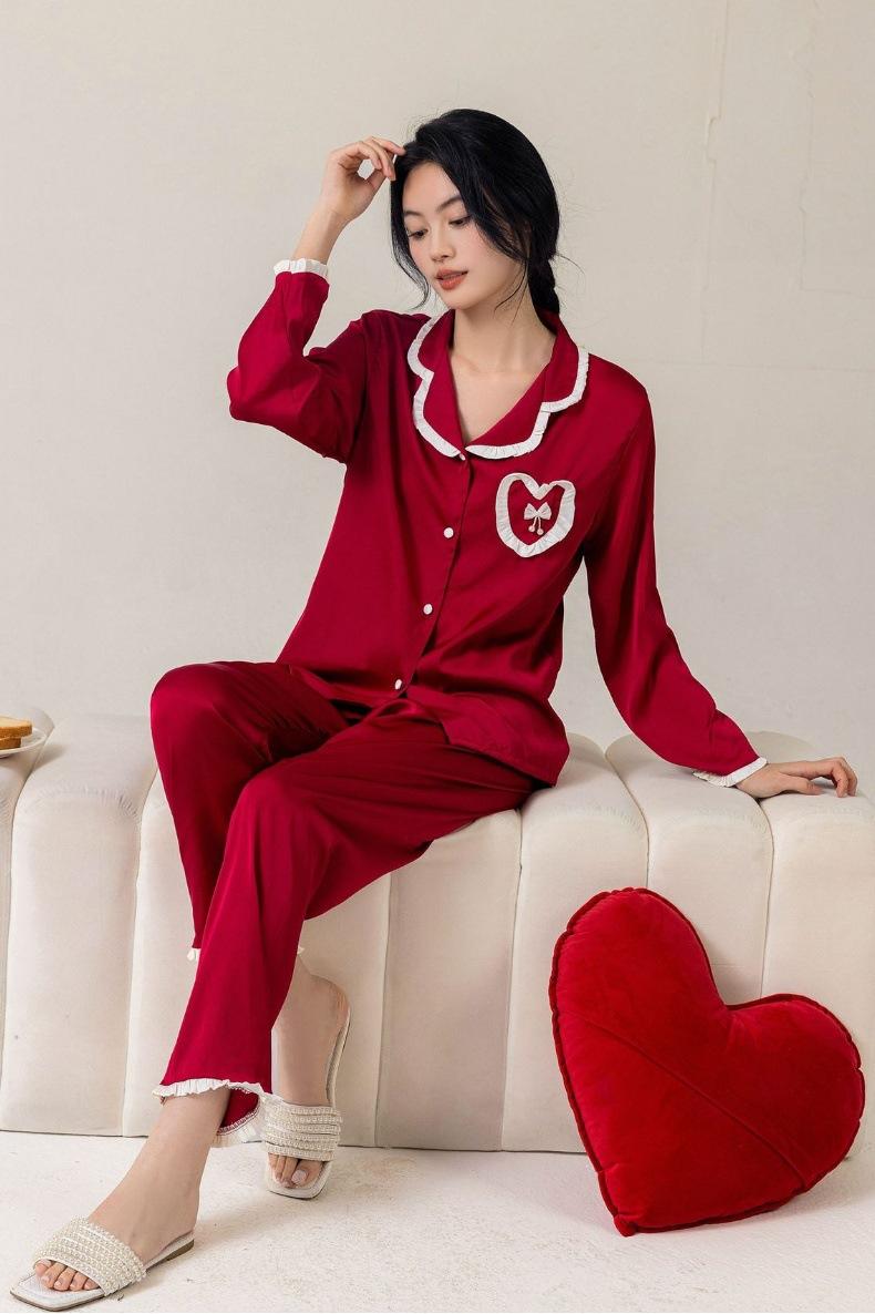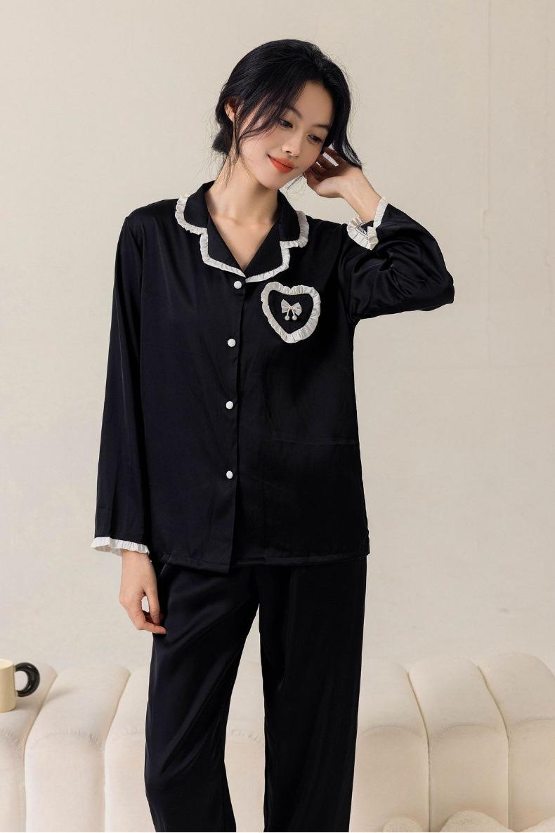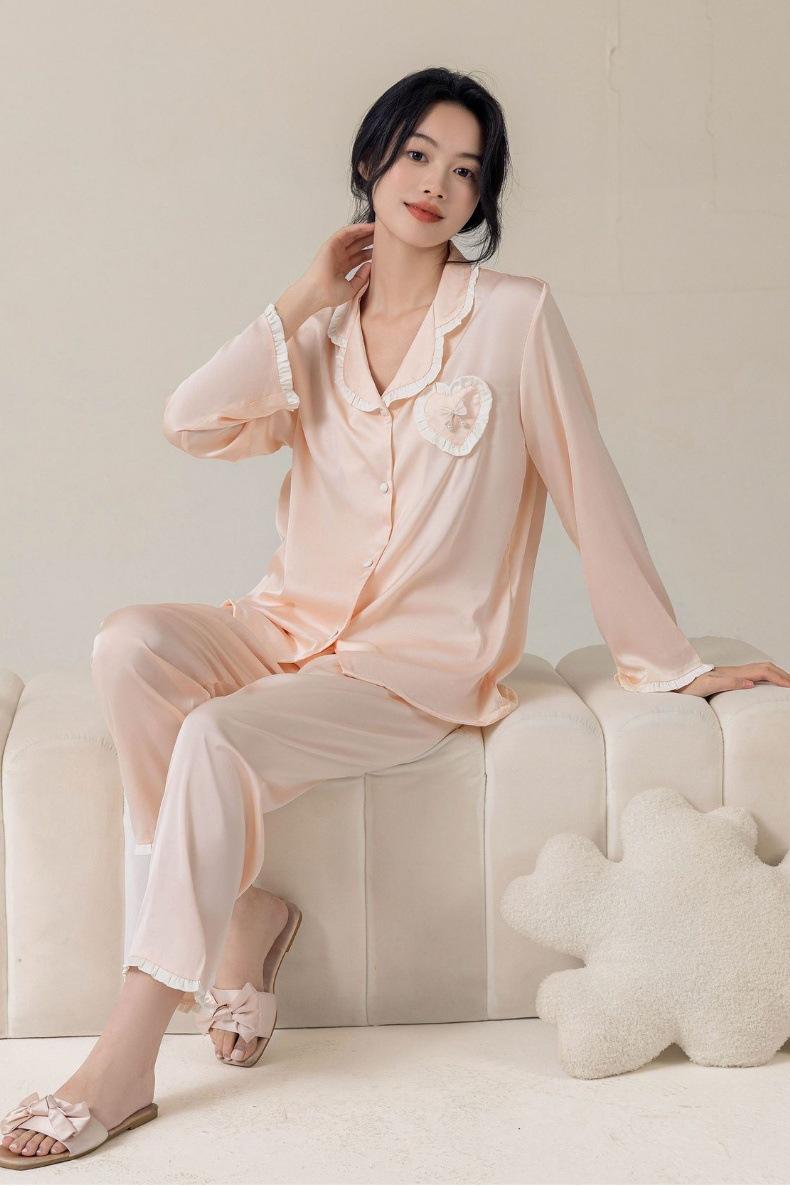 Pijamas Estilo Nuevo 2025 Primavera y Otoño Encaje Francés Femenino Manga Larga Pantalones Pijamas de Satén Suave Seda de Hielo para Mujer