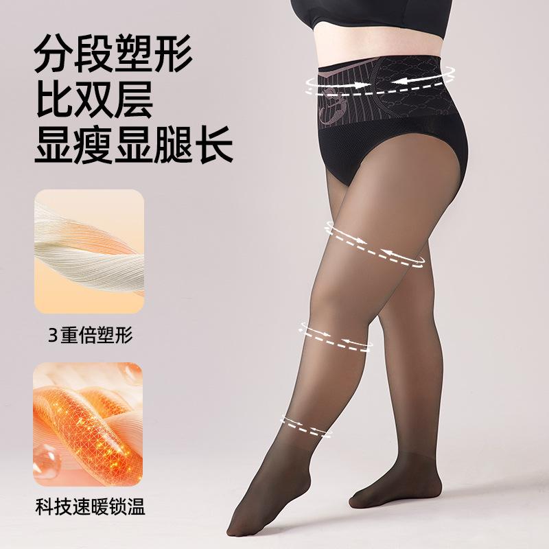 Talla grande piel negra artefacto para piernas claras para mujer otoño e invierno forrado de vellón seda negra grasa mm 200 kg calcetines luz de agua leggings de carne falsa