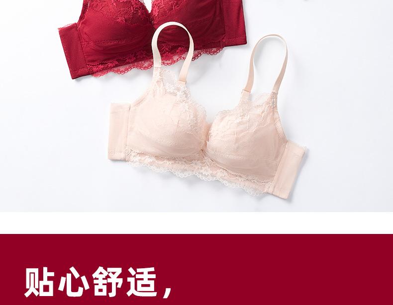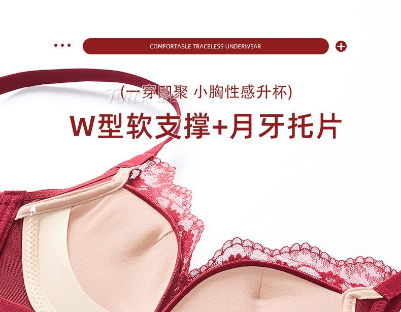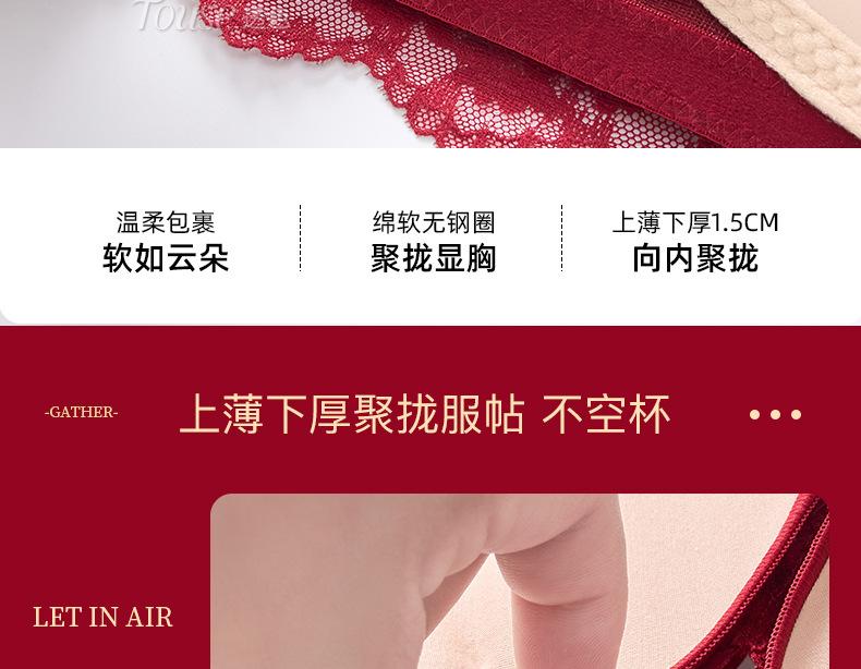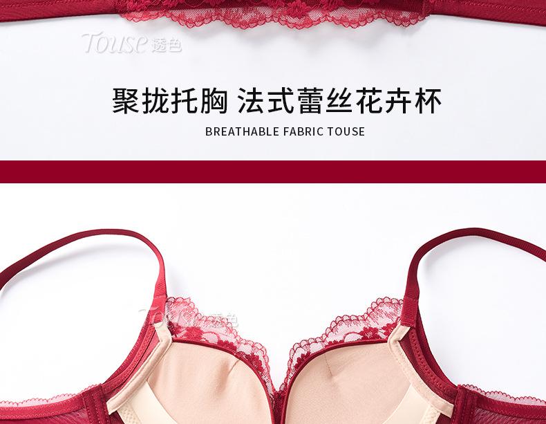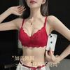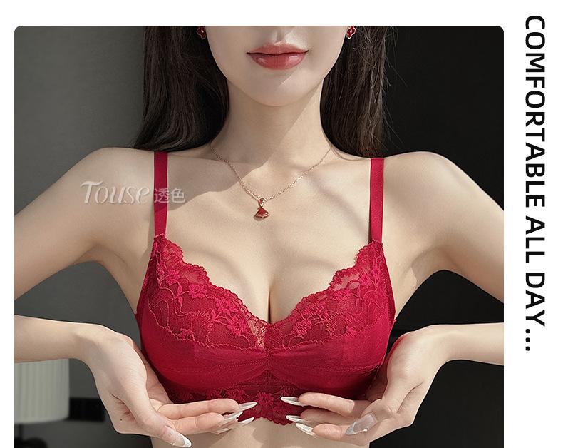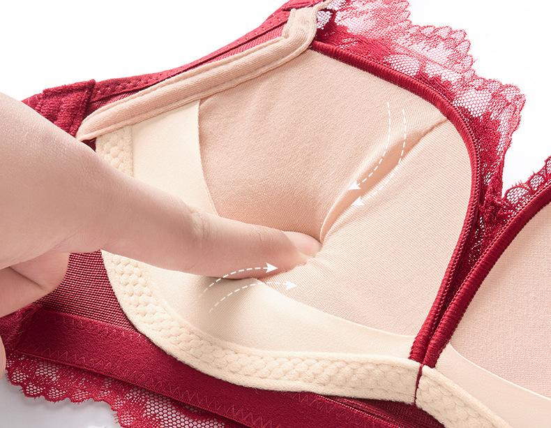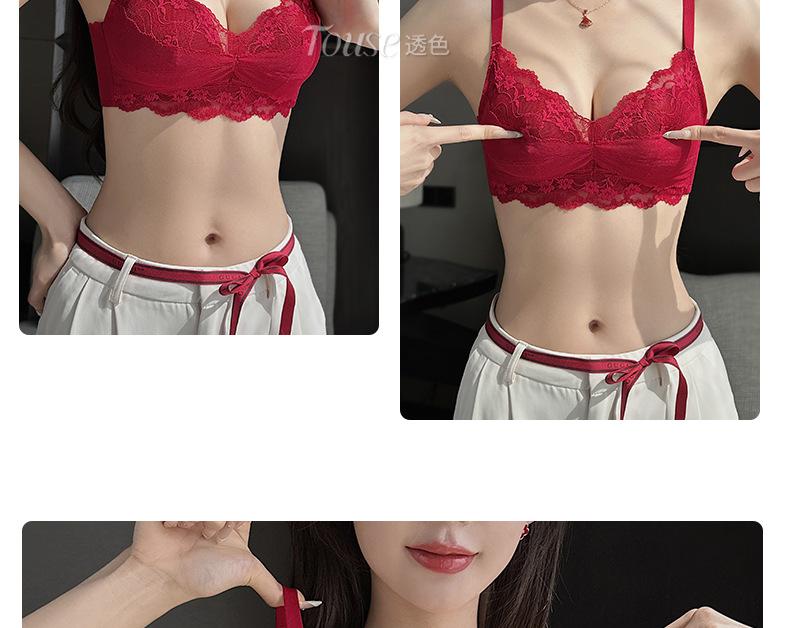 Ropa Interior Modal Roja Traje para Mujer Pecho Pequeño Recogido Calzones Grandes Sexy de Encaje Sujetador de Boda