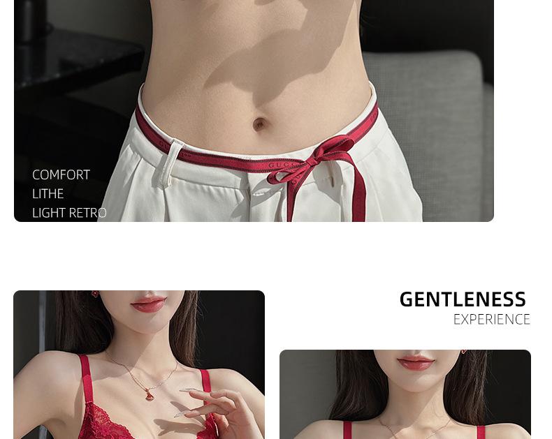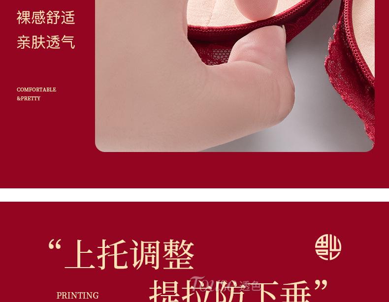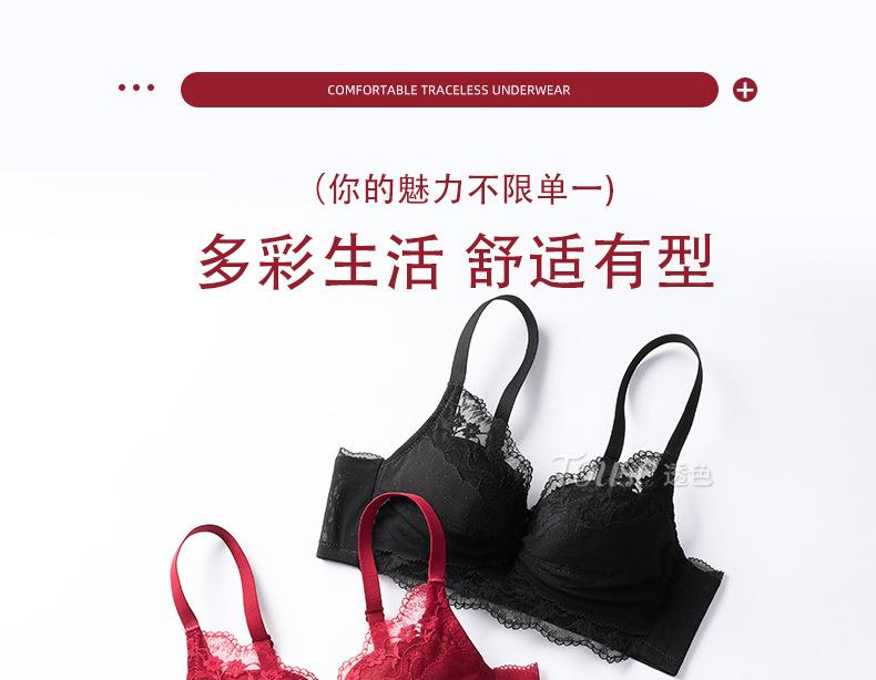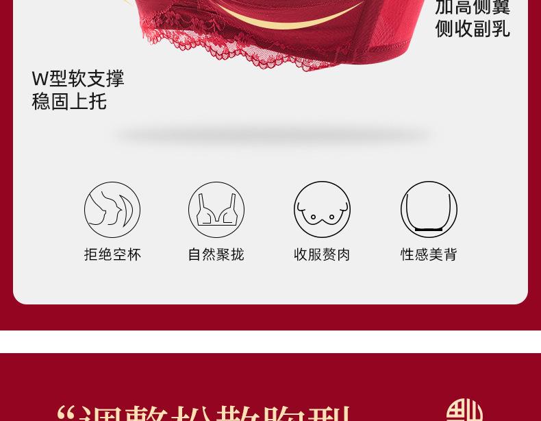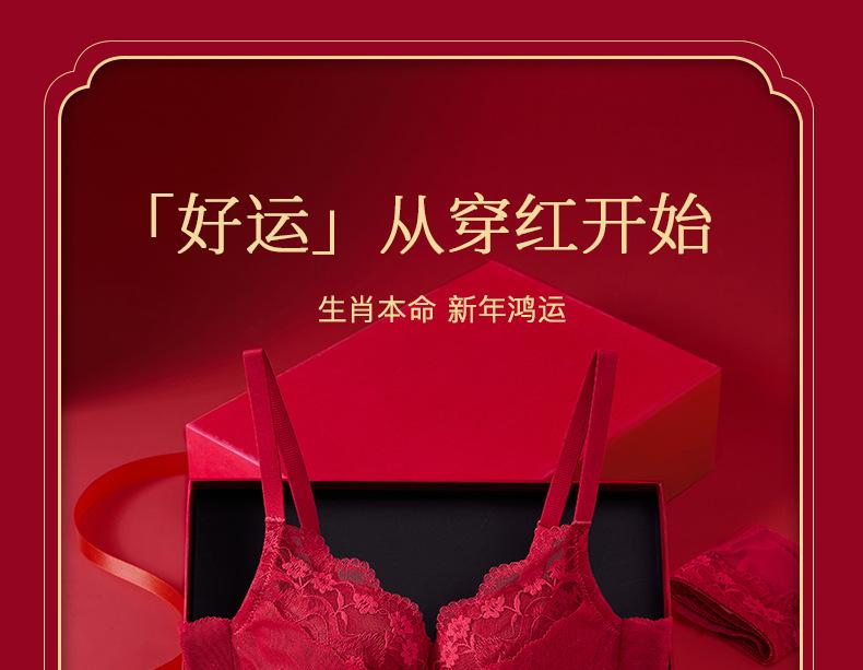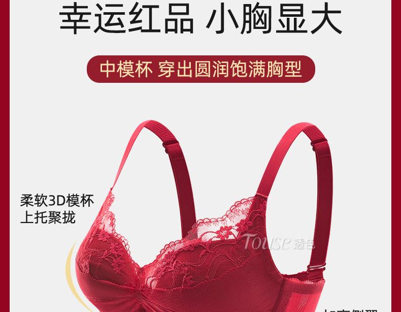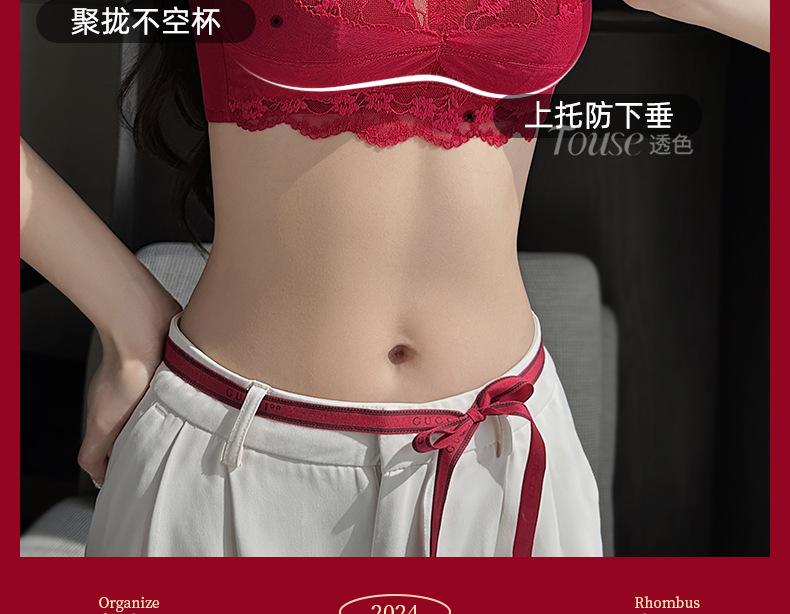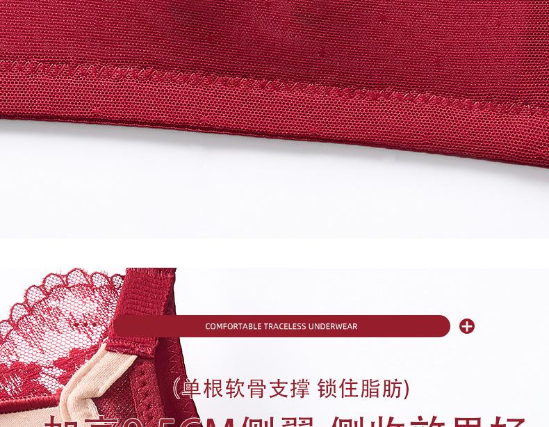 Ropa Interior Modal Roja Traje para Mujer Pecho Pequeño Recogido Calzones Grandes Sexy de Encaje Sujetador de Boda
