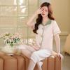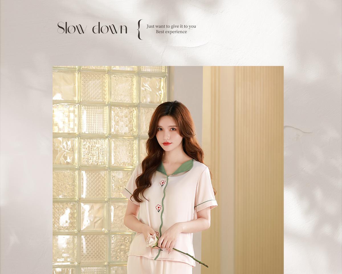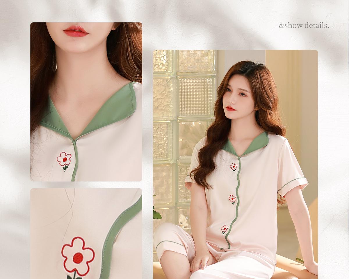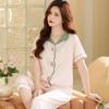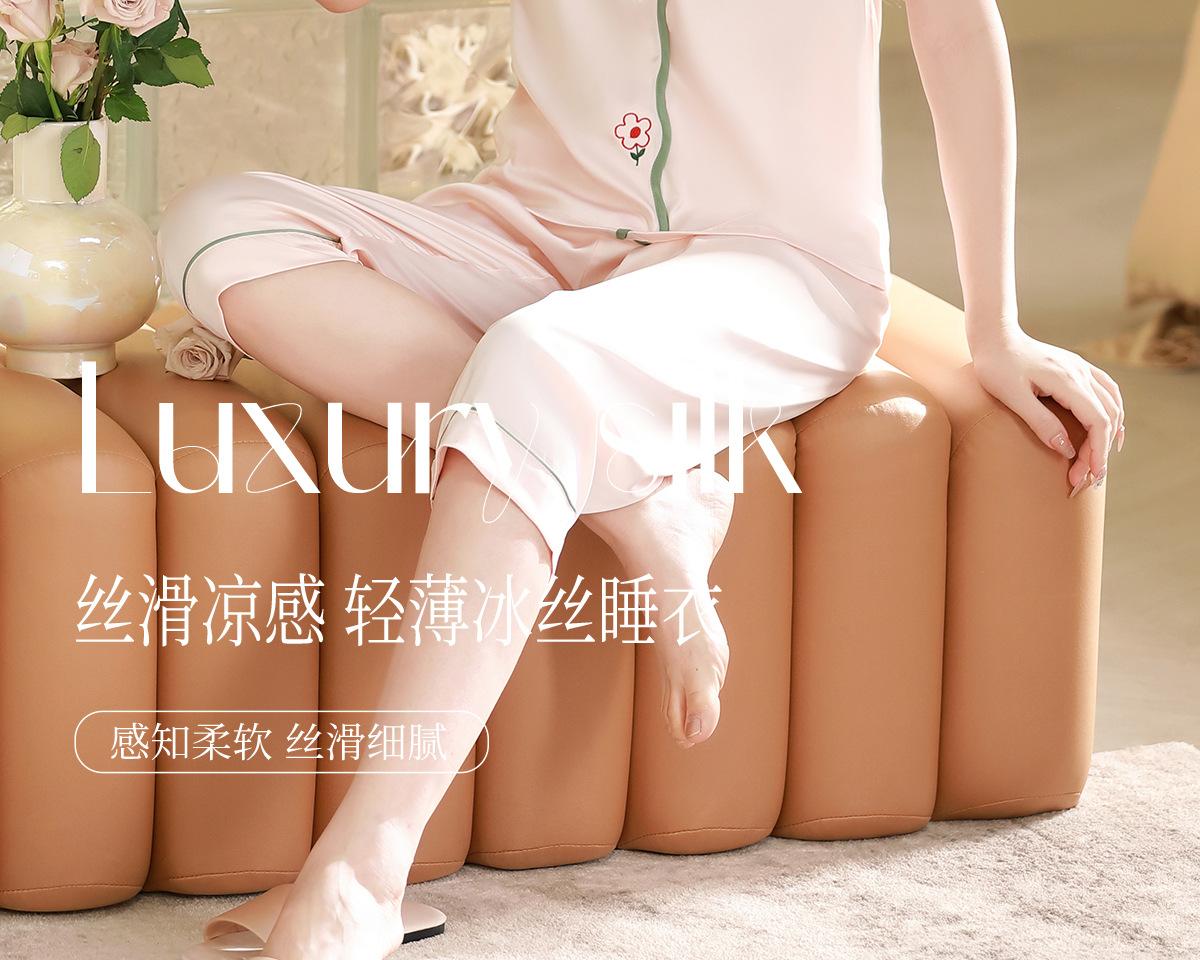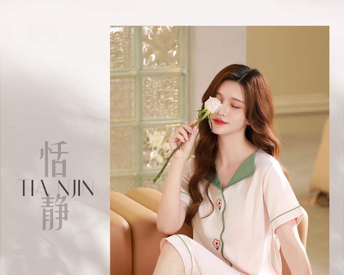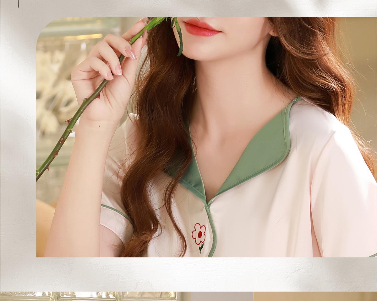 [Seda de Hielo y Nieve] Pijama para Mujer Verano Delgado Seda de Hielo Manga Corta Fresco y de Alta Gama Dos Piezas Ropa para el Hogar Talla Grande