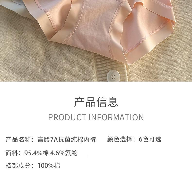 Braguitas de cadera para niña de algodón 7A antibacteriano de cintura alta abdomen algodón entrepierna algodón puro suave ceroso amigable con la piel simple color sólido