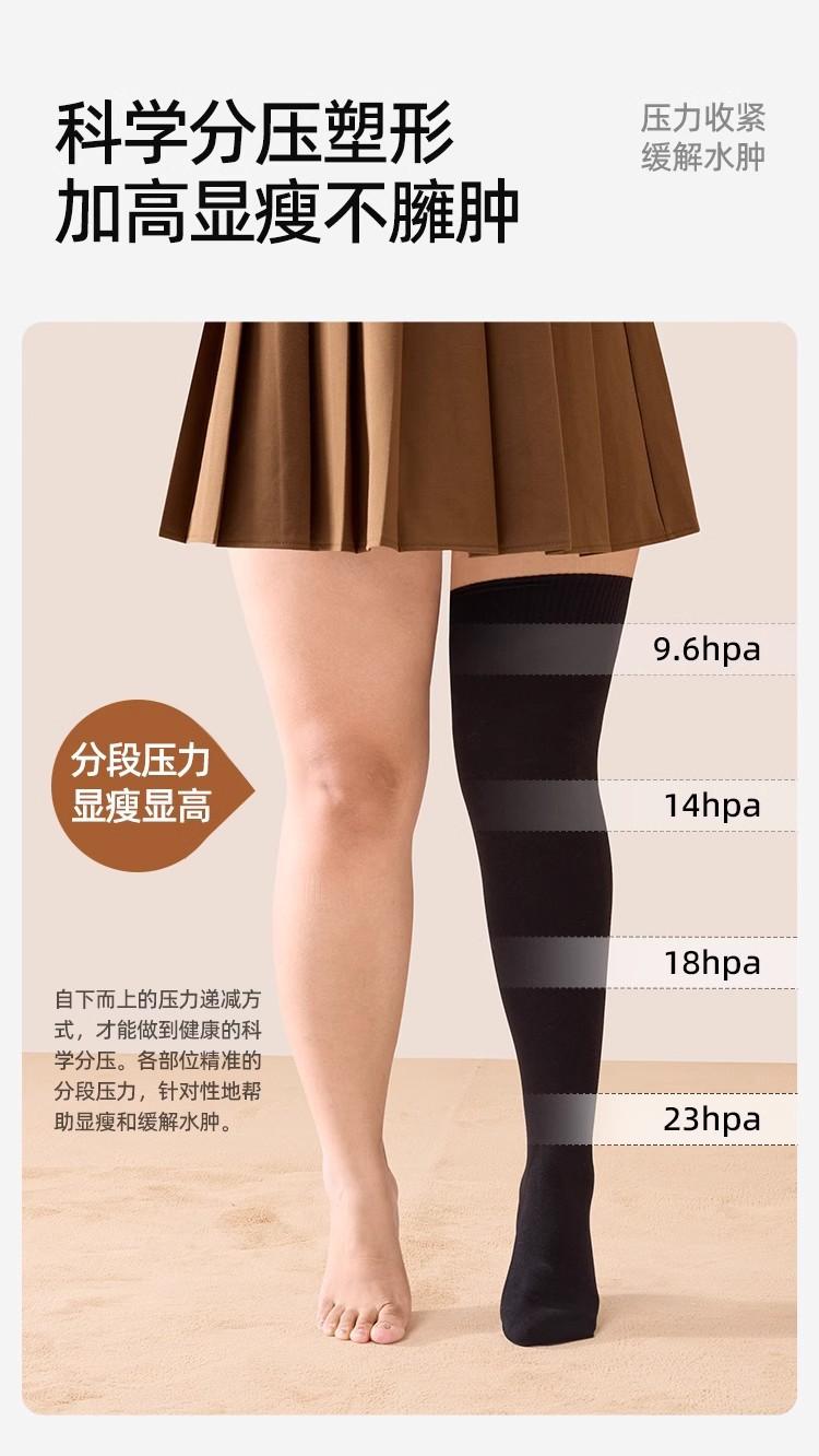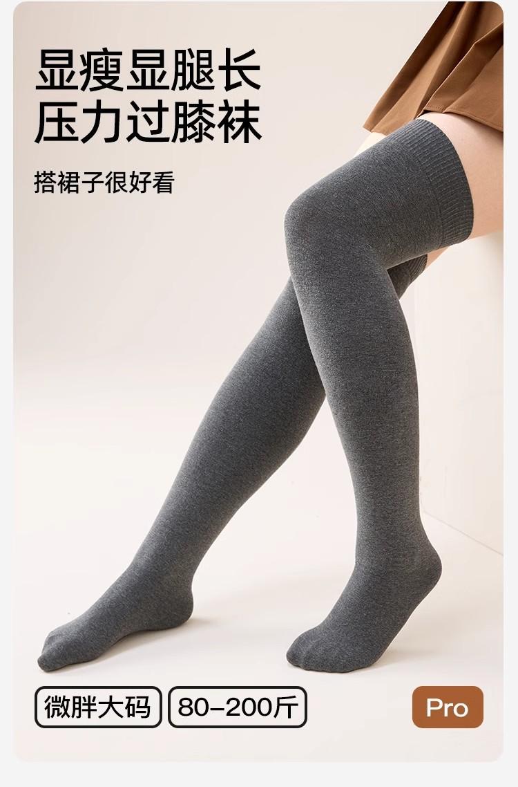 Medias negras de talla grande para mujer, otoño e invierno, grosor mm200 kg, calcetines altos hasta la rodilla, calcetines de algodón antideslizantes hasta la rodilla