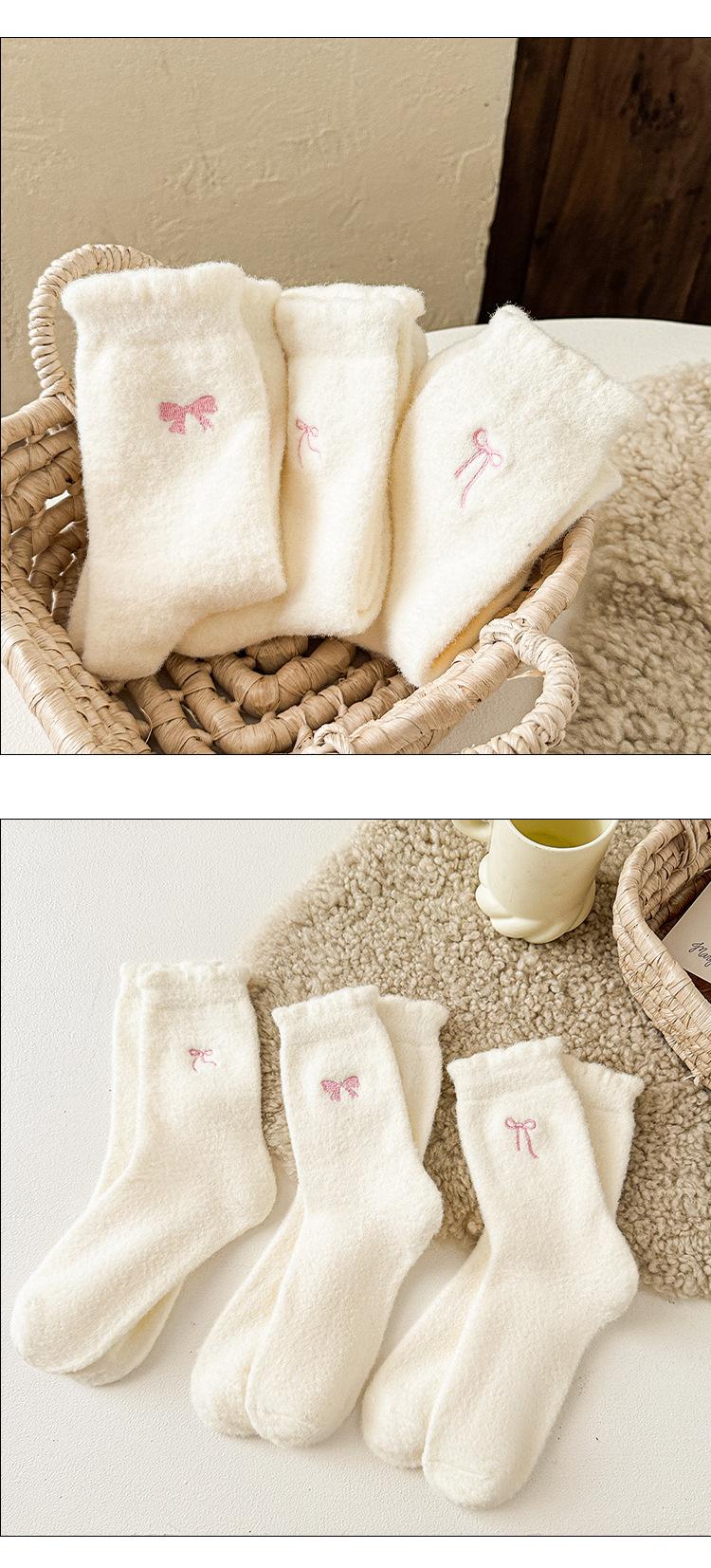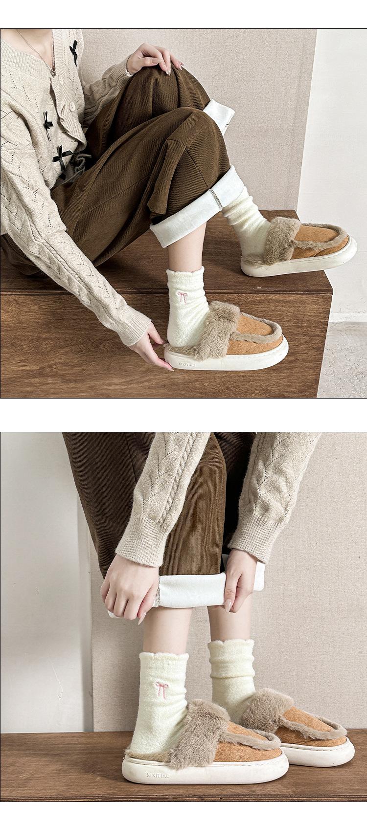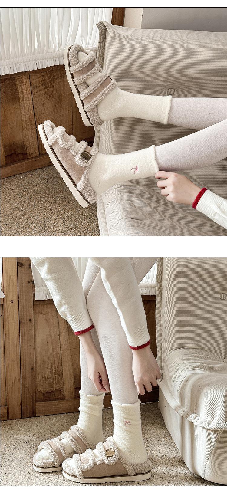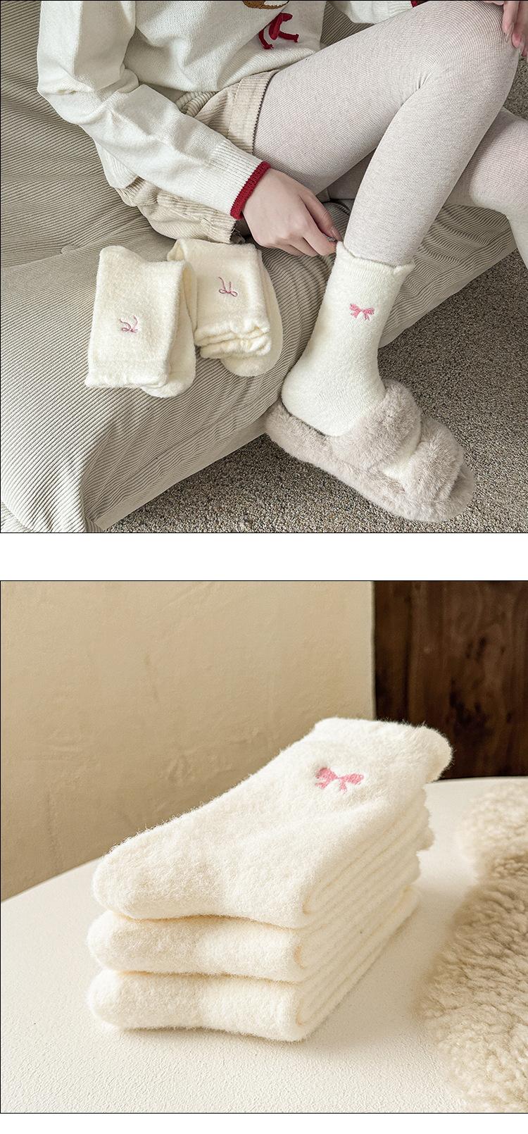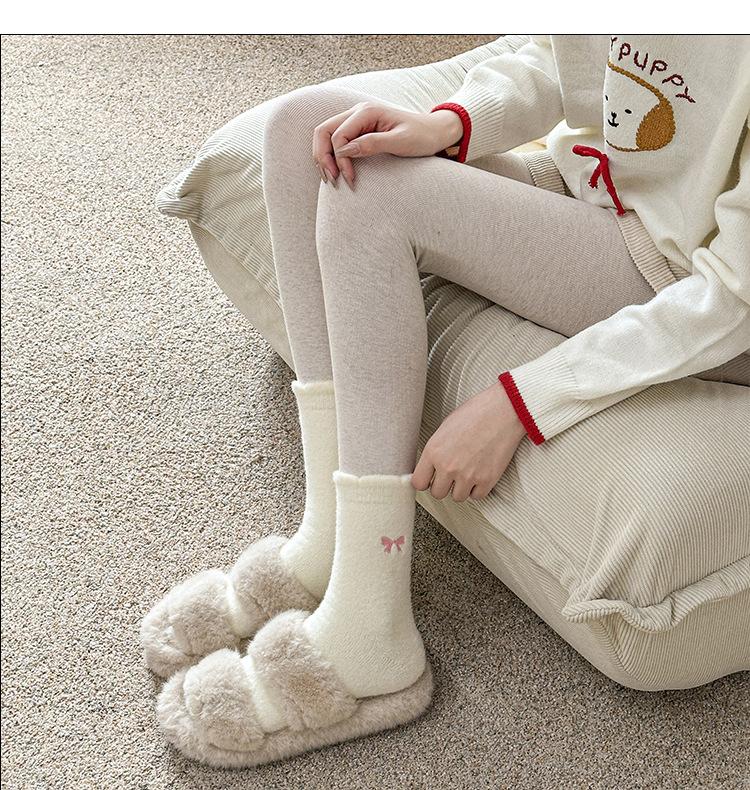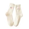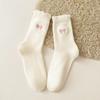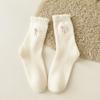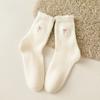 Calcetines blancos de invierno para mujer, gruesos, forrados de vellón, estilo coreano, bordados, de longitud media, para niñas, cálidos, de felpa, de tubo largo.