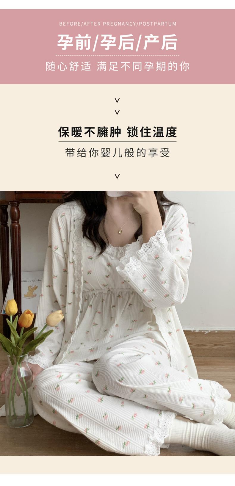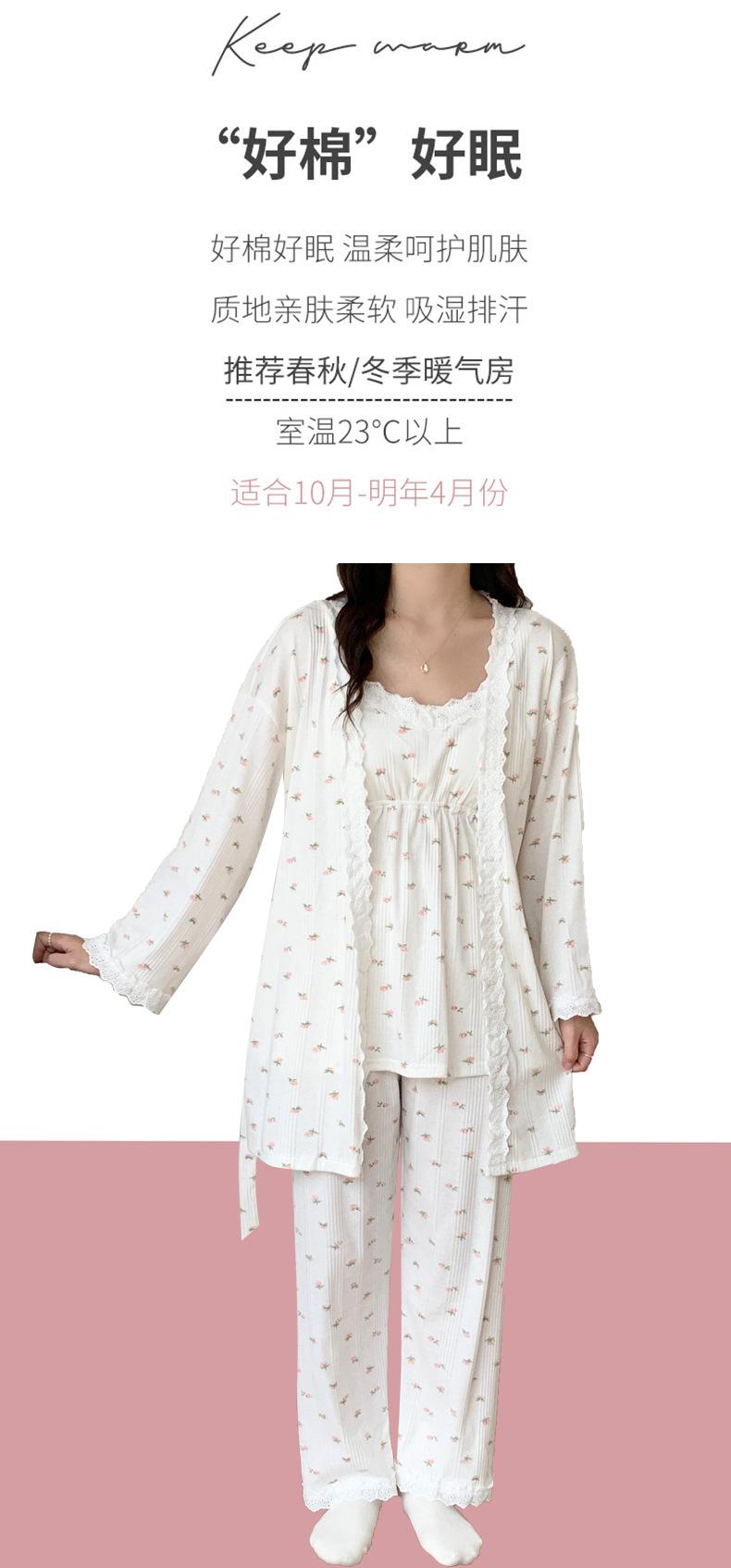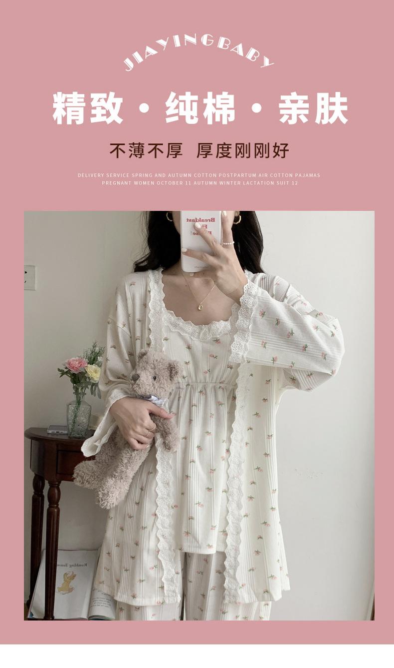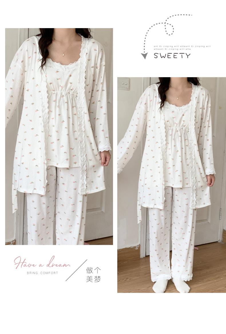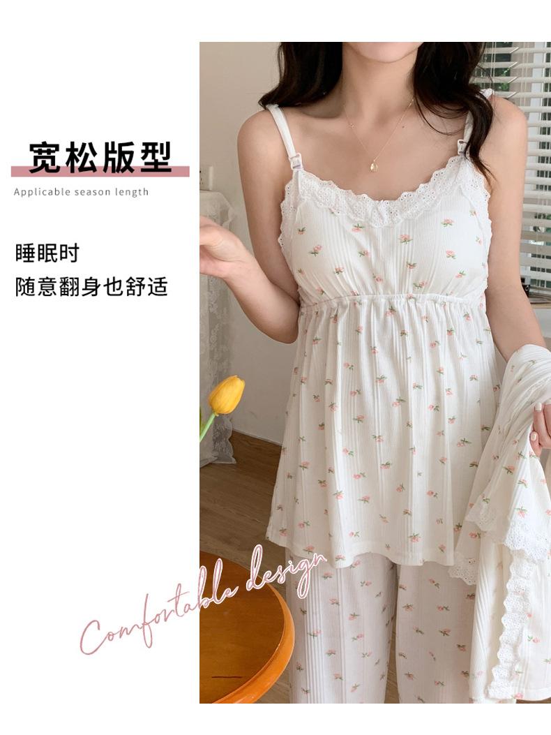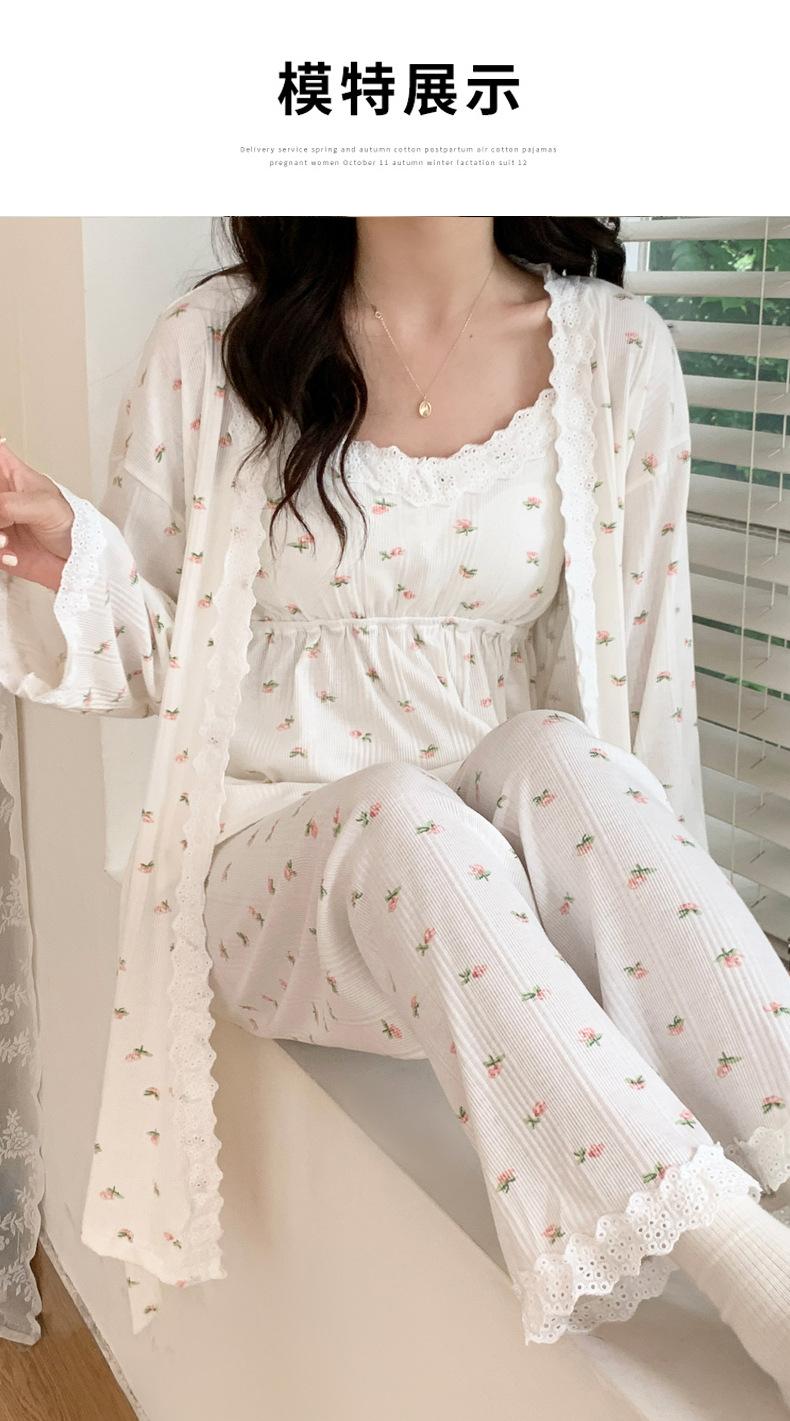 Pijamas de Primavera y Verano 2024 para Mujer Algodón Puro Cinturón Almohadilla en el Pecho Conjunto de Tres Piezas Ropa Mensual Ropa para el Hogar para Lactancia Postparto de Mujeres Embarazadas