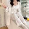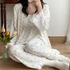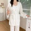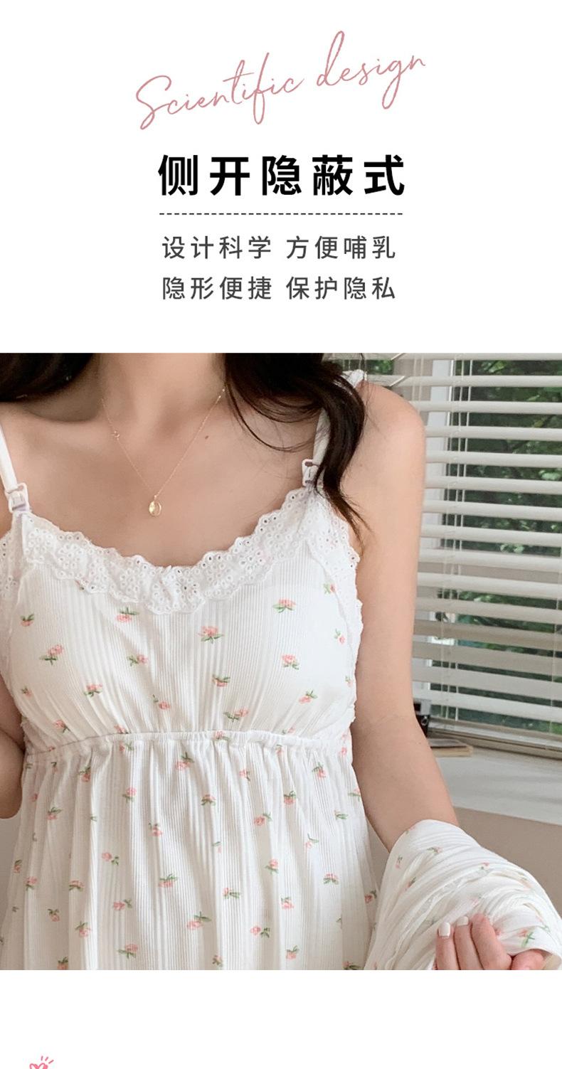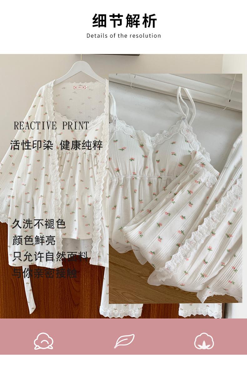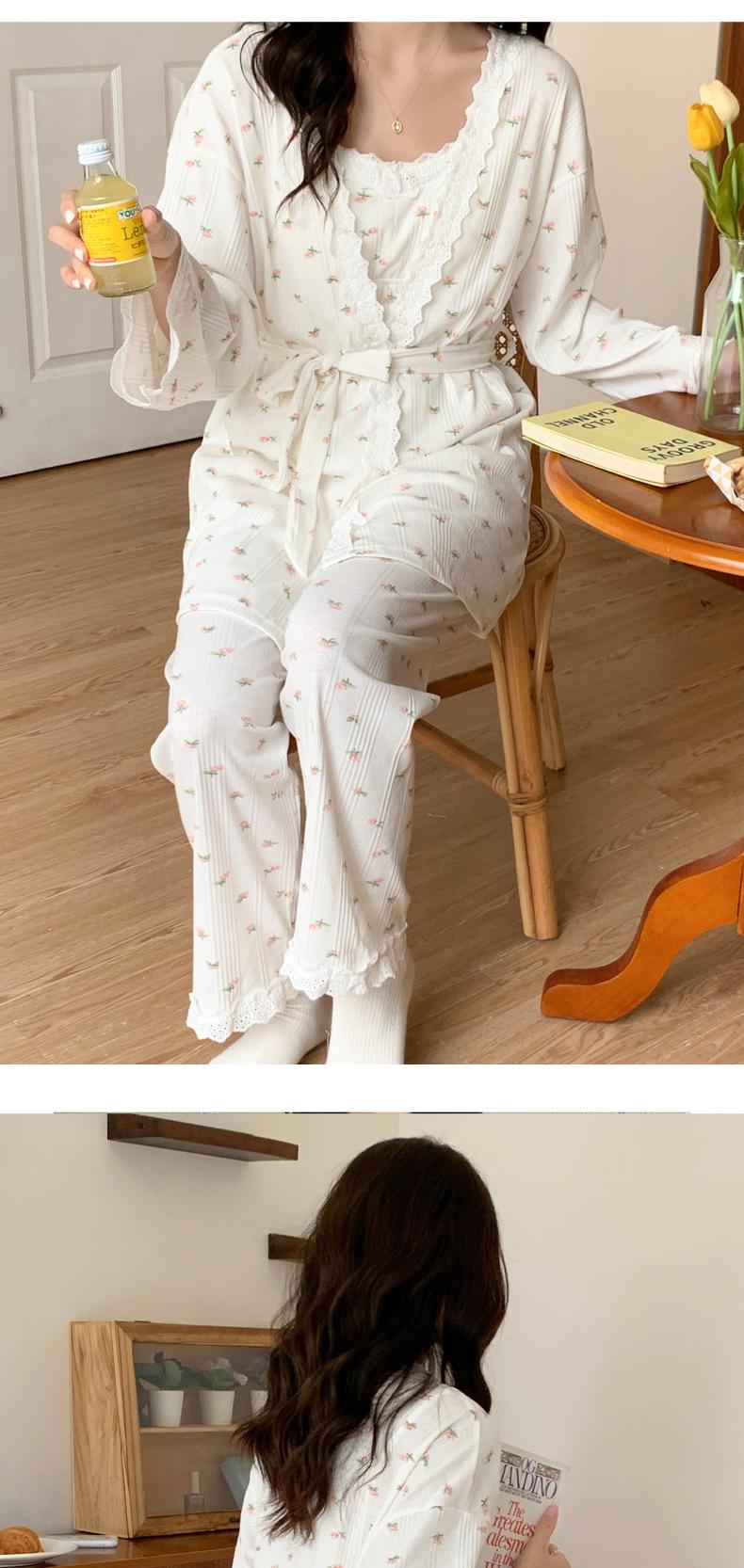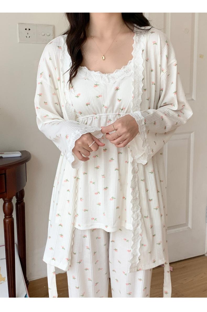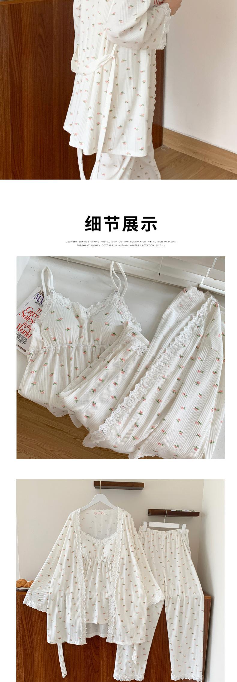 Pijamas de Primavera y Verano 2024 para Mujer Algodón Puro Cinturón Almohadilla en el Pecho Conjunto de Tres Piezas Ropa Mensual Ropa para el Hogar para Lactancia Postparto de Mujeres Embarazadas