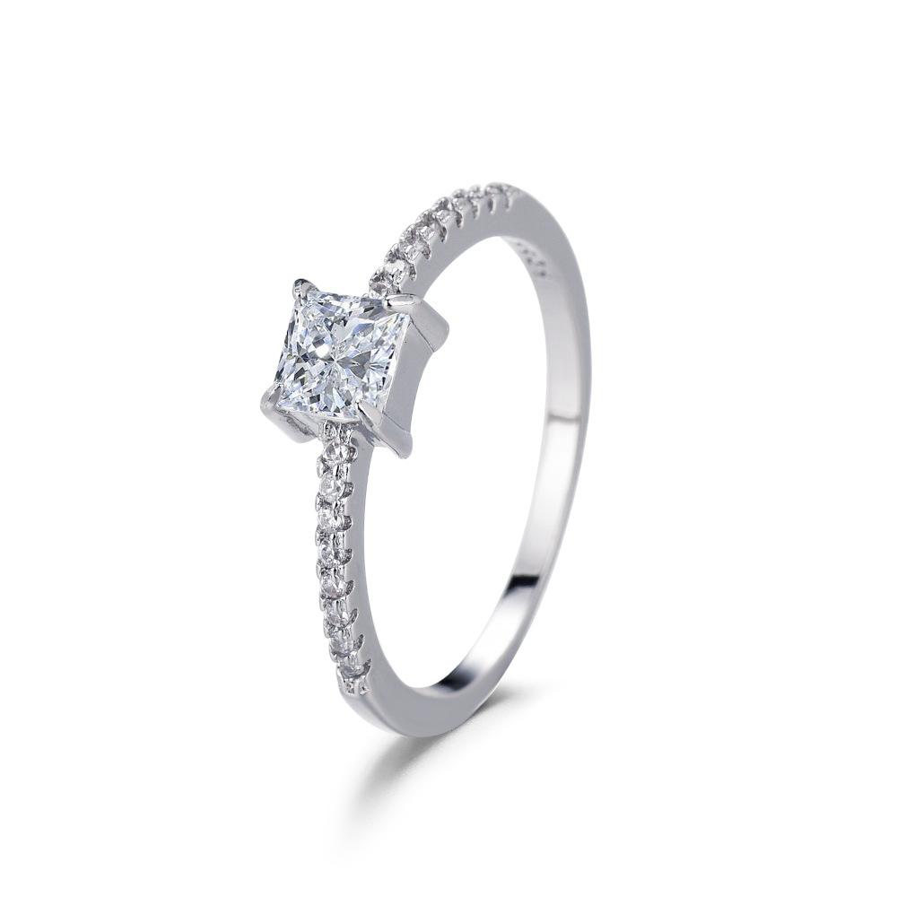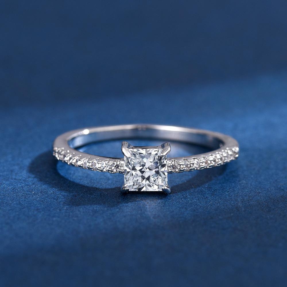 Anillo Princesa cuadrado de diamantes transfronterizo 925 anillo de diamantes cuadrados en quilates simulación de circón propuesta anillo de boda