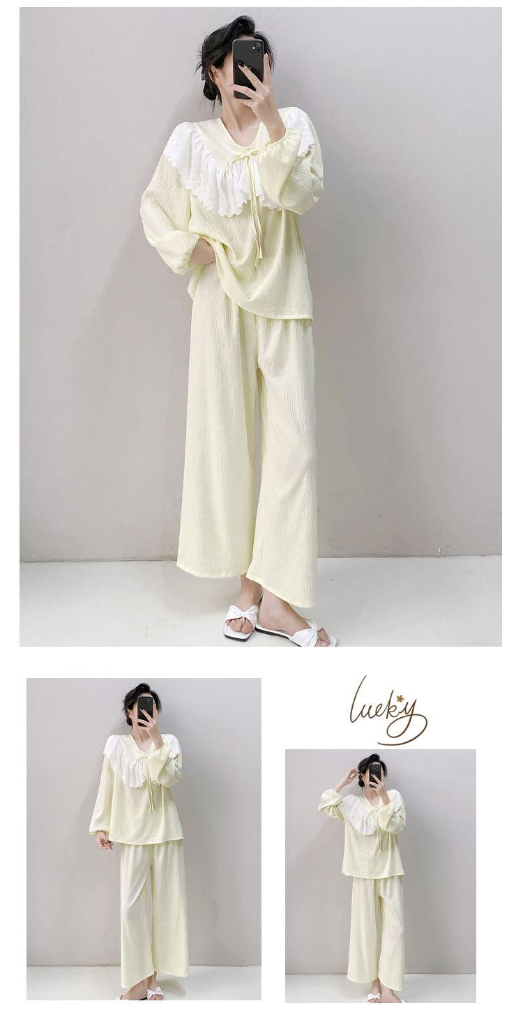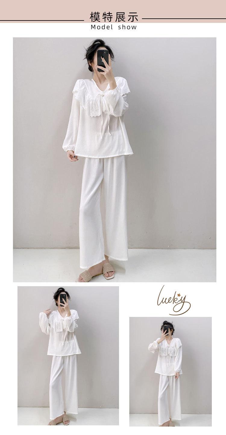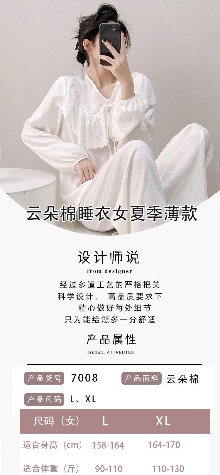 Pijama fino de algodón Cloud 2025 para mujer, sencillo, con encaje y cuello en V, ropa de alta gama para el hogar.