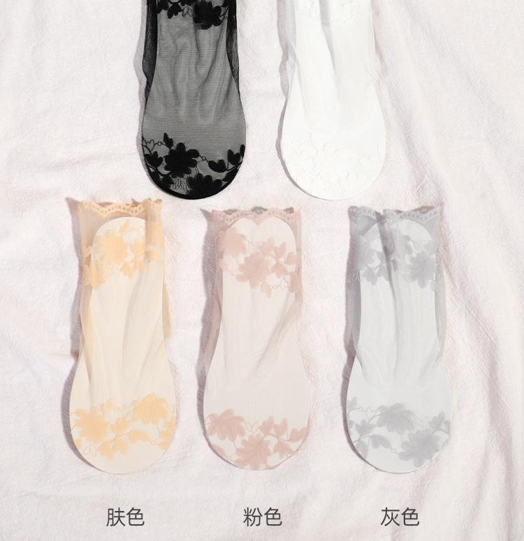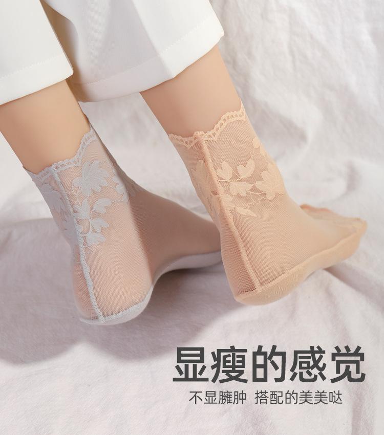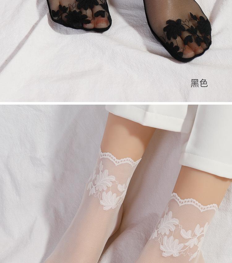 Calcetines Cortos de Encaje Fino de Verano para Mujer Fondo de Algodón Absorbente de Sudor Malla Calcetines Cortos Color Sólido Primavera y Otoño Calcetines de Media Caña