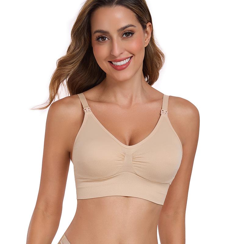 Venta al por mayor mujeres embarazadas talla grande sin aro de acero ropa interior de lactancia manos libres succionadora de leche sujetador con hebilla frontal abierta