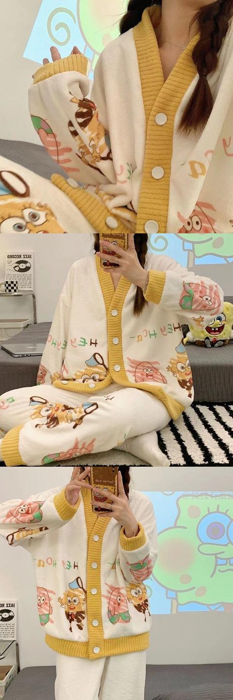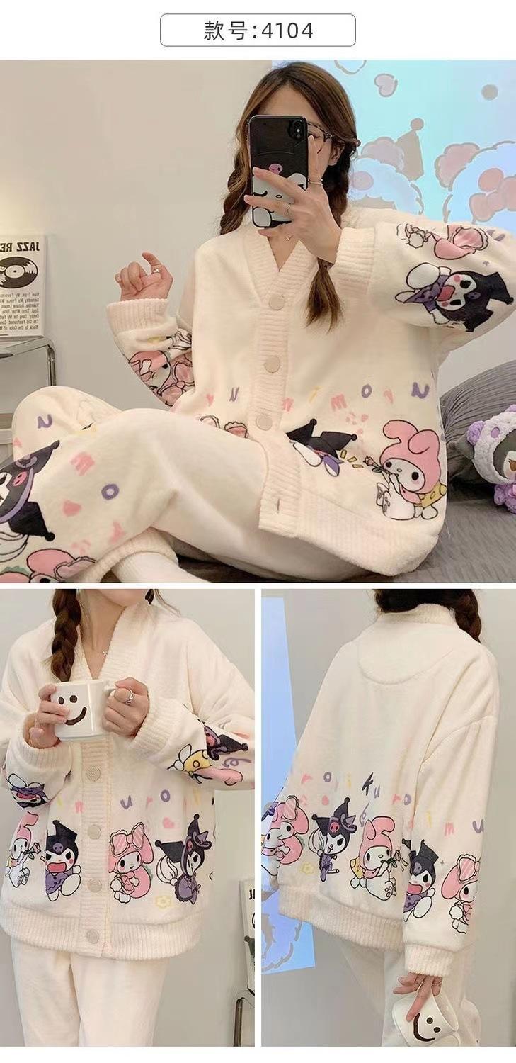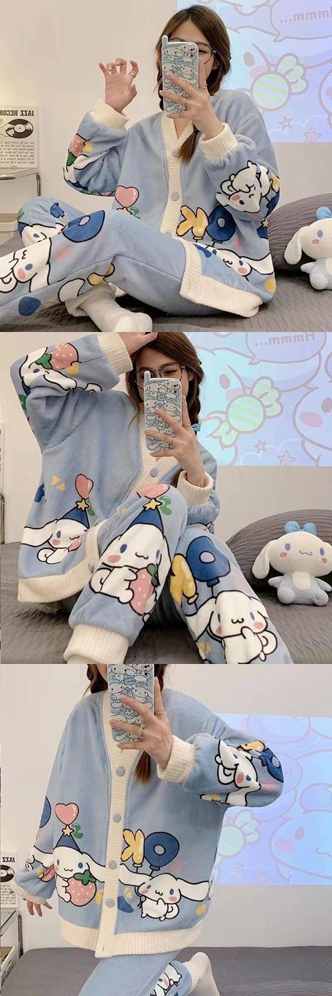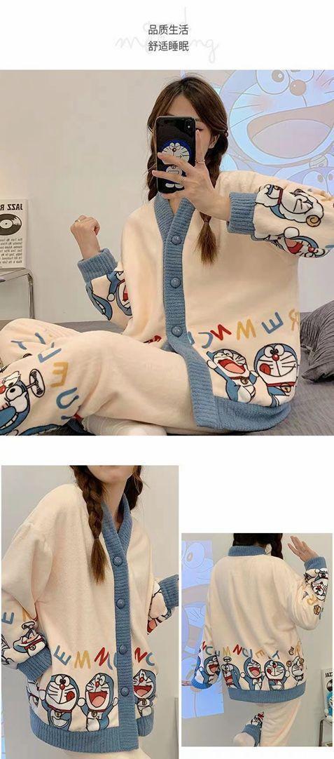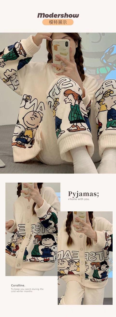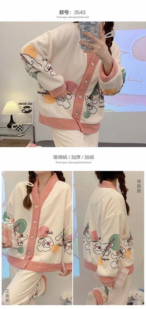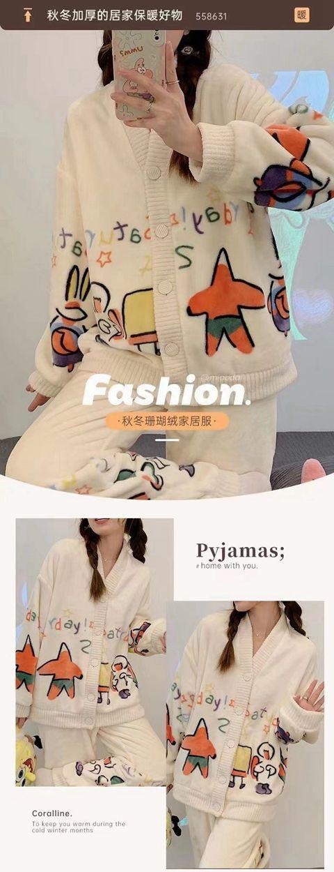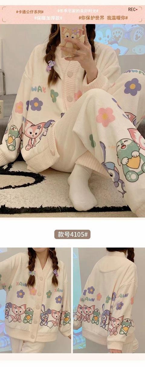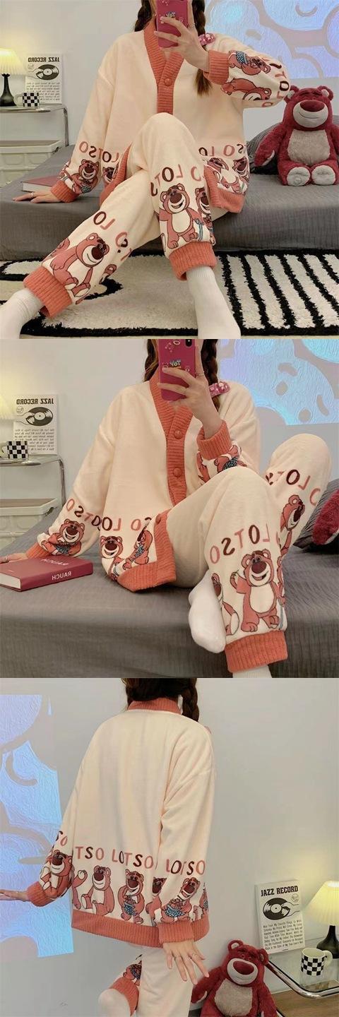 Pijama de terciopelo coral para mujer, de invierno, manga larga, 2024, nuevo, de franela gruesa con forro polar, para primavera y otoño, ropa de casa.