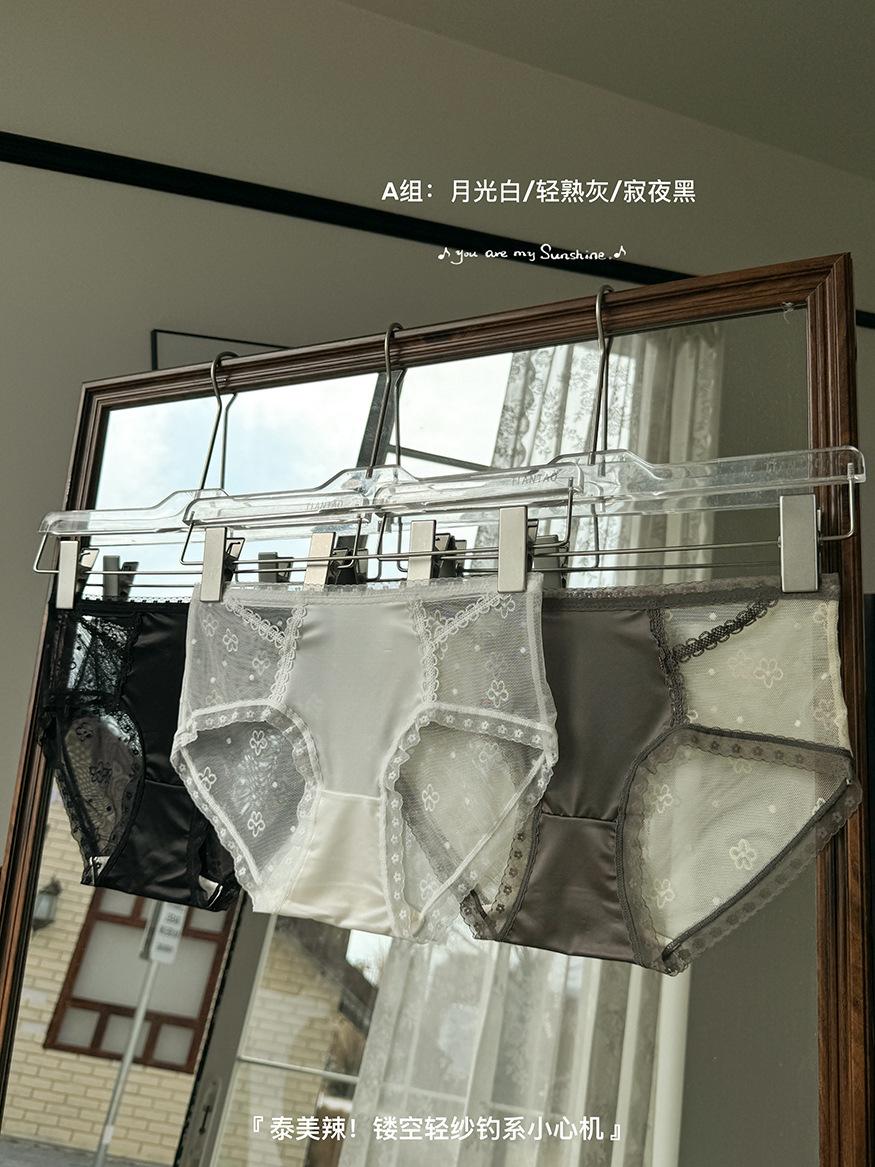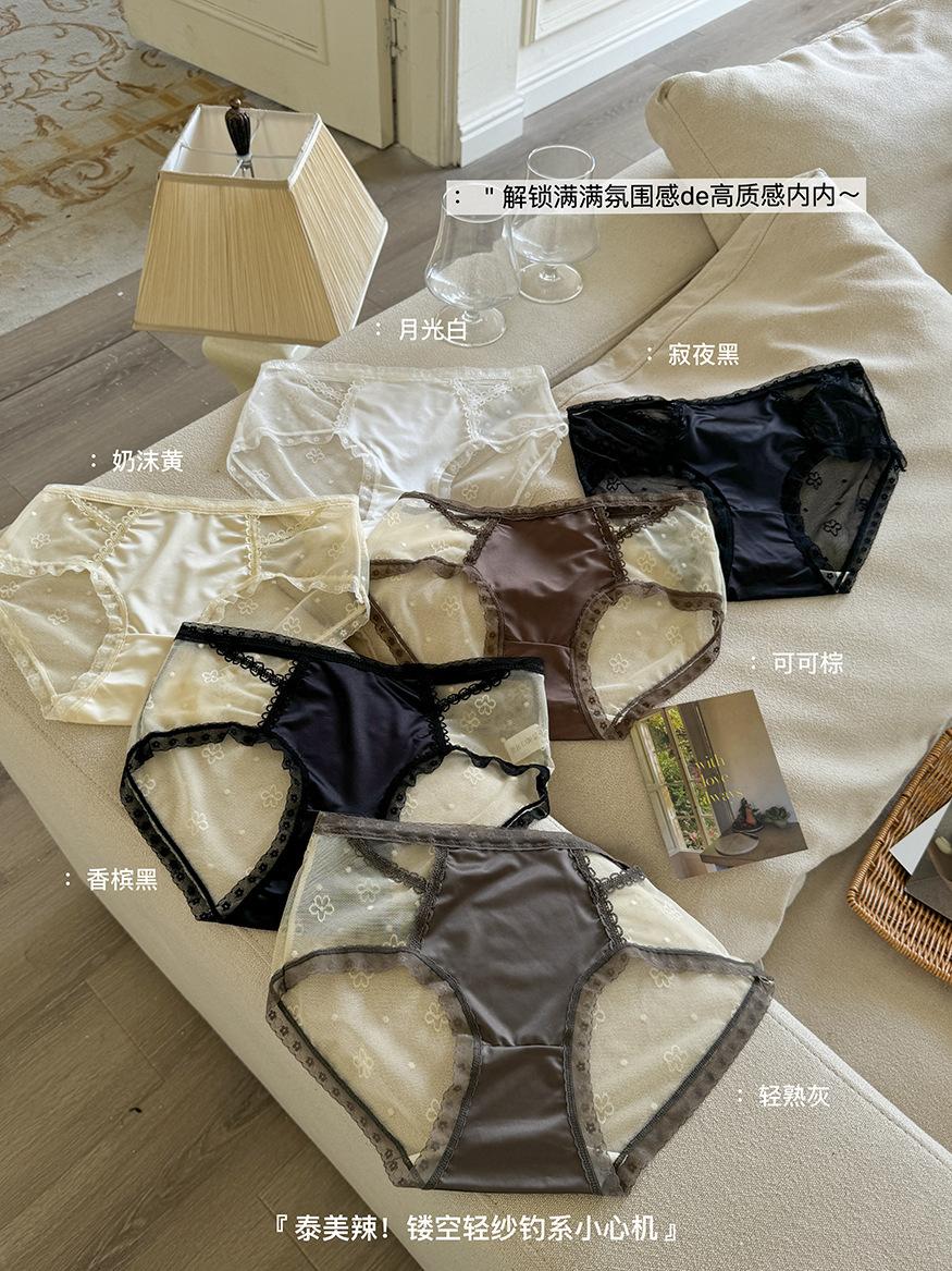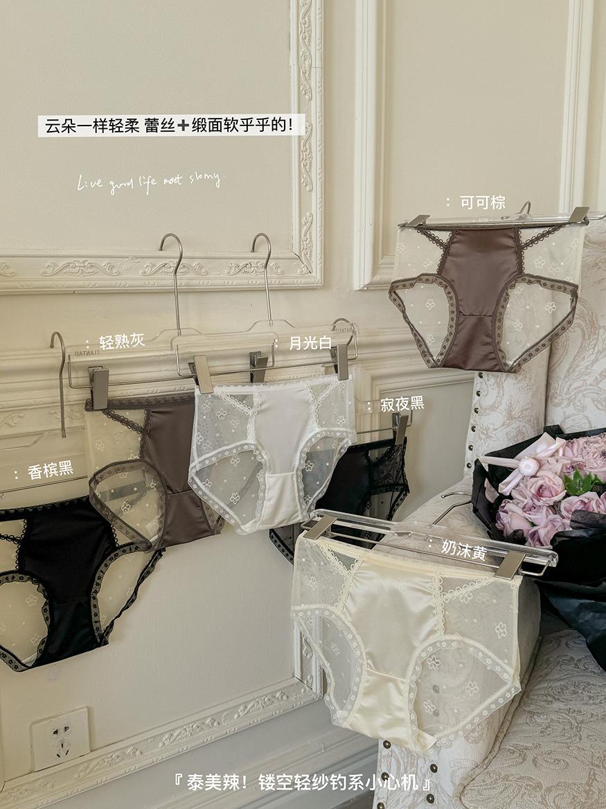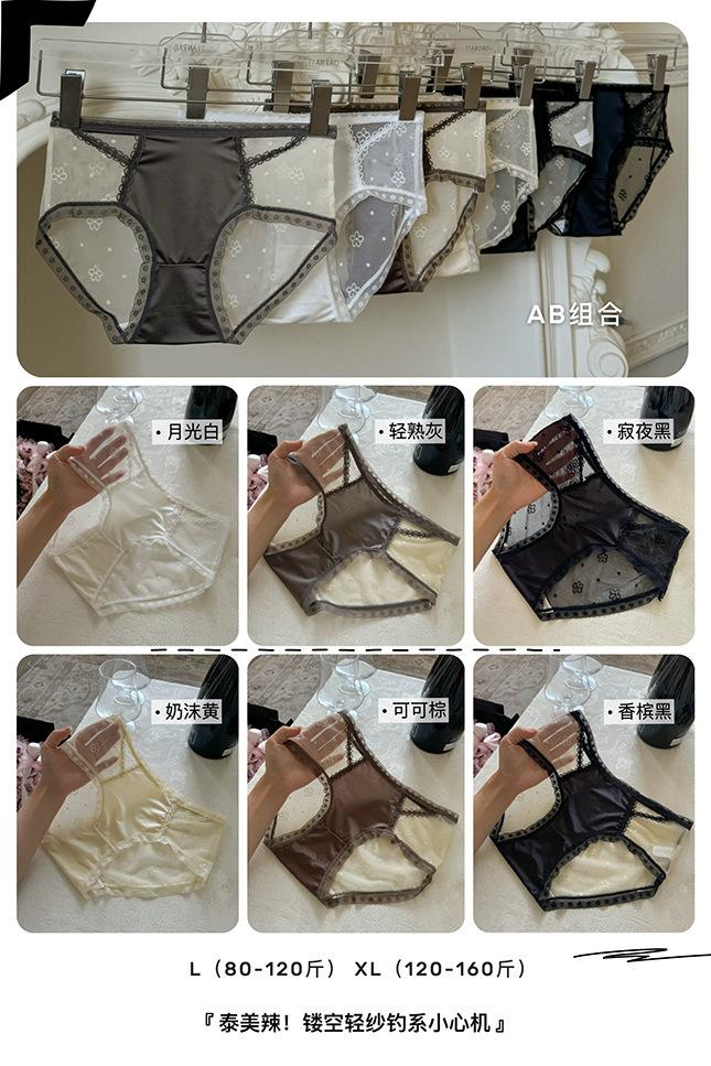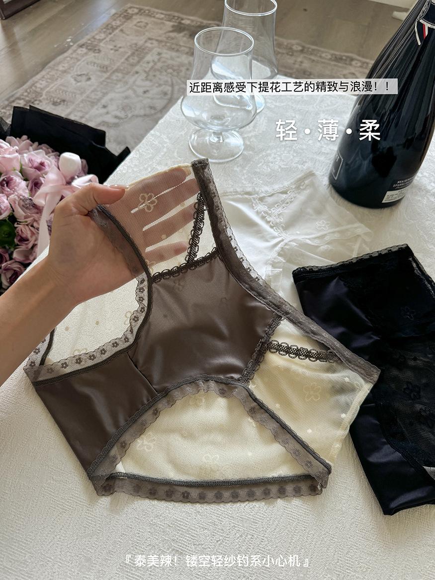 Estilo Deseo Puro Encaje Calado Francés Malla Transpirable Calzones de Niña Sin Archivo de Tarjetas Ropa Interior Sexy de Seda de Hielo para Primavera y Verano para Mujer