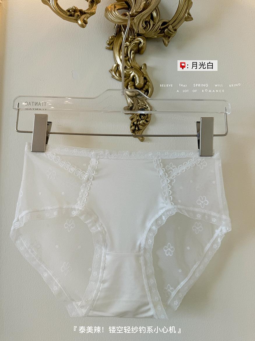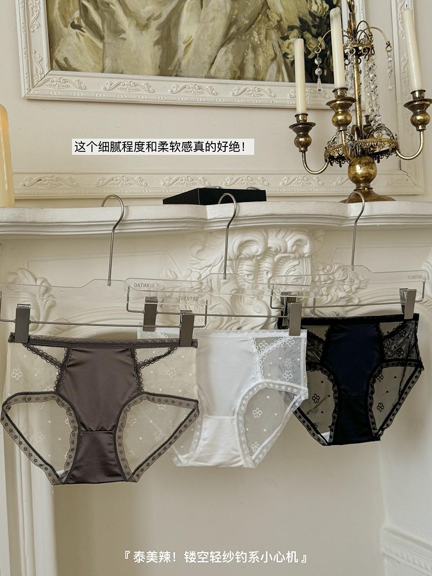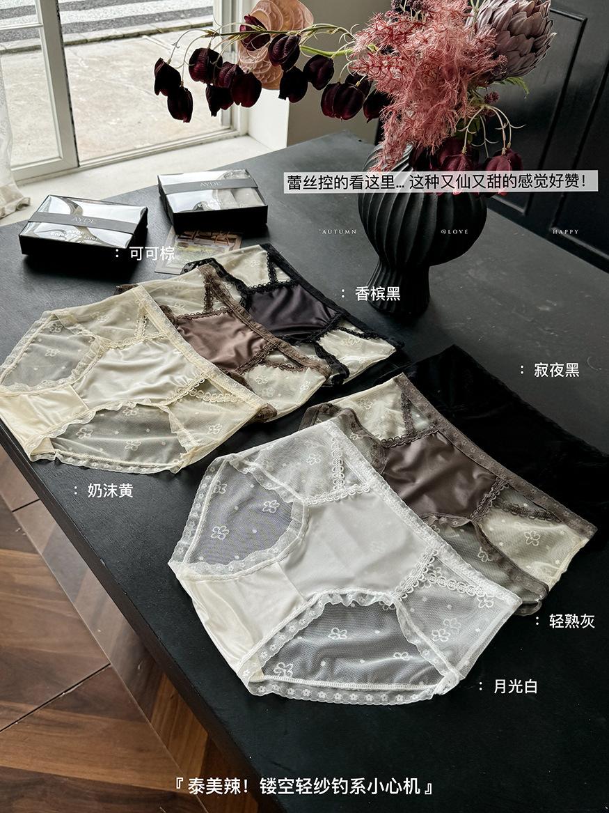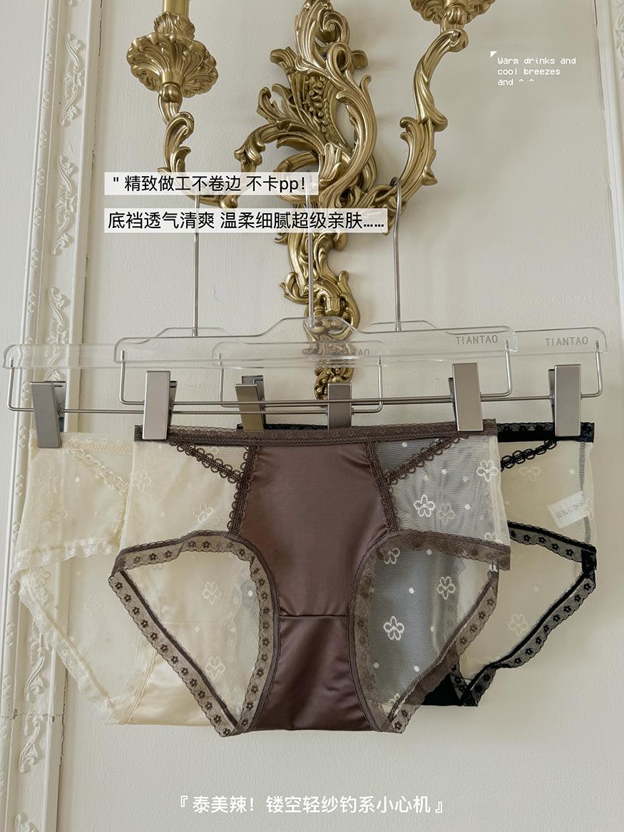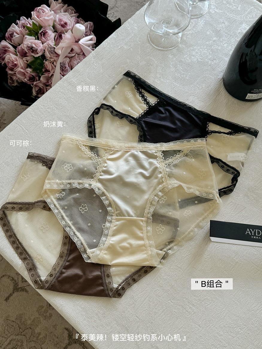 Estilo Deseo Puro Encaje Calado Francés Malla Transpirable Calzones de Niña Sin Archivo de Tarjetas Ropa Interior Sexy de Seda de Hielo para Primavera y Verano para Mujer